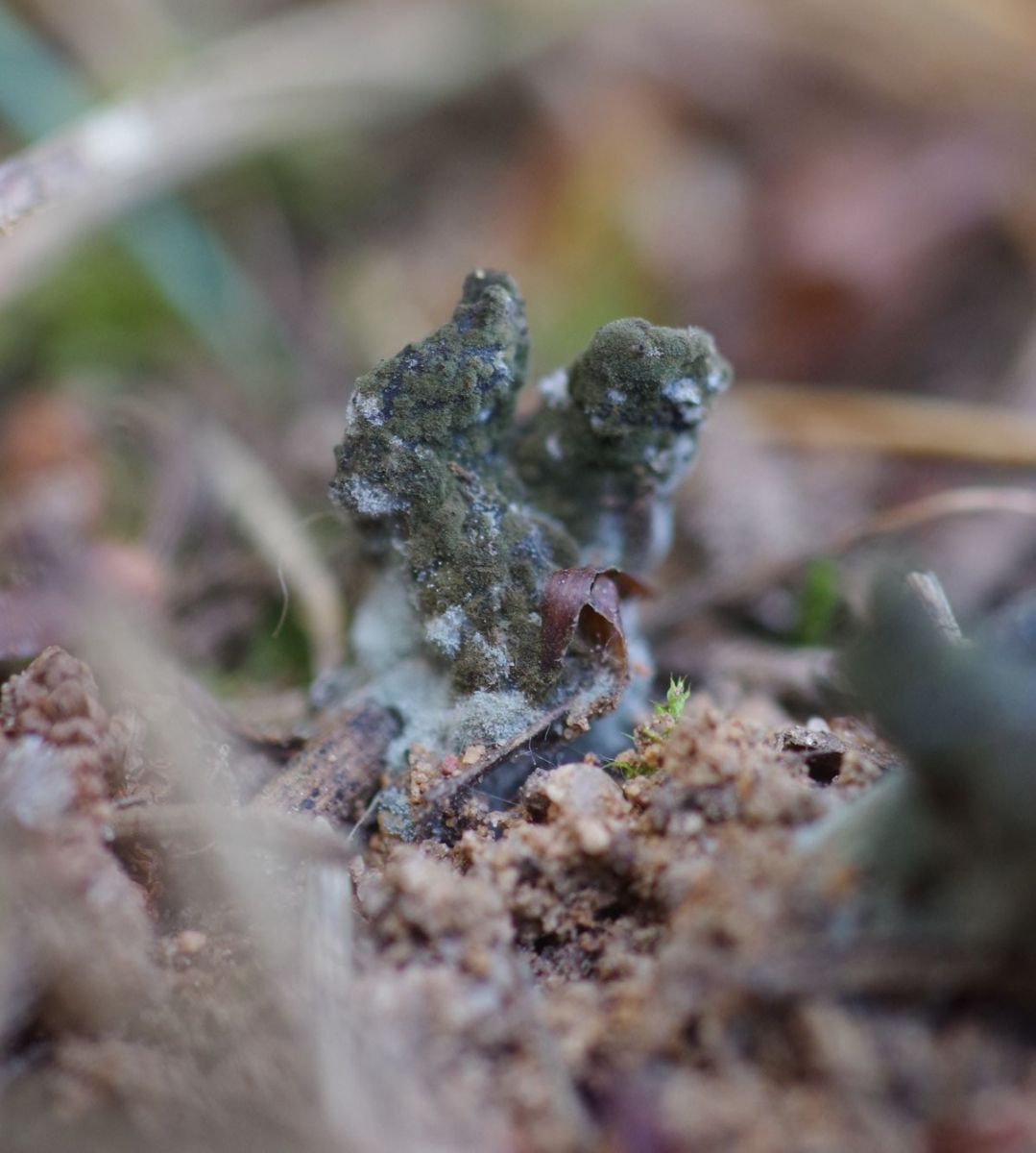 auf besonders kleinen Helvella (an der Stelle kommt eigentlich nur eine Art vor, mit mehrzipfeligem schwarzen Hut und grauem rippigen Stiel), so 5 mm breit, 10 mm hoch, findet sich ein Belag, der teils weiß und teils braun ist. Meine Erwartung war Hyphomyces cervinigenus // Mycogone cervina. Den hatte thorben96 hier Hypomyces cervinus auf Helvella sp. gezeigt. Das passt aber nicht.
