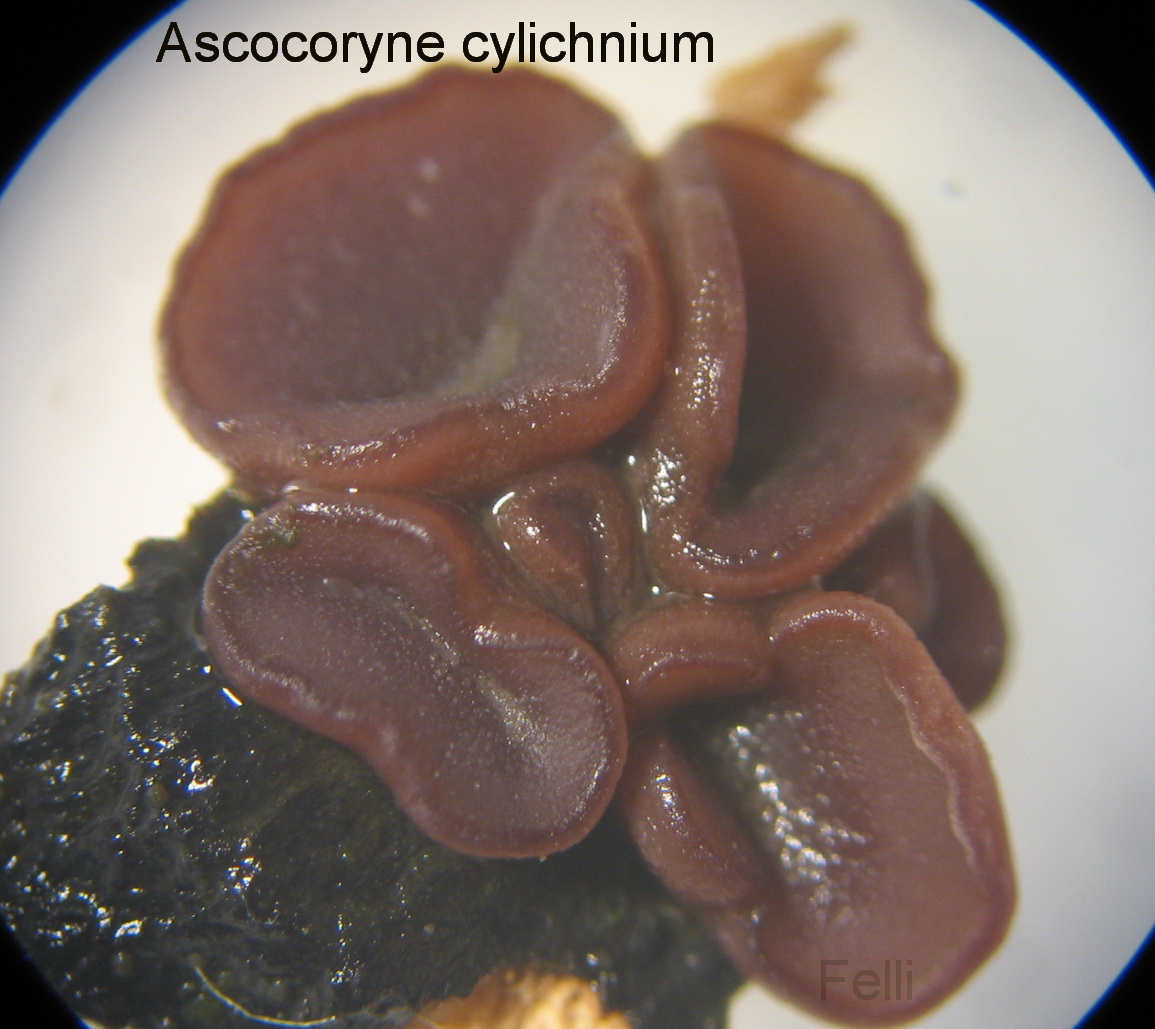 Auf Laubholz gabs z.B. 2 Grüppchen dunkelvioletter Becherchen, die man makroskopisch schon zu Ascocoryne stellen konnte. Unterm Mikroskop war es dann recht einfach die Art zu bestimmen.