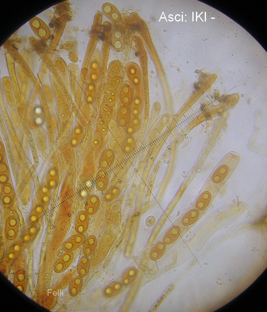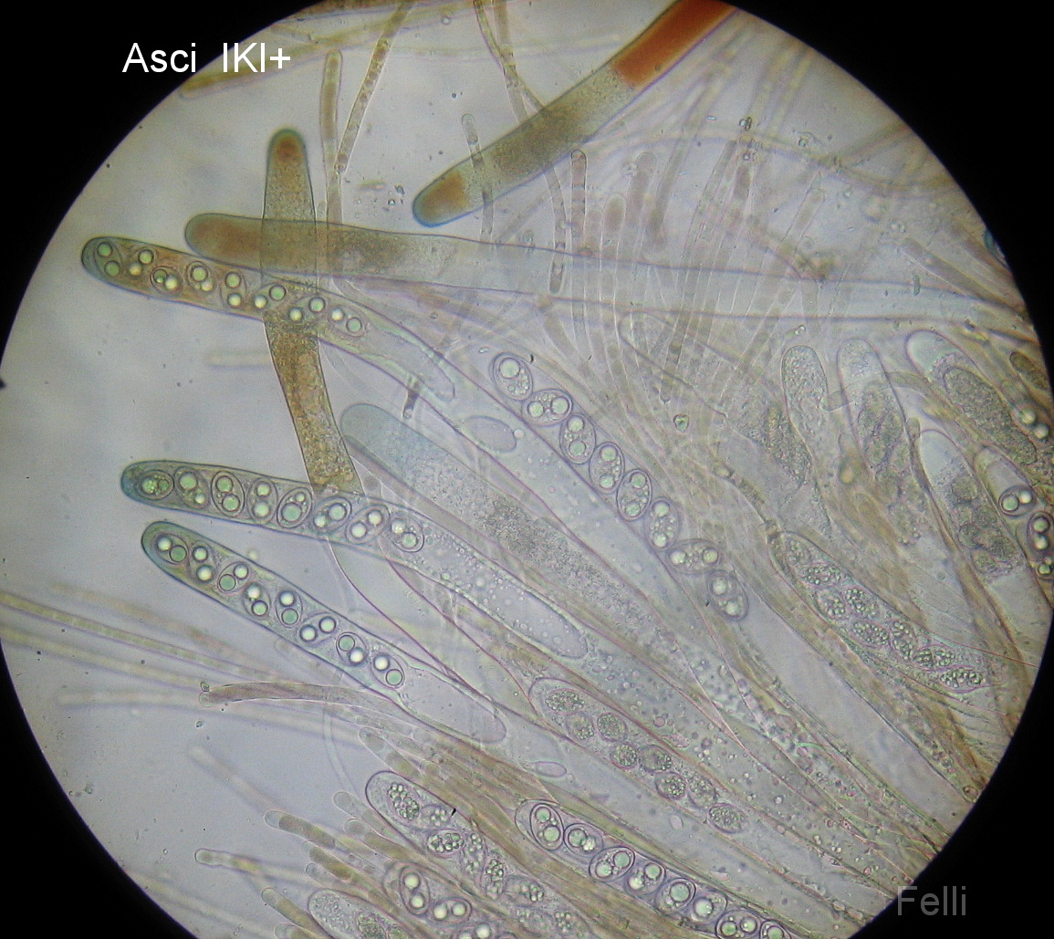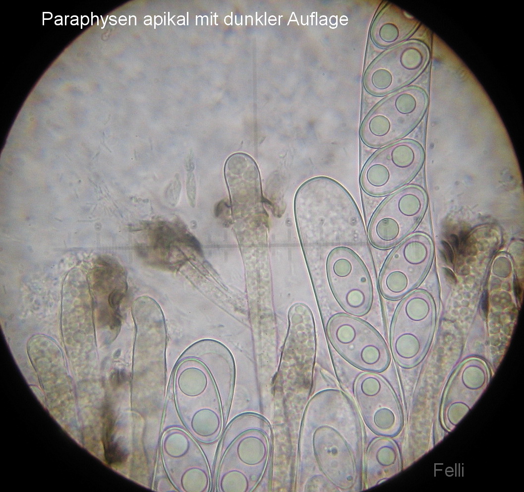 Die Paraphysen sind multguttulat, d.h. mit kleinen Öltröpfchen gefüllt, und haben dunkle federwolkige Auflagerungen.