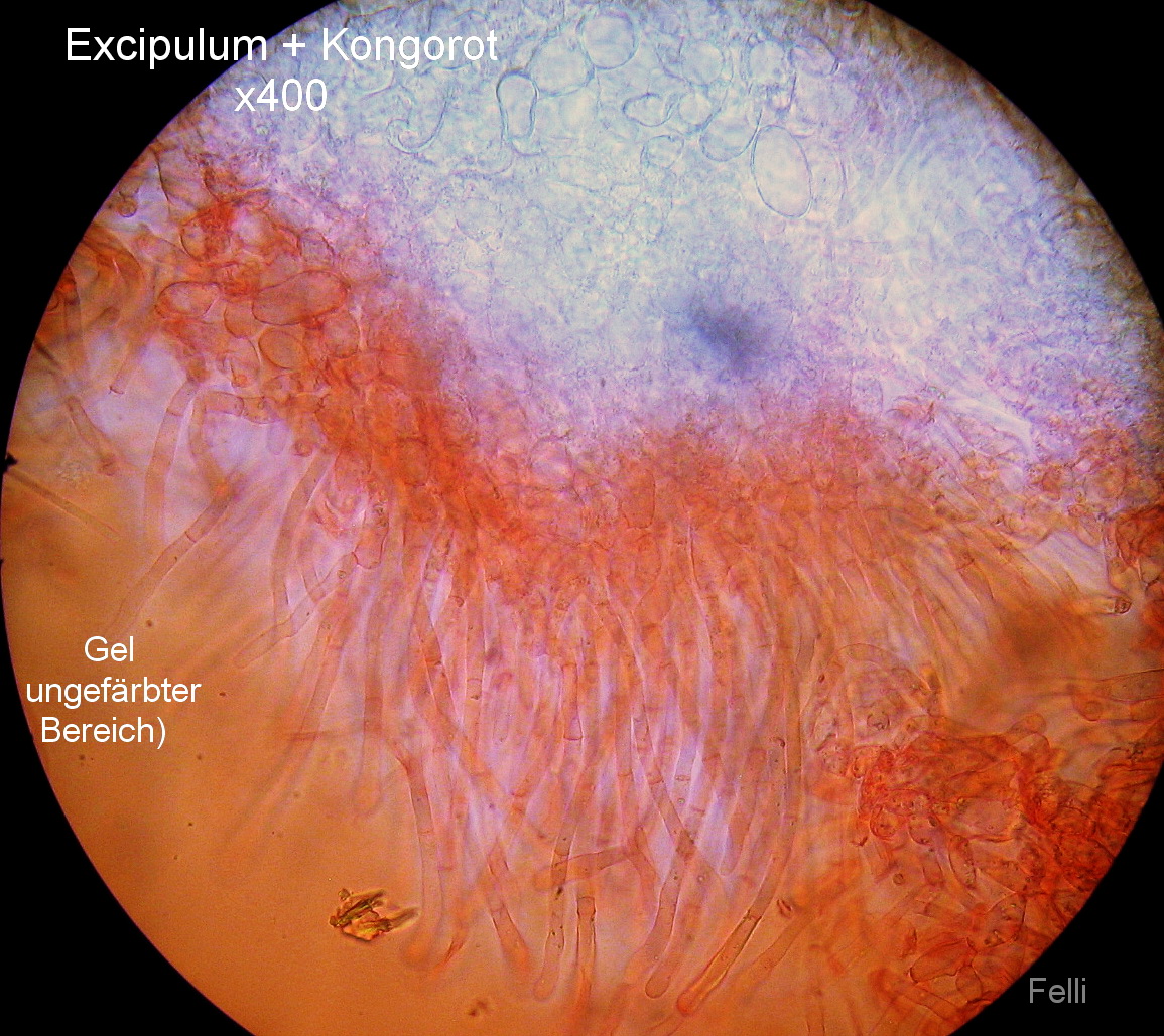 und das Excipulum besteht aus langen, in Gel gebetteten, hyphenartigen Zellen