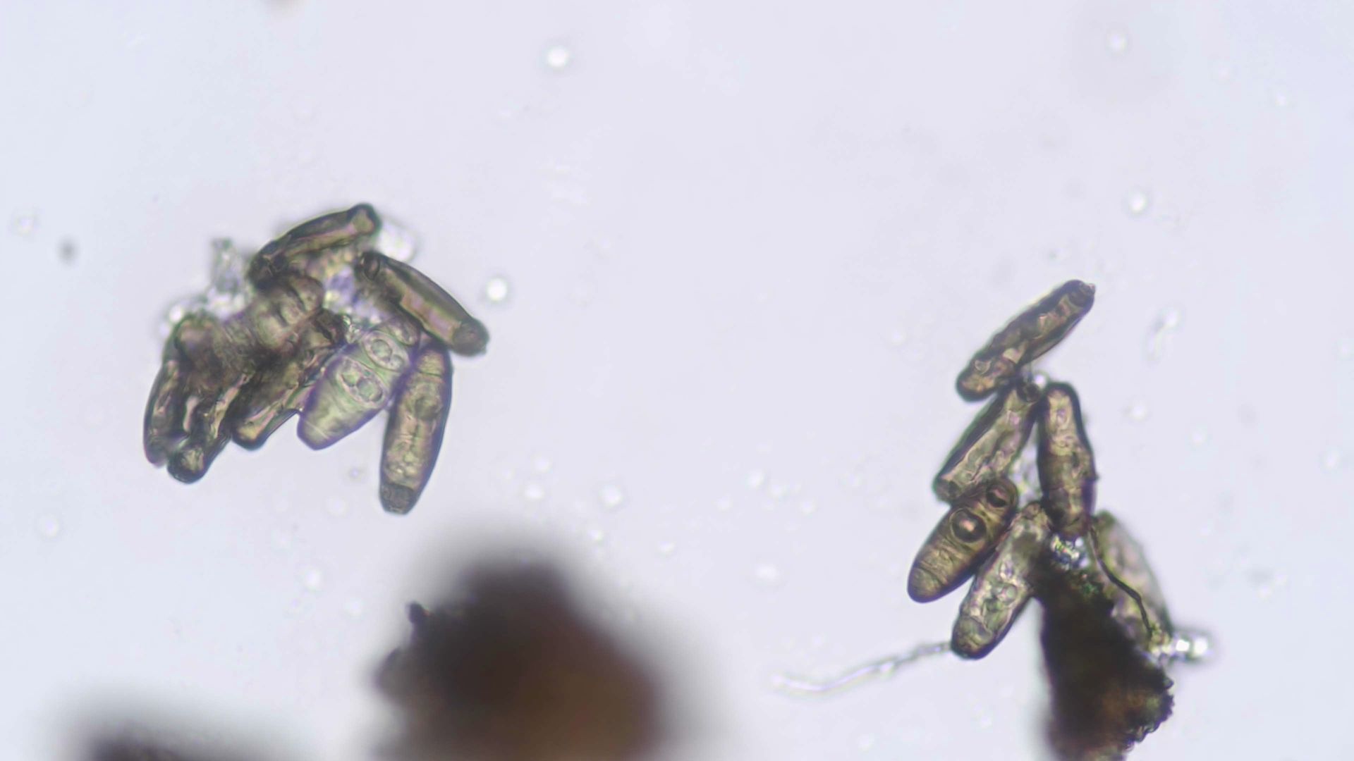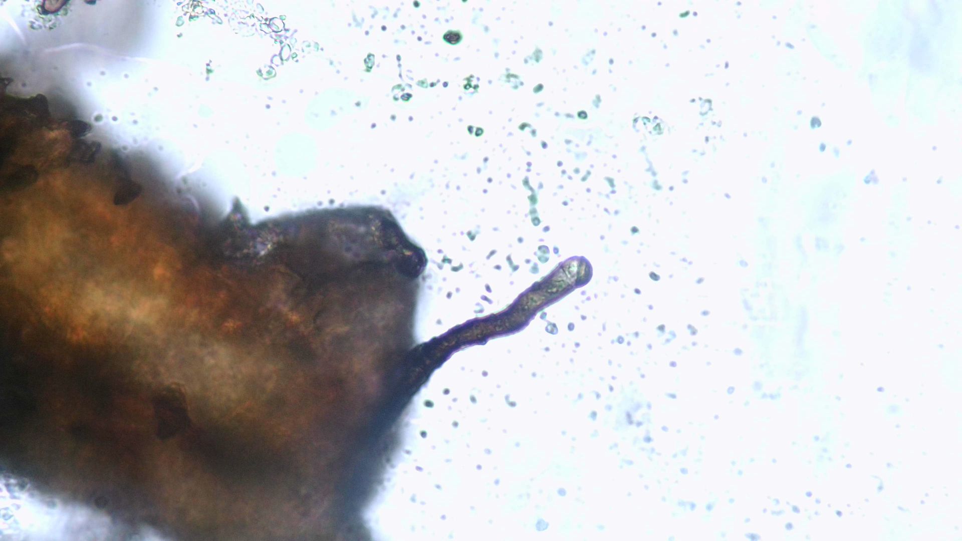 Man kann die Konidien erahnen, aber nicht wirklich alles erkennen.