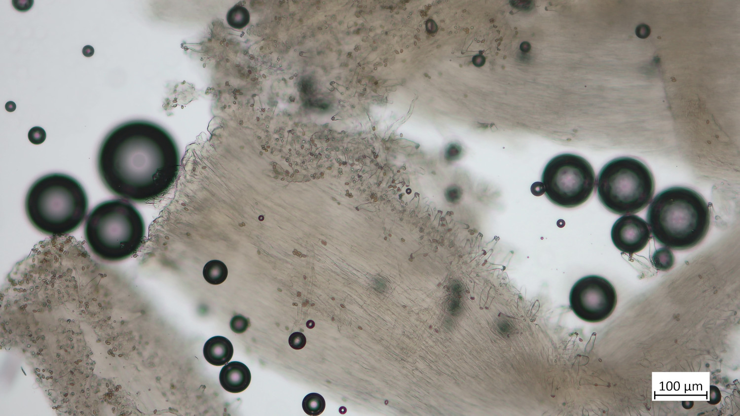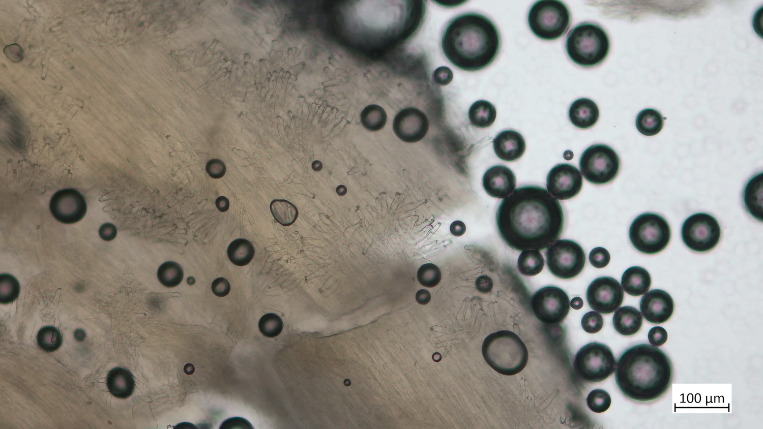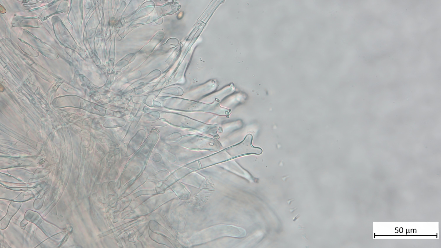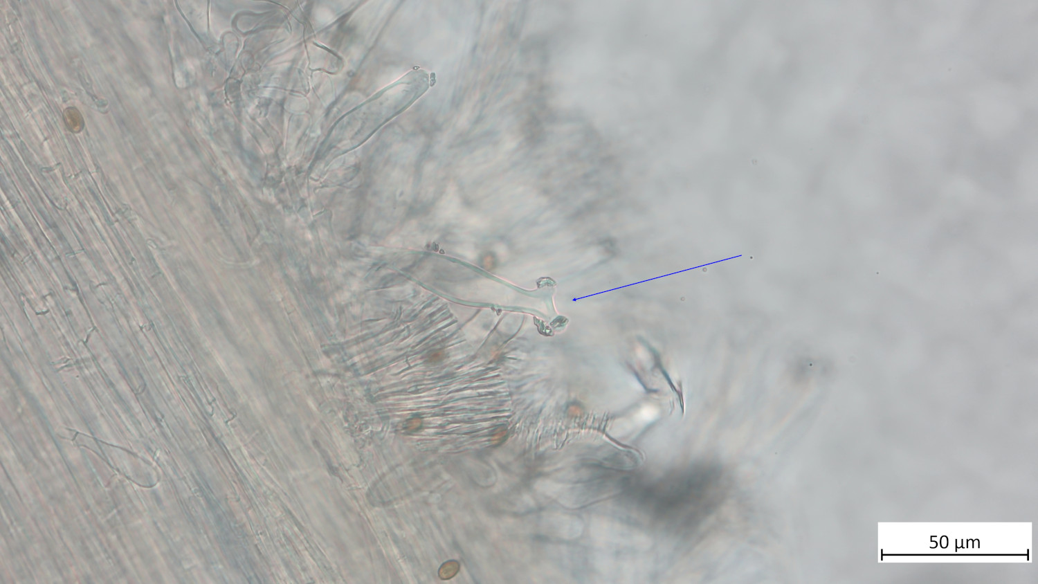 Sporen (29 gemessen): 9.0 µm (8.3–10.0 µm) × 5.6 µm (5.1–6.0 µm), Q = 1.62 (1.42–1.89)