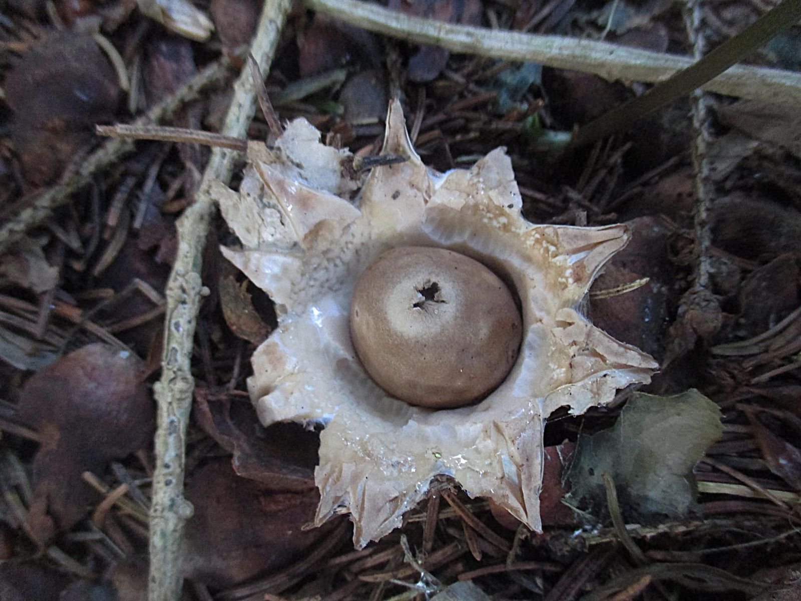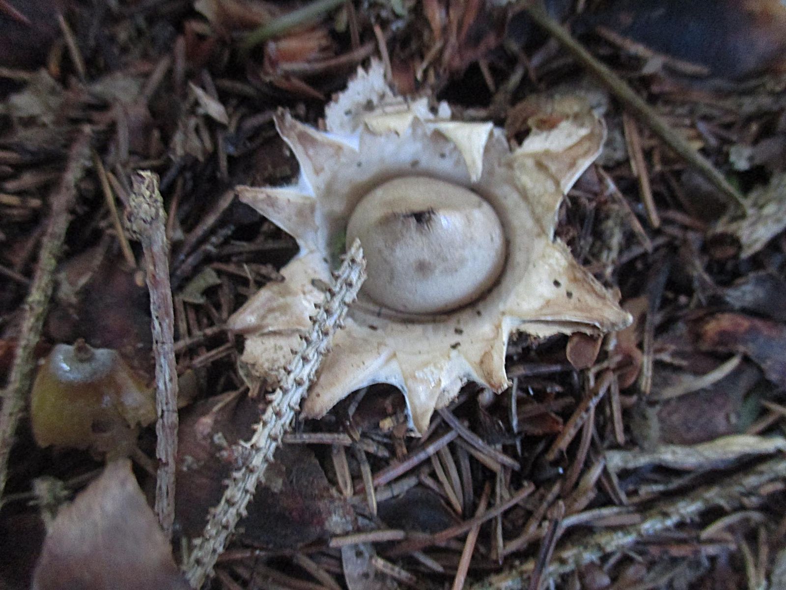 Im Fichtenstreu machten sich Gewimperte Erdsterne breit.