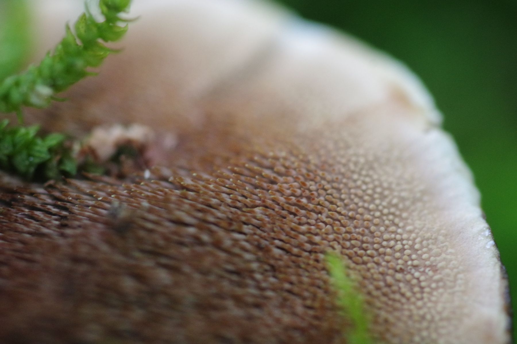 beim Korkstacheling mag ich mich nicht zwischen H. concrescens und H. scrobiculatum entscheiden, da der Fruchtkörper noch sehr klein und noch nicht voll entwickelt ist. Die beiden Arten sind sich optisch sehr ähnlich und unterscheiden sich nur anhand der Oberfläche des voll entwickelten Hutes. Aber einer der beiden ist es, Hydnellum peckii kann hier dagegen aufgrund der Milde ausgeschlossen werden.