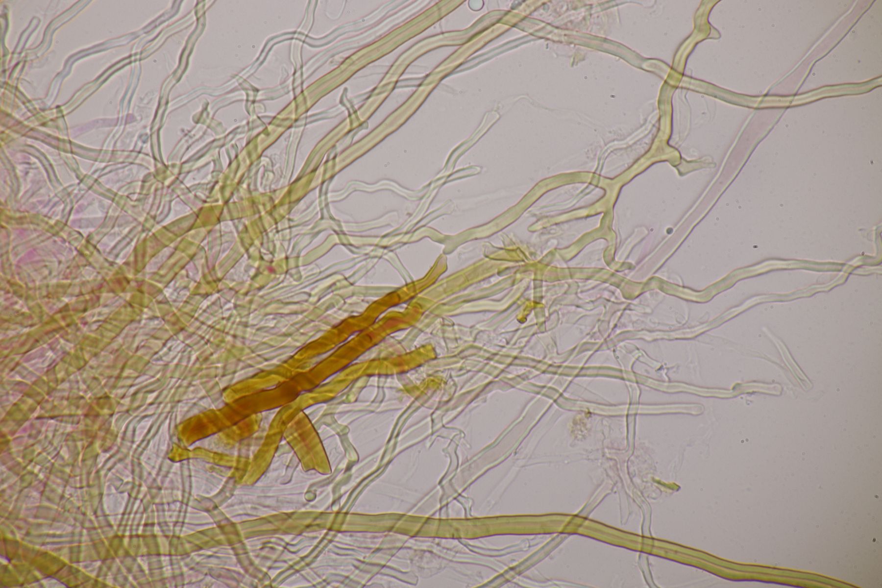 Meine ersten Versuche mit Fomitopsis pinicola sind jedenfalls kläglich gescheitert: Ich sehe nur Skeletthyphen.