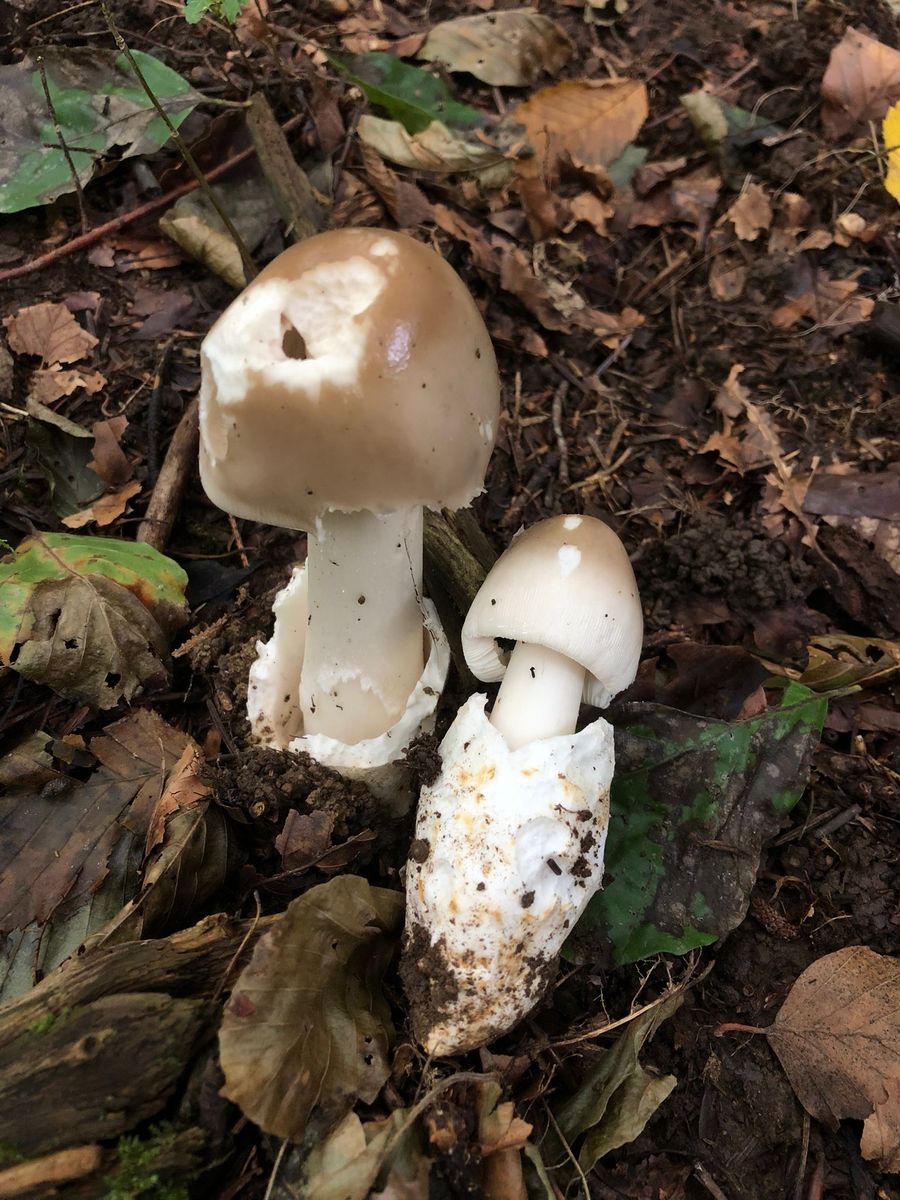 Sie wuchsen nicht direkt nebeneinander, den blassen Fruchtkörper habe ich etwa 5m weiter weg gefunden