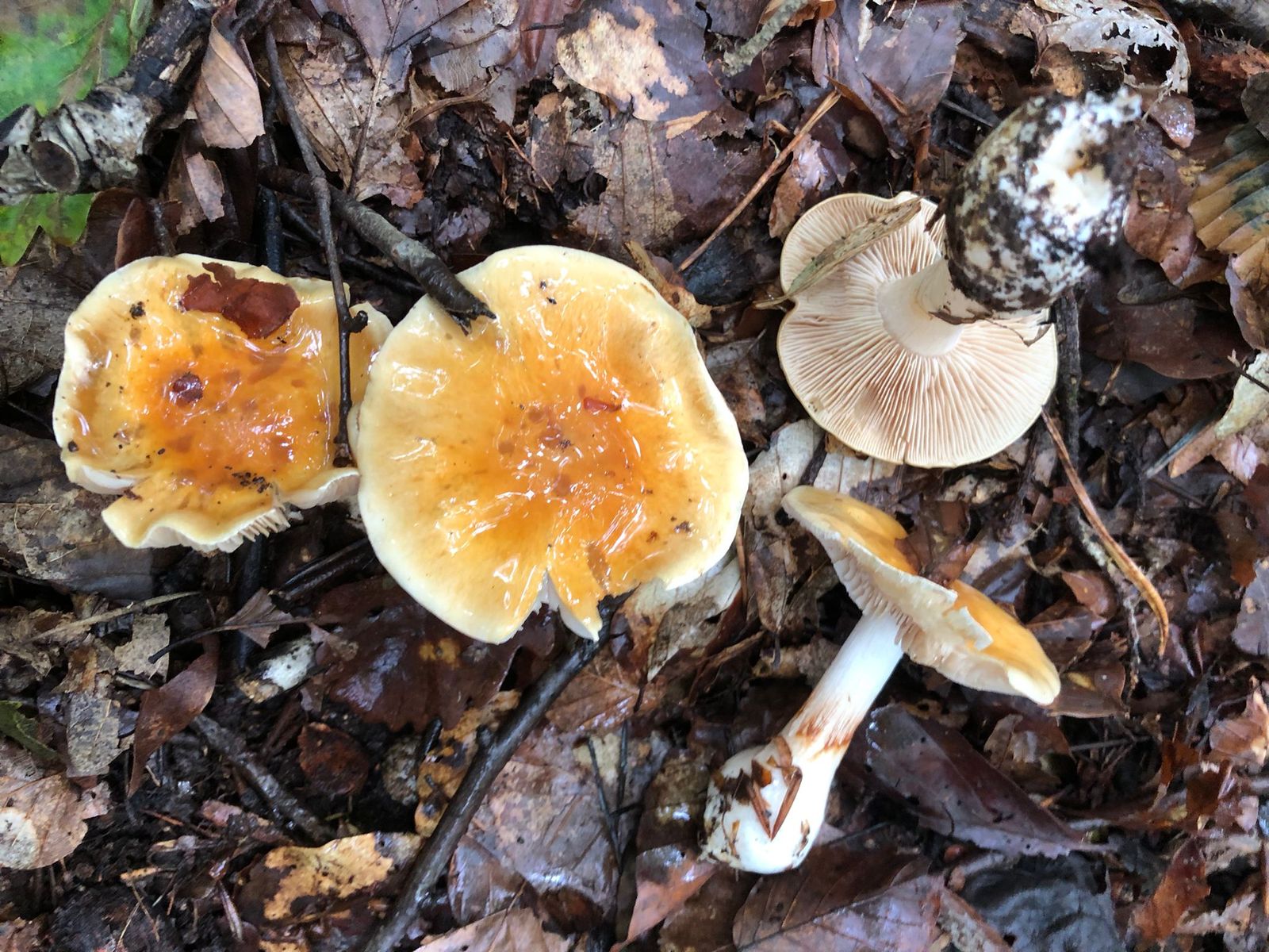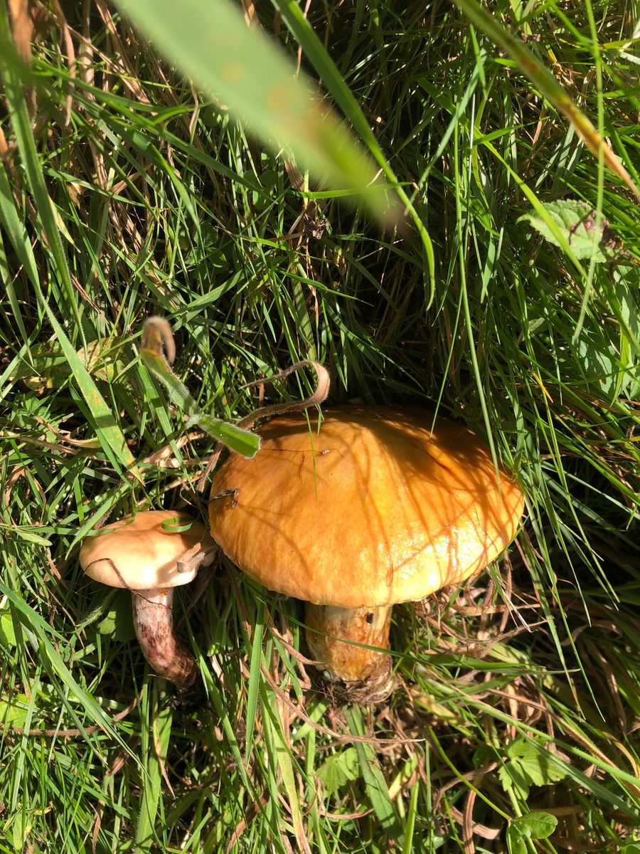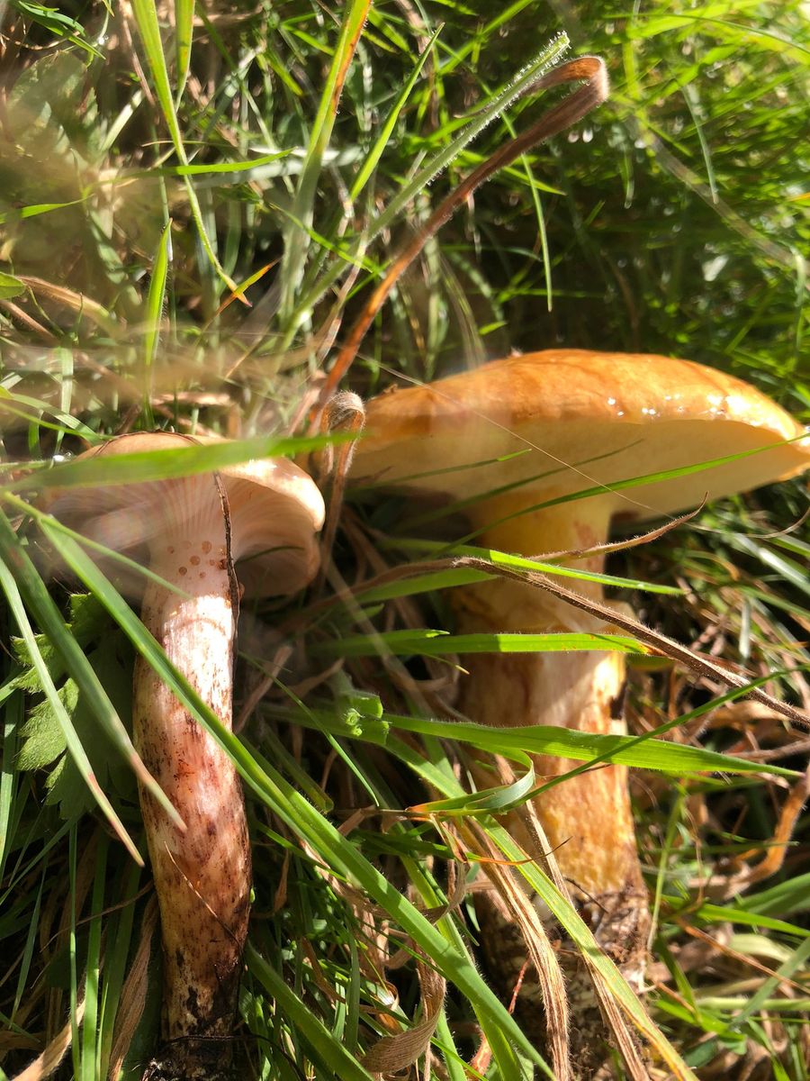Links - gefleckte Schmierling. Rechts - Goldröhrling. Waldrand, Lä/Hainbuche (bestimmt von matthias0, links parasitiert rechts)