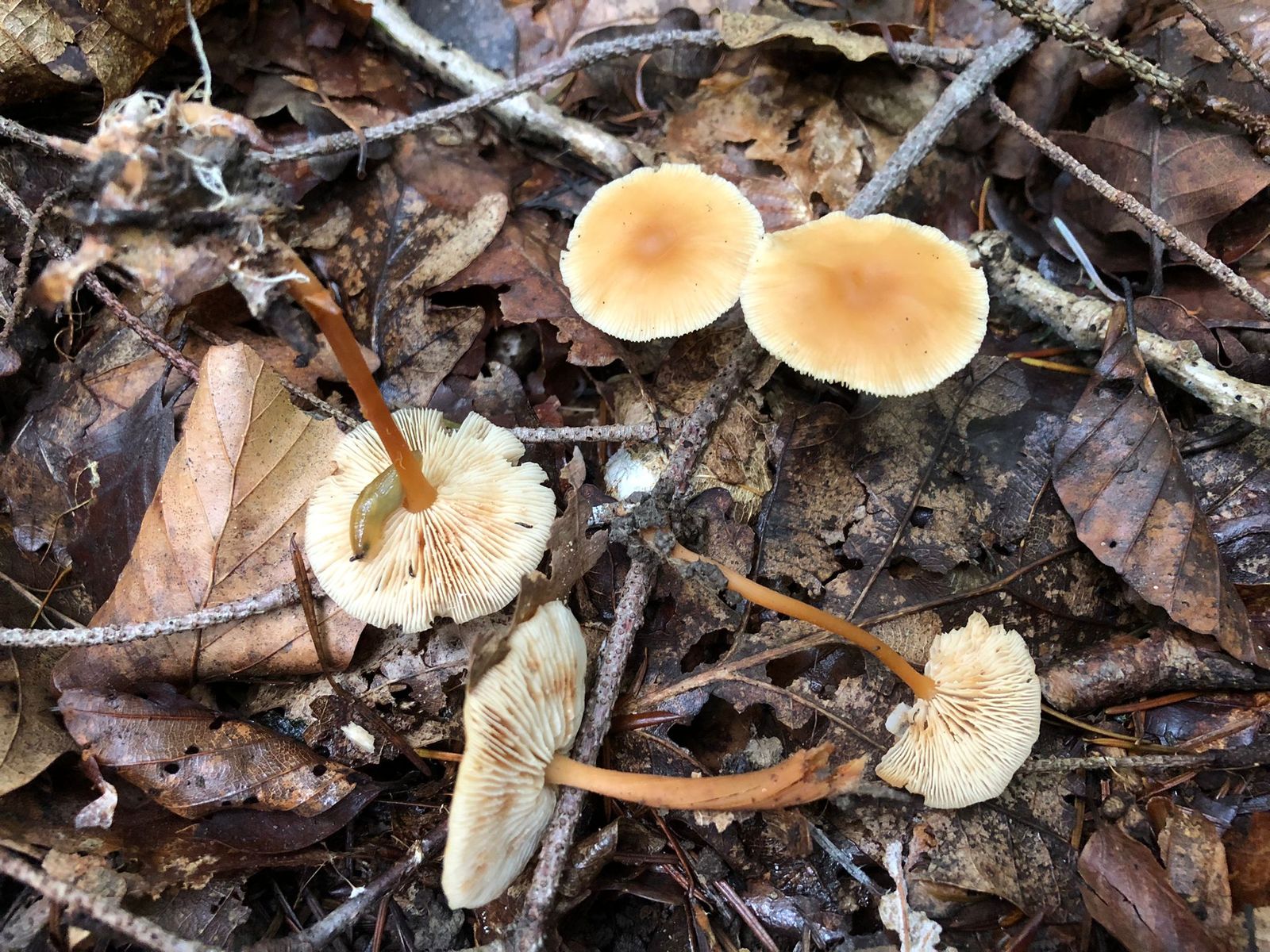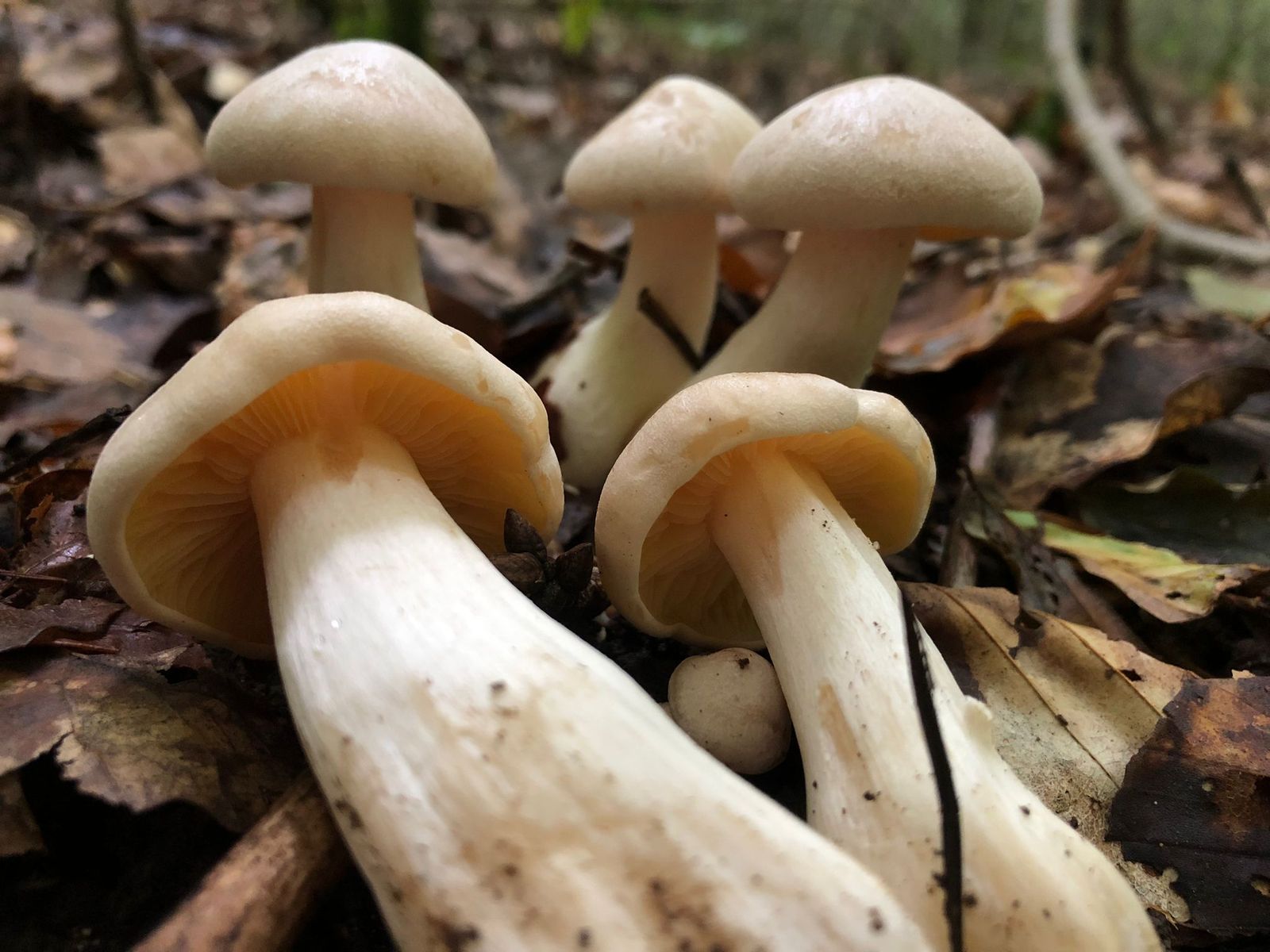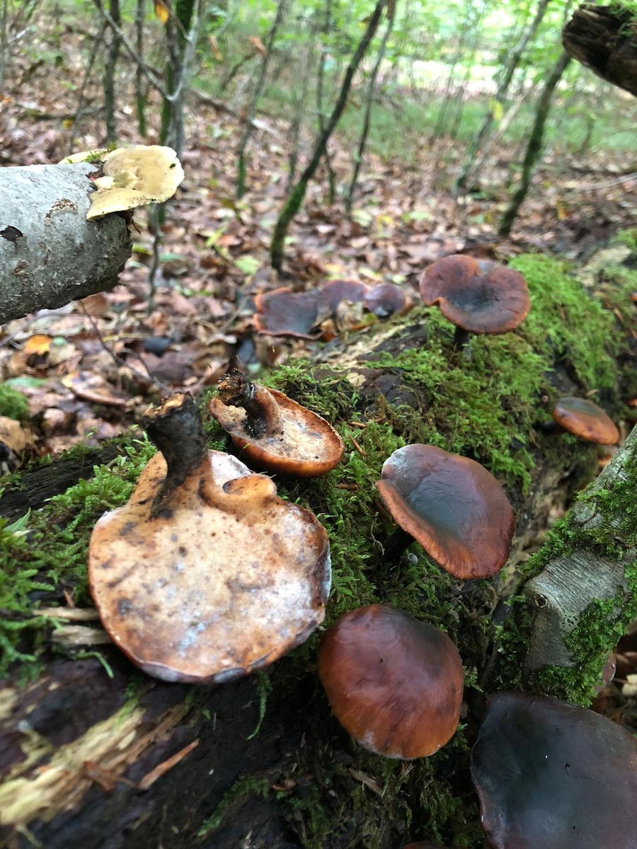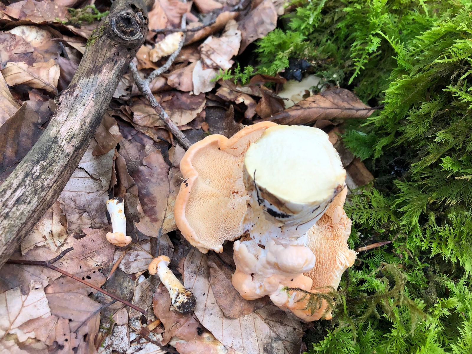 Alle Fruchtkörper wuchsen in der Nähe aber nicht am Totholz. Die hellen rochen stark nach nassem Mehl.