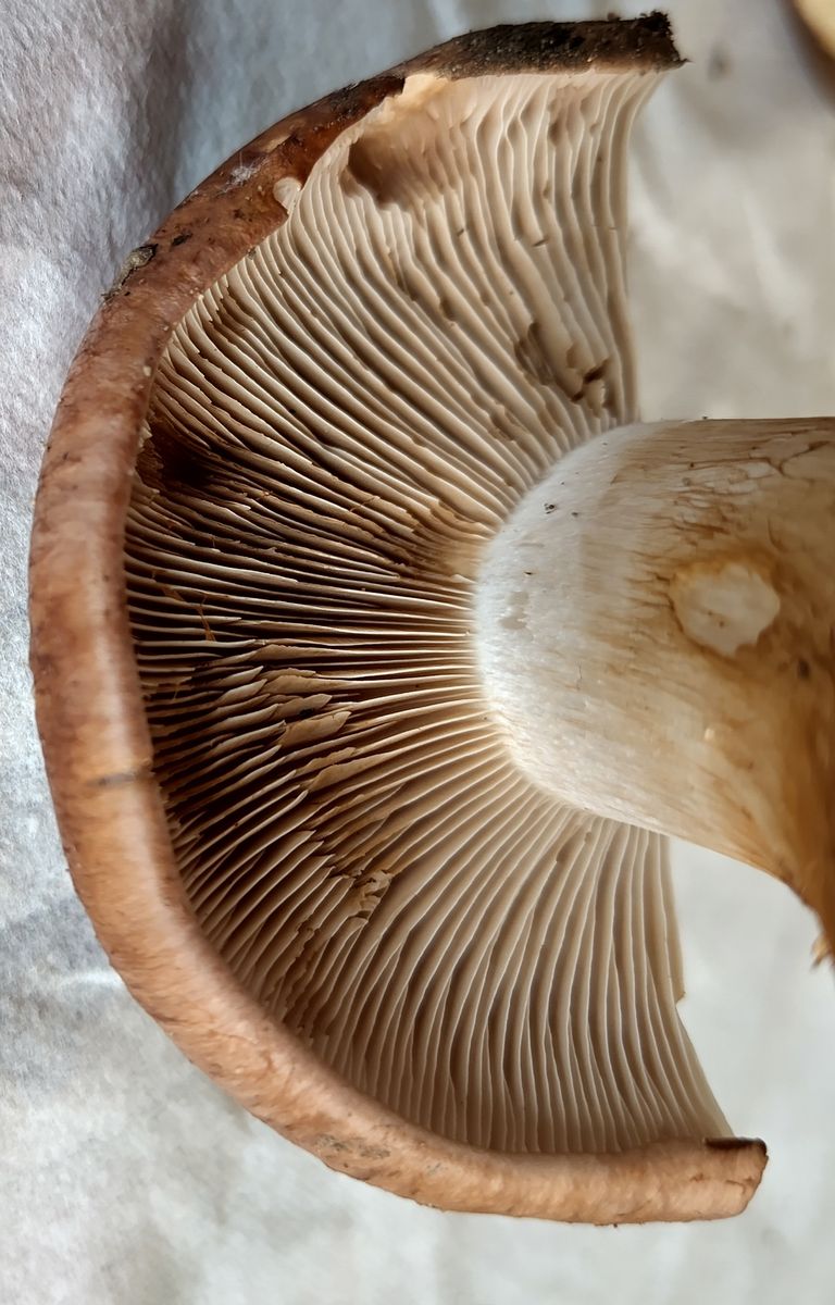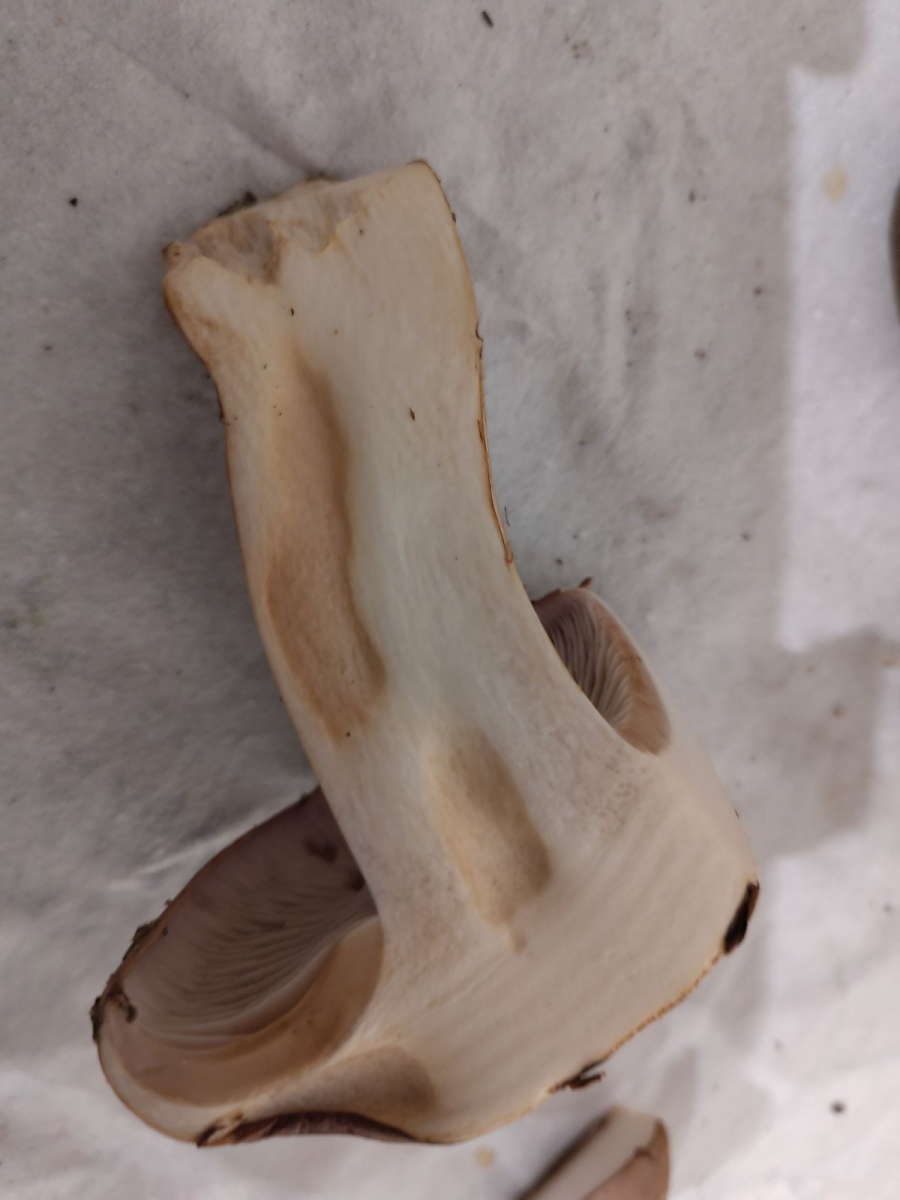 - Lamellen grau-beige (jetzt werden sie brauner vom Sporenpolver)