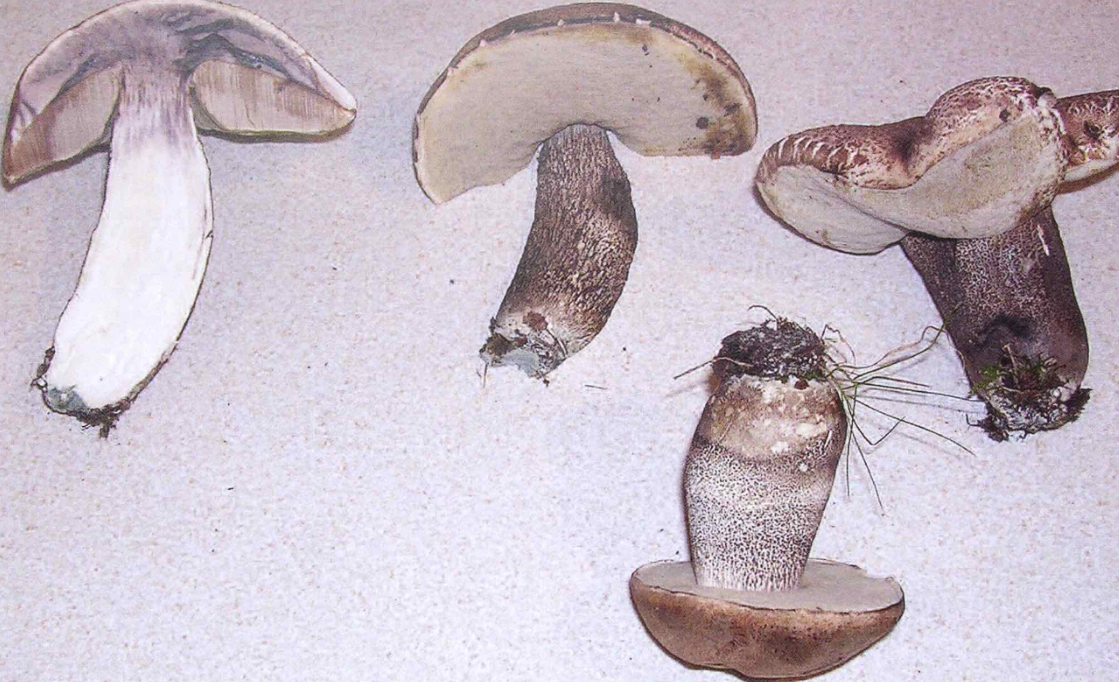 • Leccinum cyaneobasileucum hätte einen rauen Stiel ohne stark kontrastierende Stielflocken und wäre mit Spaghnum vergesellschaftet