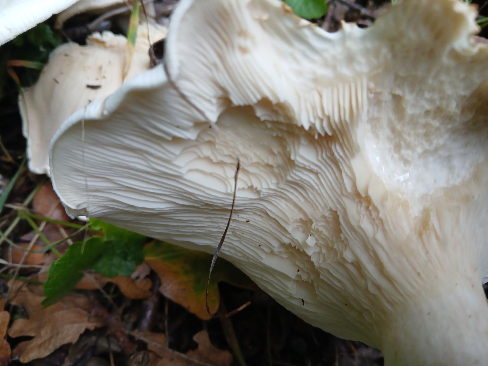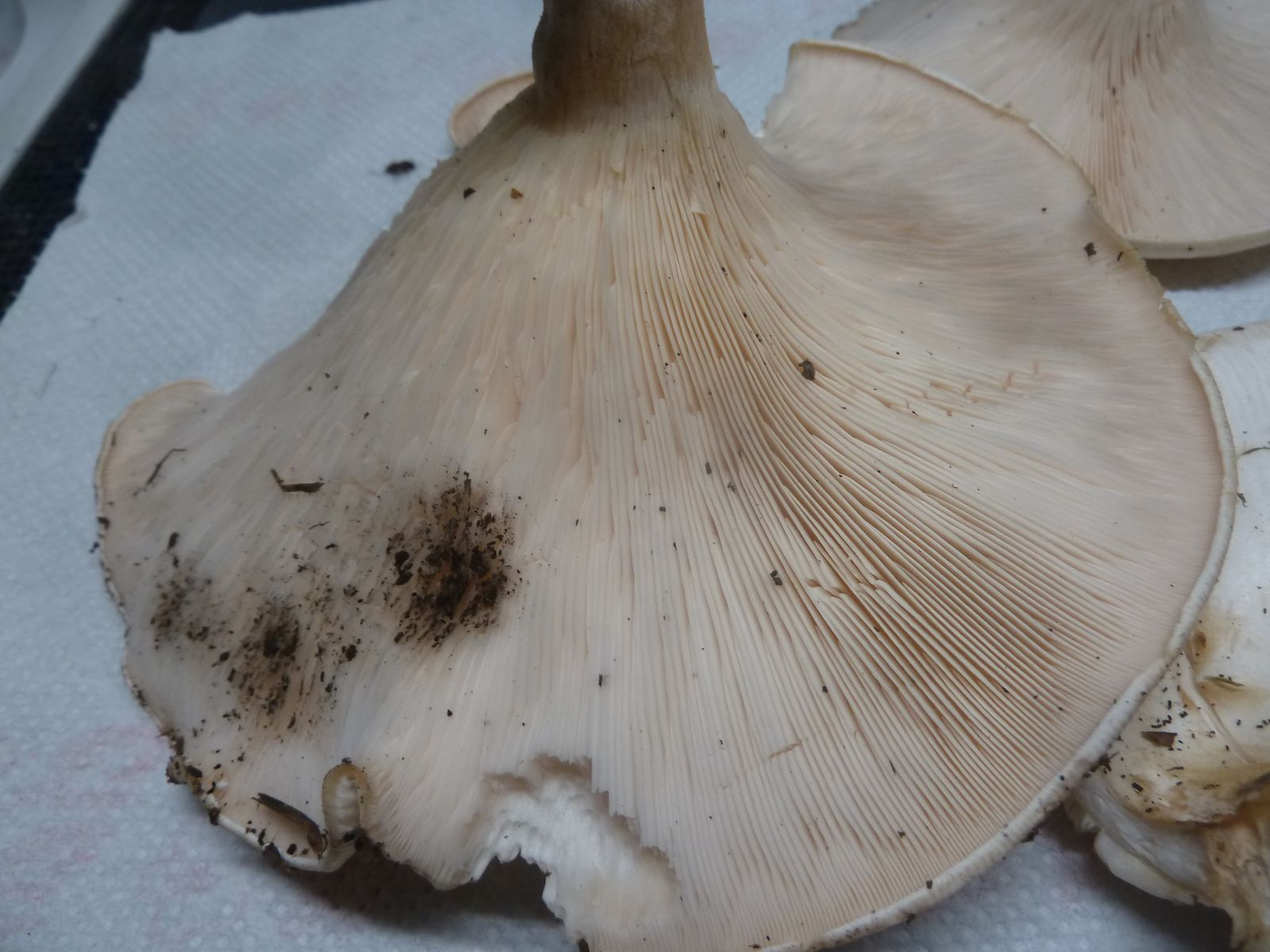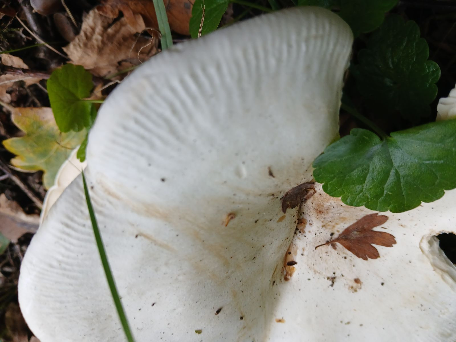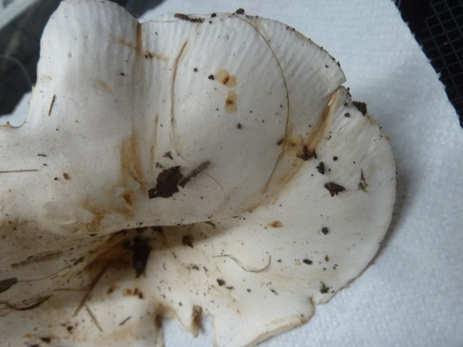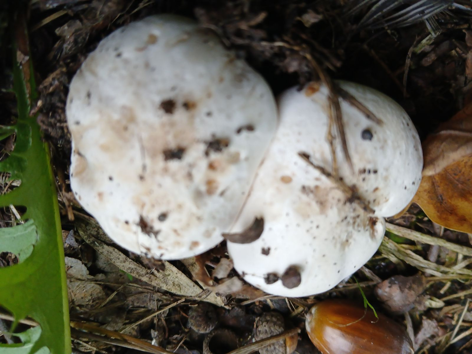 Ich würde diese Exemplare bei den Trichterlingen/Leucopaxillus verorten, könnten das etwas klein geratene Exemplare vom Riesenkrempentrichterling sein?