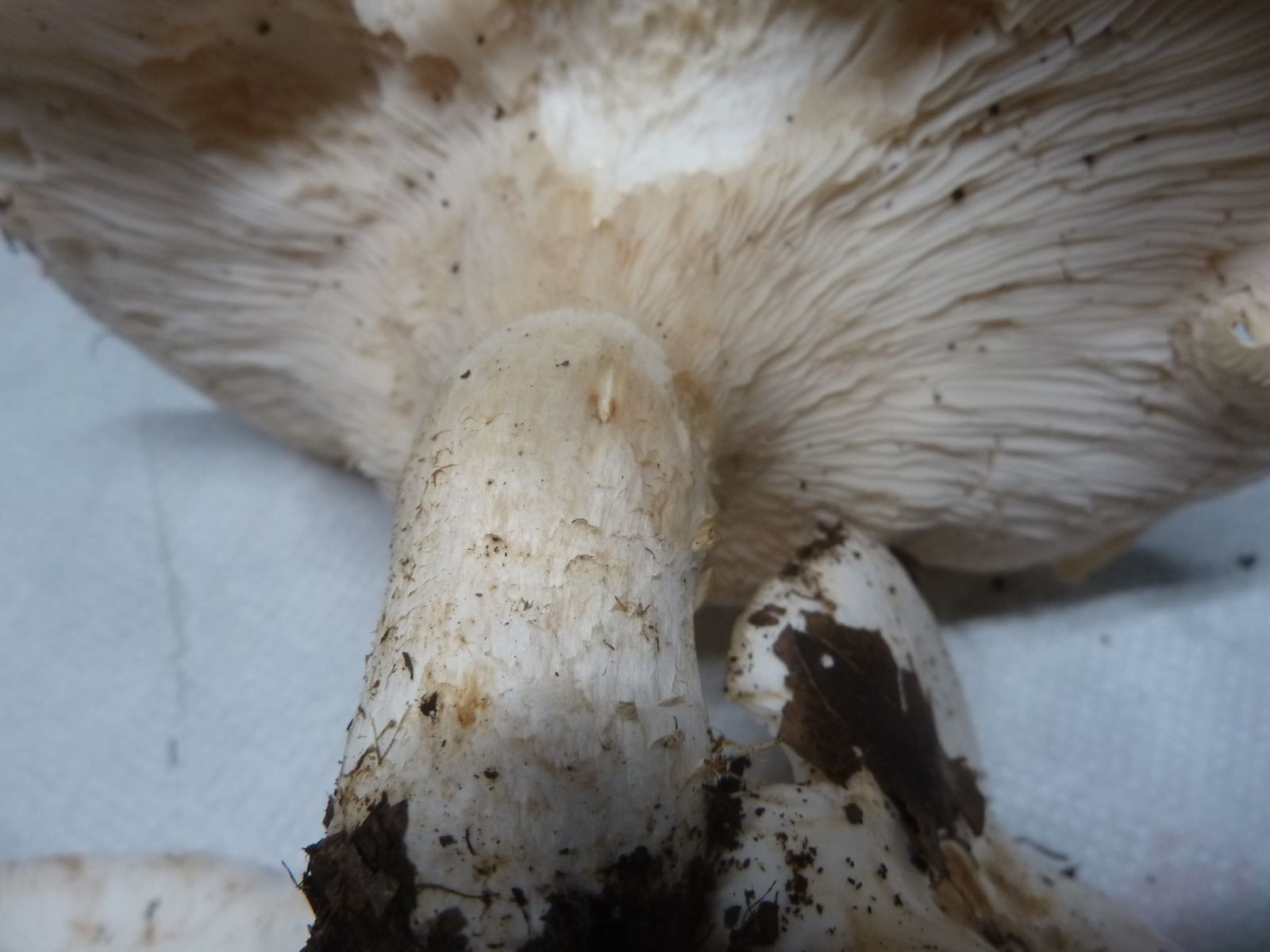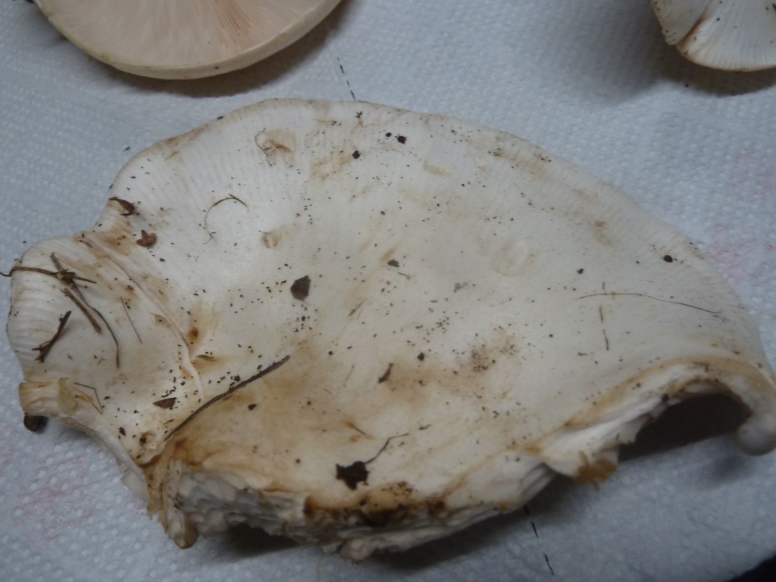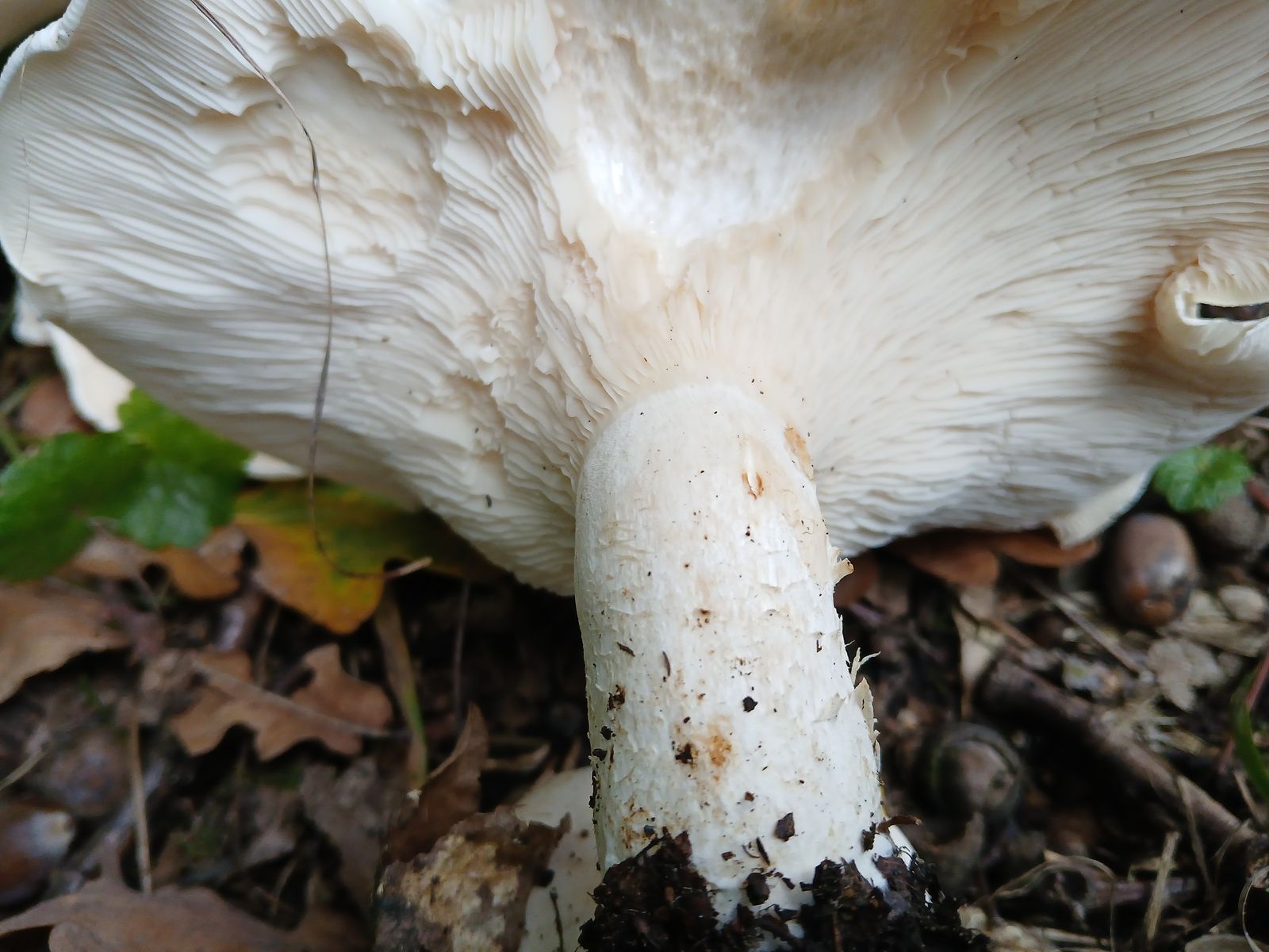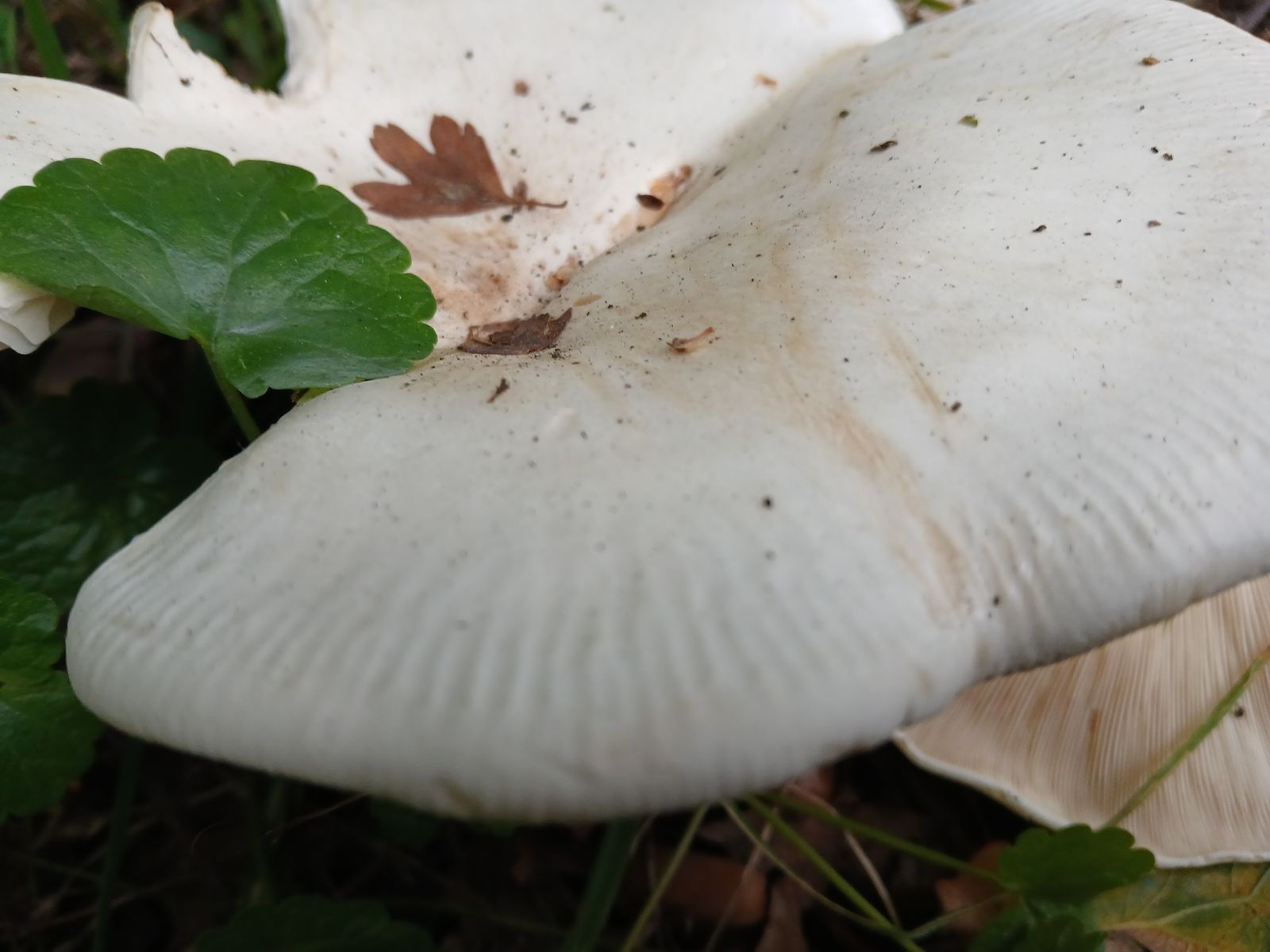Ich würde diese Exemplare bei den Trichterlingen/Leucopaxillus verorten, könnten das etwas klein geratene Exemplare vom Riesenkrempentrichterling sein?