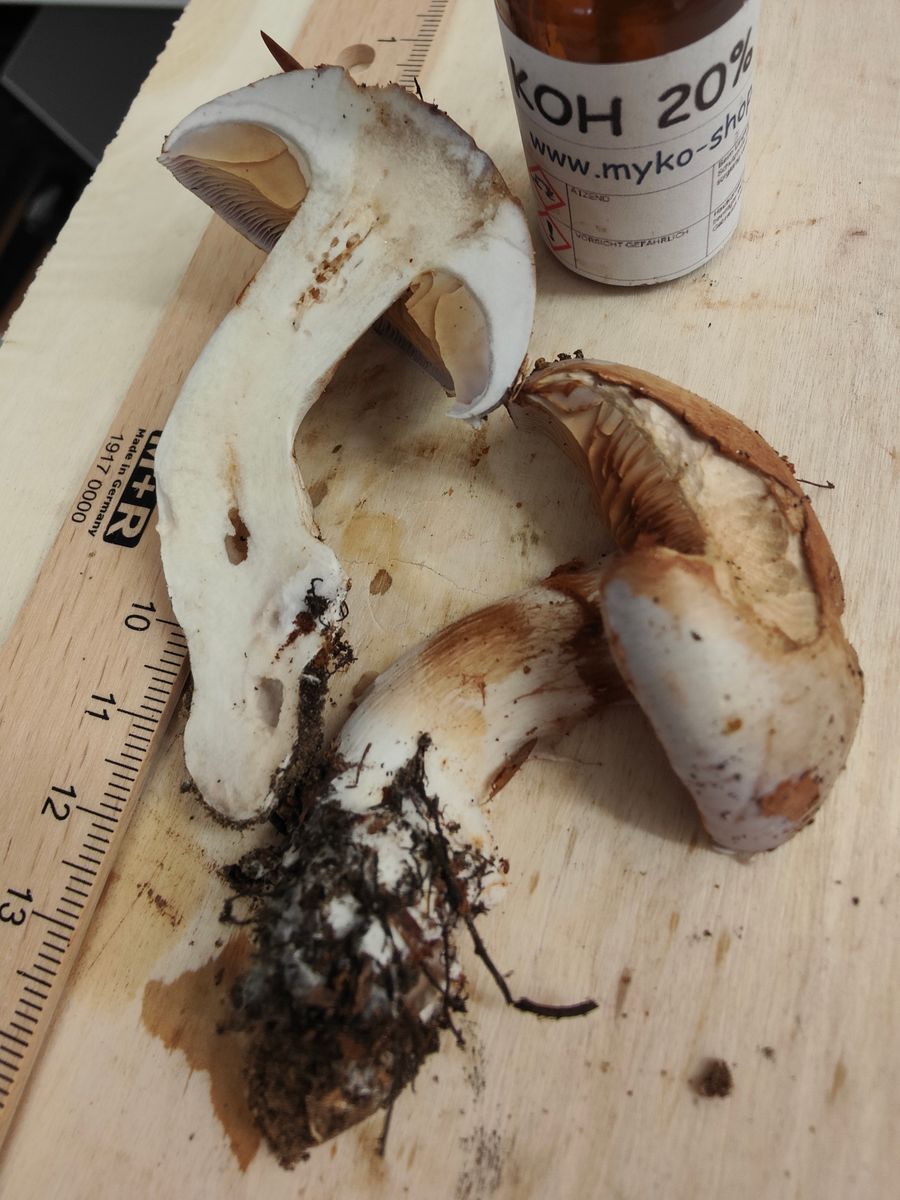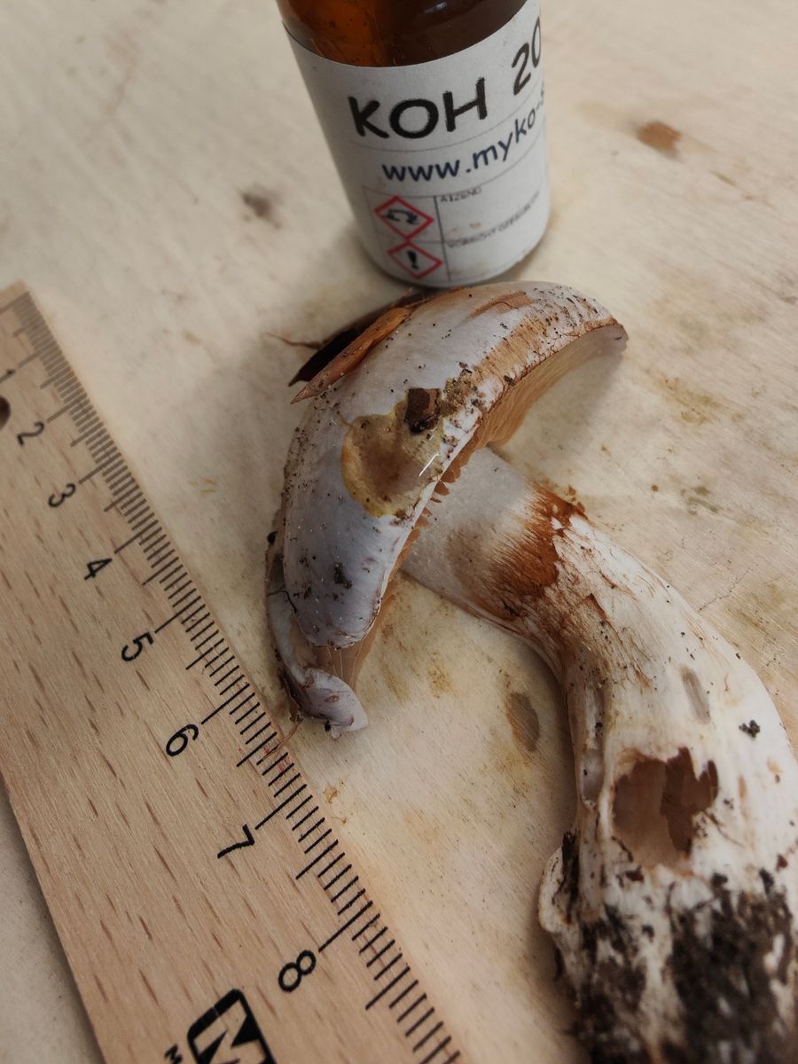KOH auf Hut negativ, auf Stielbasis und Mycel auch negativ