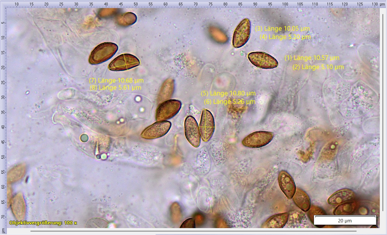 Übrigens die Sporenform hier ist mehrheitlich amygdaloid, mandelförmig