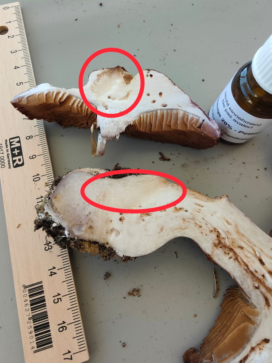KOH auf Hut negativ, auf Stielbasis und Mycel auch negativ