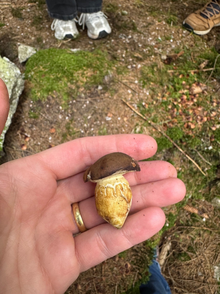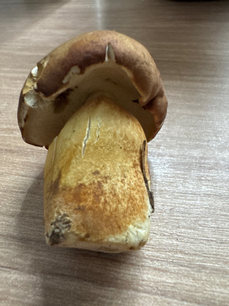 Wir waren vorhin in den Vogesen Steinpilze sammeln. Neben diesen haben wir zahlreiche von den unten verlinkten Pilzen gefunden. Sie werden nicht blau unten und haben einen deutlich gelberen Stiel als Steinpilze.