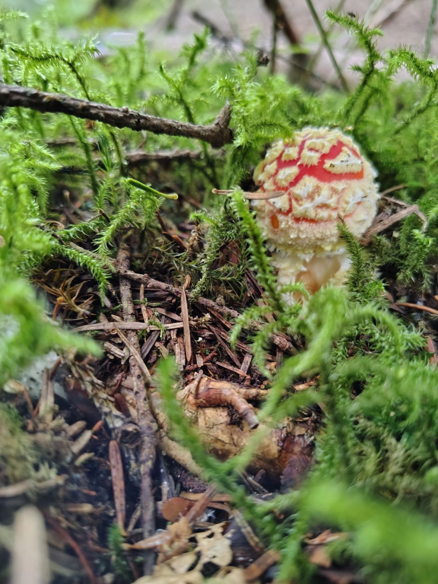 8. Noch in der Kinderstube die Fliegenpilze, oft mit Begleiter