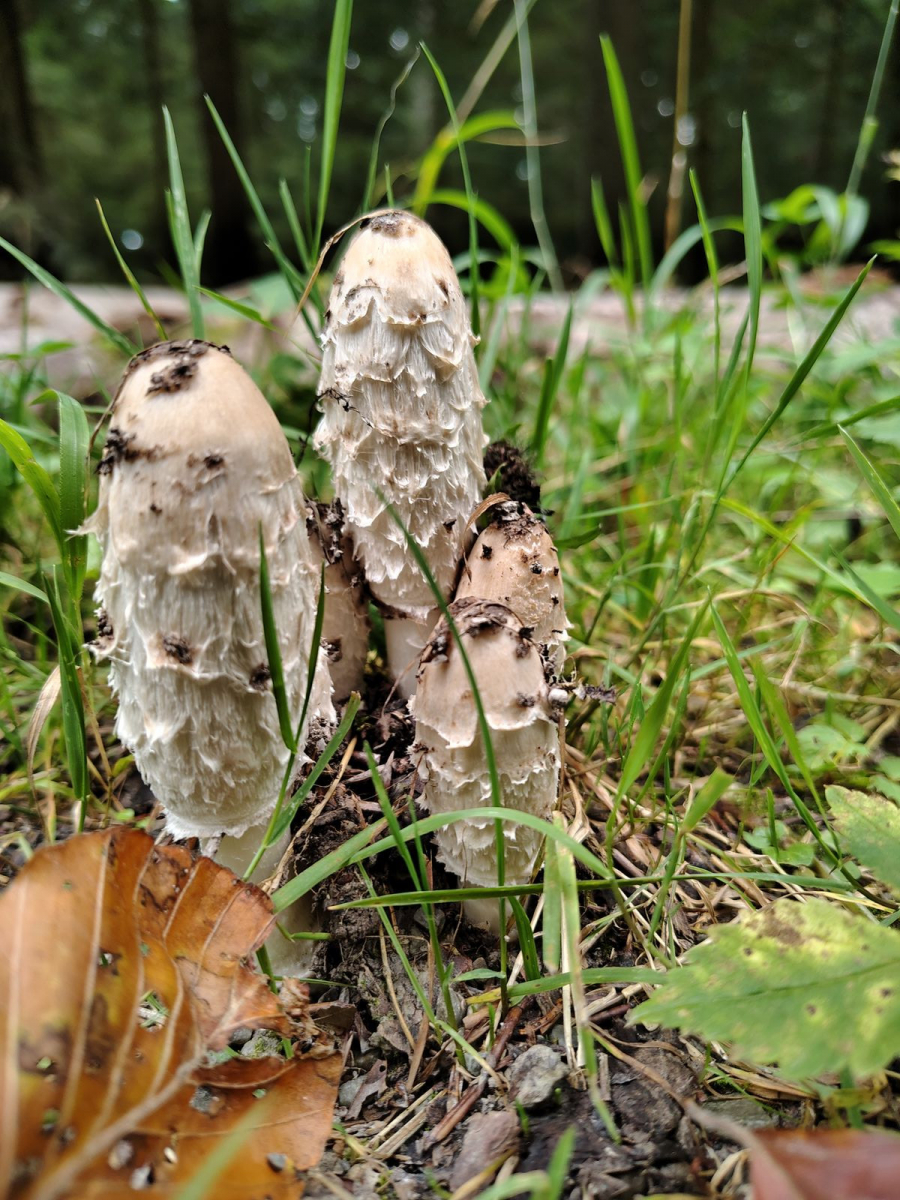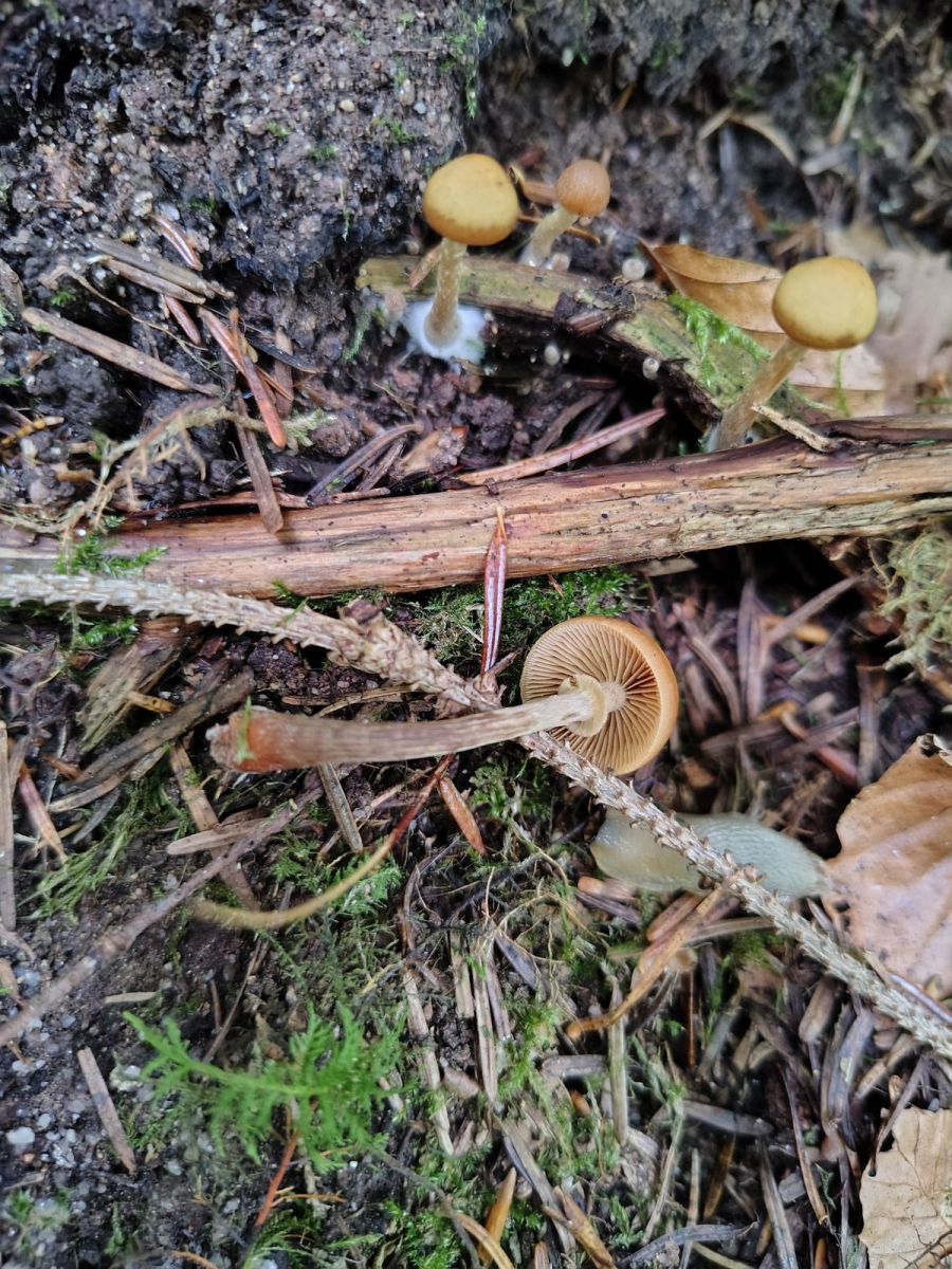 Als erstes dieses komische, sehr angenehm riechende Wegrandpilzchen, bei dem ich hoffe aus der Sporenpulverfarbe schlauer zu werden