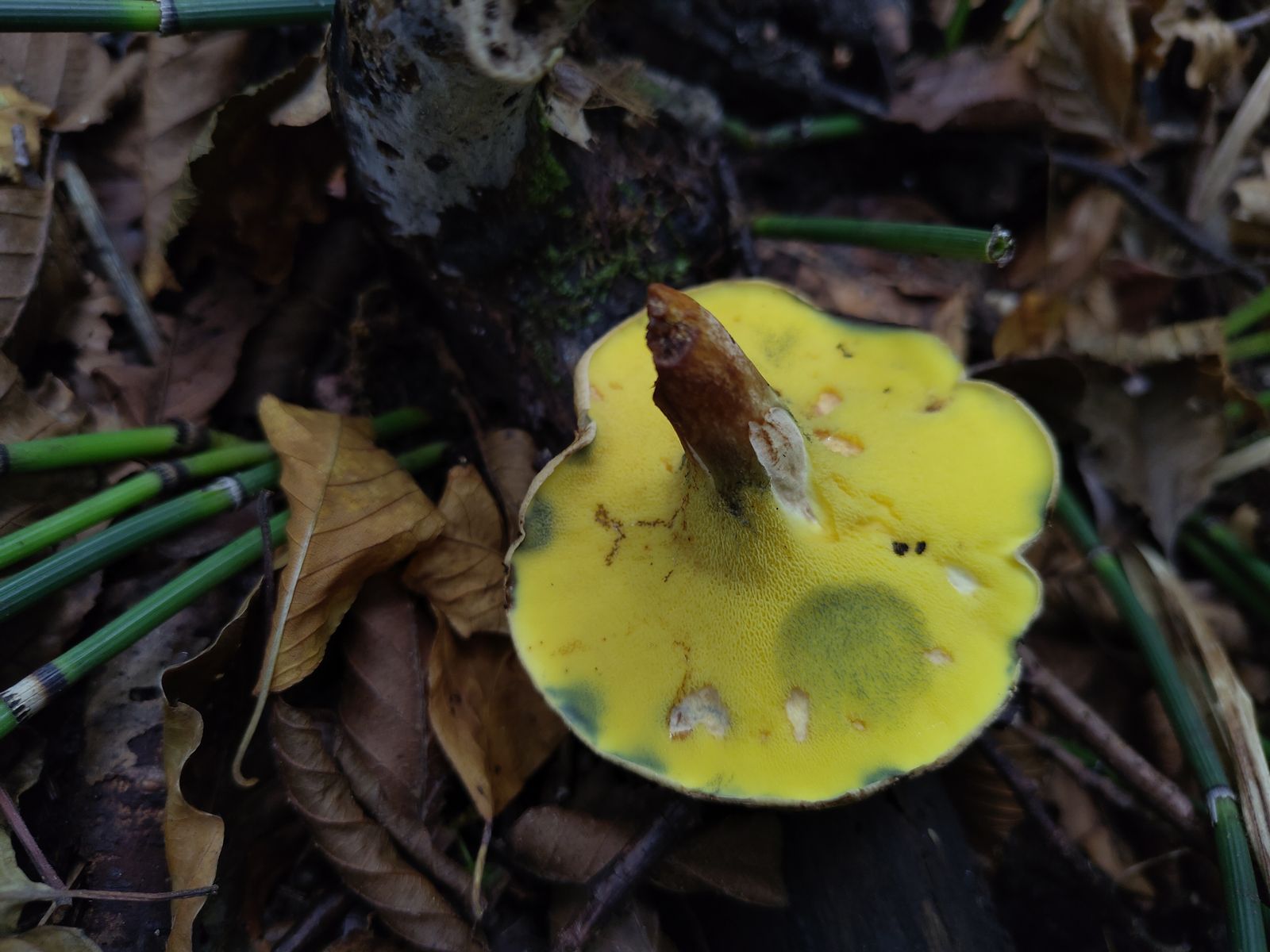 Im Schweizer Mittelland hatte es ausgiebig und immer wieder geregnet und war bis gestern warm bis heiss, doch lange tat sich nicht allzu viel bei unseren unteridischen Freunden. Seit zwei Wochen gehts jedoch einigermassen ab - v.a. in Laub- und Mischwäldern. In den normalerweise ergiebigeren Fichtenforsten ist es ziemlich still. Perlpilze zu hauf (wie alle Pilze momentan ohne Maden!), selten ein paar Maronen, das wars dann aber oft. Nun schon zum dritten Mal habe dieses Jahr diese hübschen Kerle gefunden: