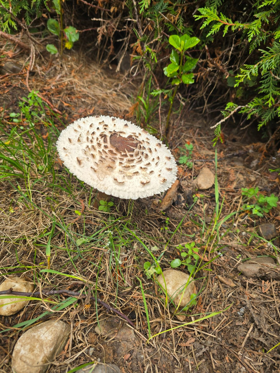 Vor ein paar Jahren habe ich, in unserem Garten eine parasolpilzkultur von hawlik ausgebracht, jedoch an einer völlig anderen stelle zu der Stelle an dem nun der Pilz, der auf dem bild zu sehen ist, wächst.