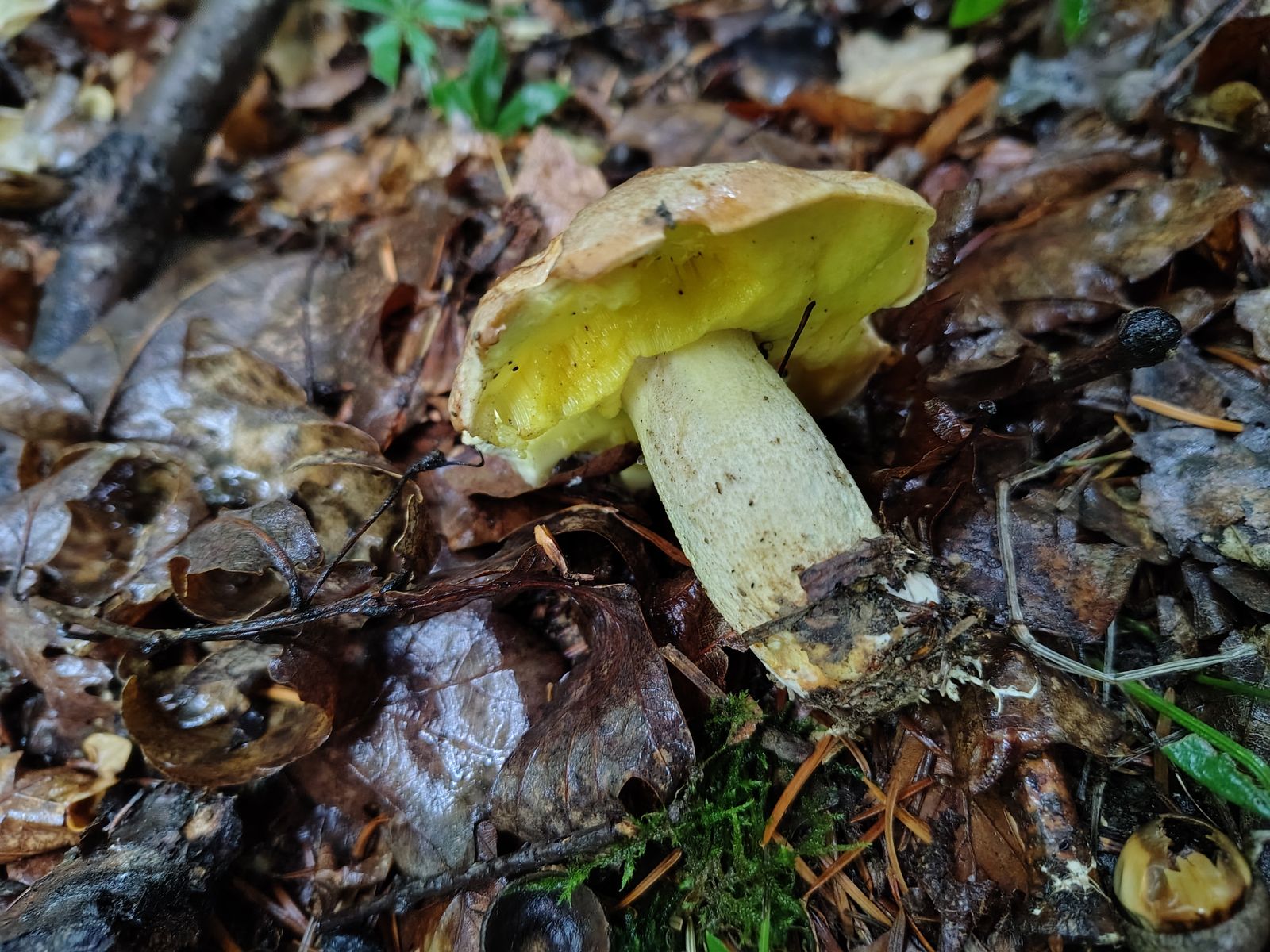 ein komisches Pilzjahr ist es aktuell. Vor allem in meinem Hauswald, ein sehr bunt gemischter Laubwald mit eingestreuten Tannen, tauchen dieses Jahr lauter Pilze auf, die ich dort in 4 Jahren noch nie gesehen habe. Promimente Beispiele waren im Sommer Butyriboletus appendiculatus und Amanita franchetii, heute dann im Wald unter einer Monstereiche mein erster Fund von Hemileccinum impolitum in Deutschland.