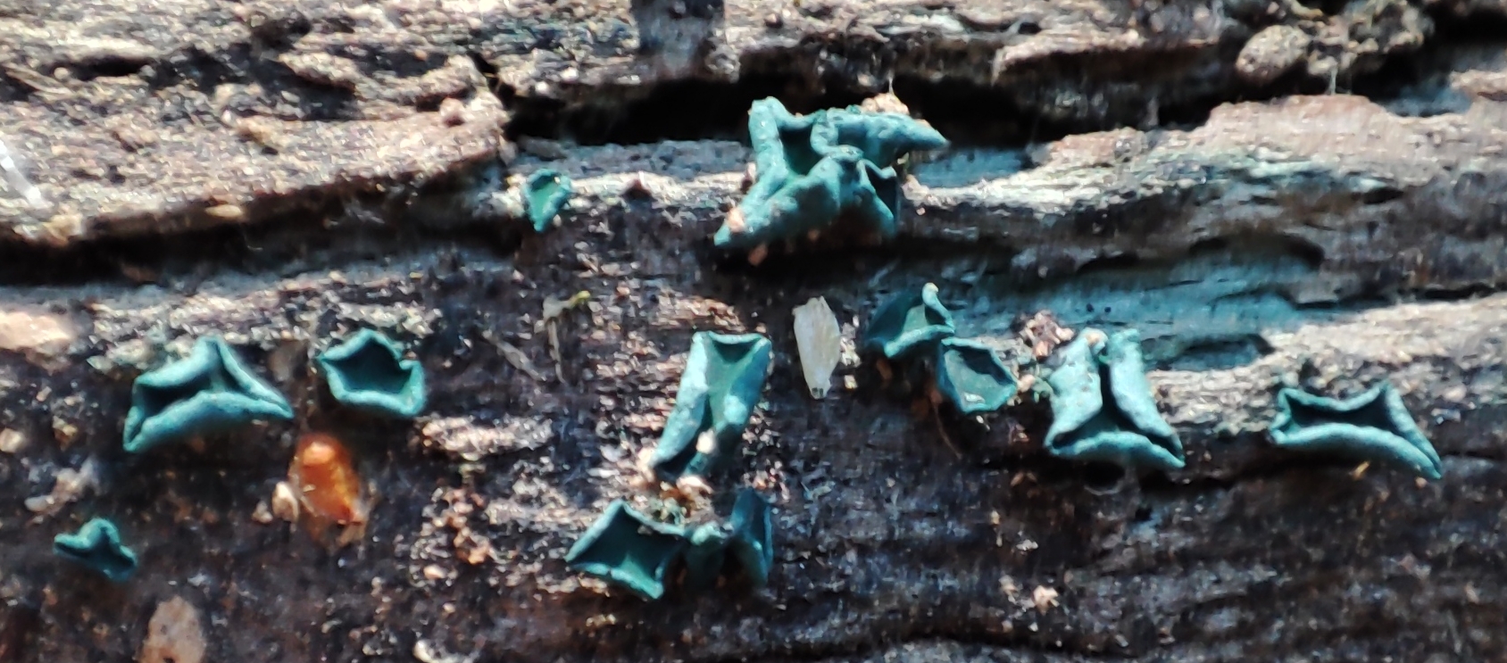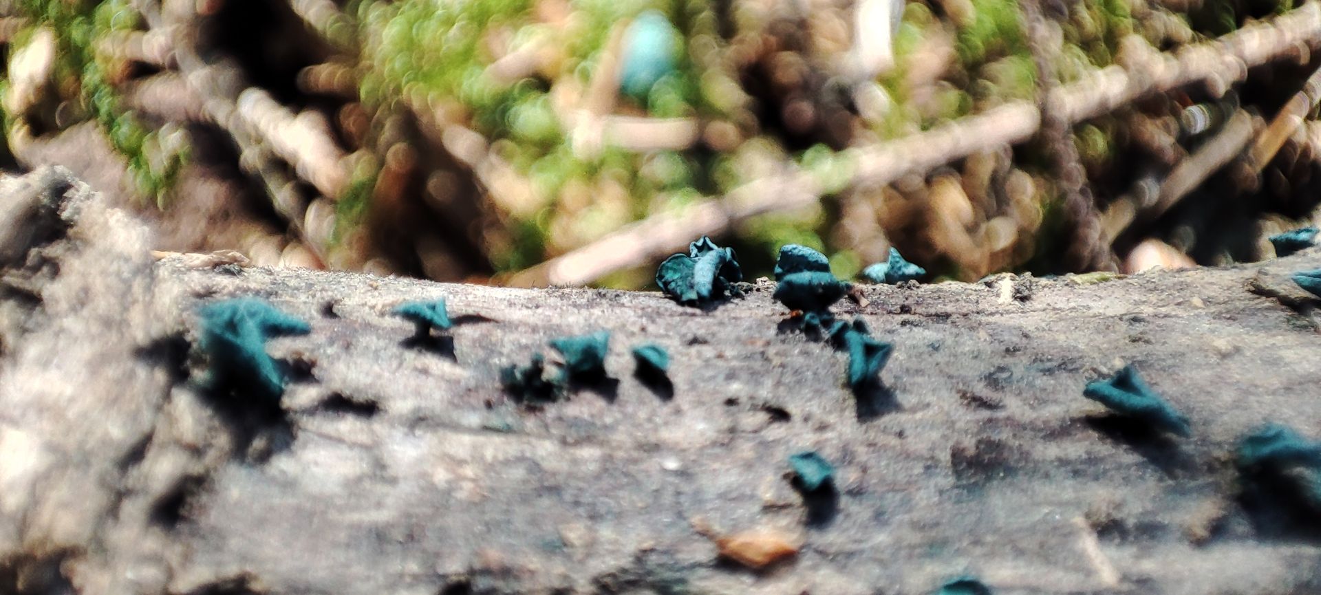 vorgestern sah ich grünspanig verfärbtes Totholz auf einem Rückeweg: