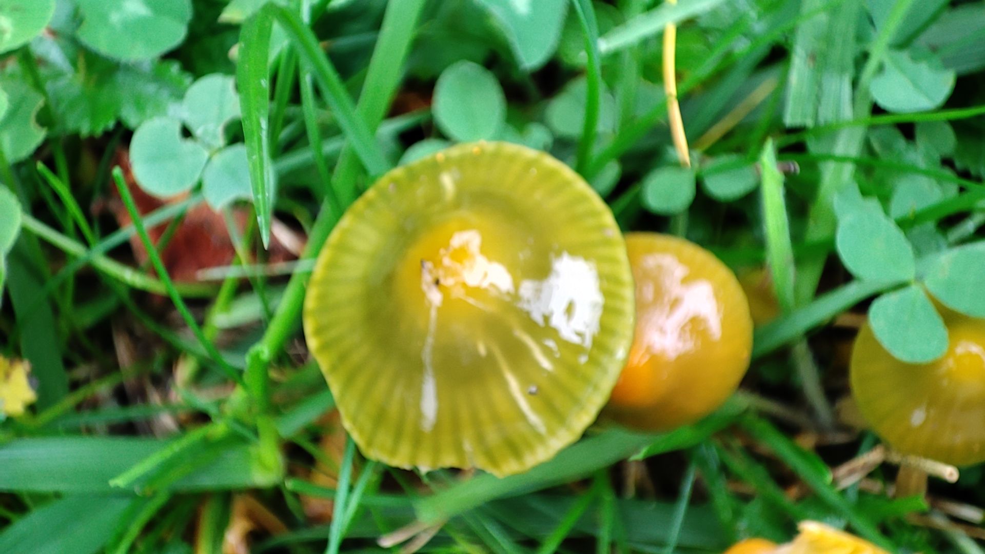 WunderschĂśn, der glasig-grĂźne Stiel und die goldgelben, wachsartigen Lamellen...