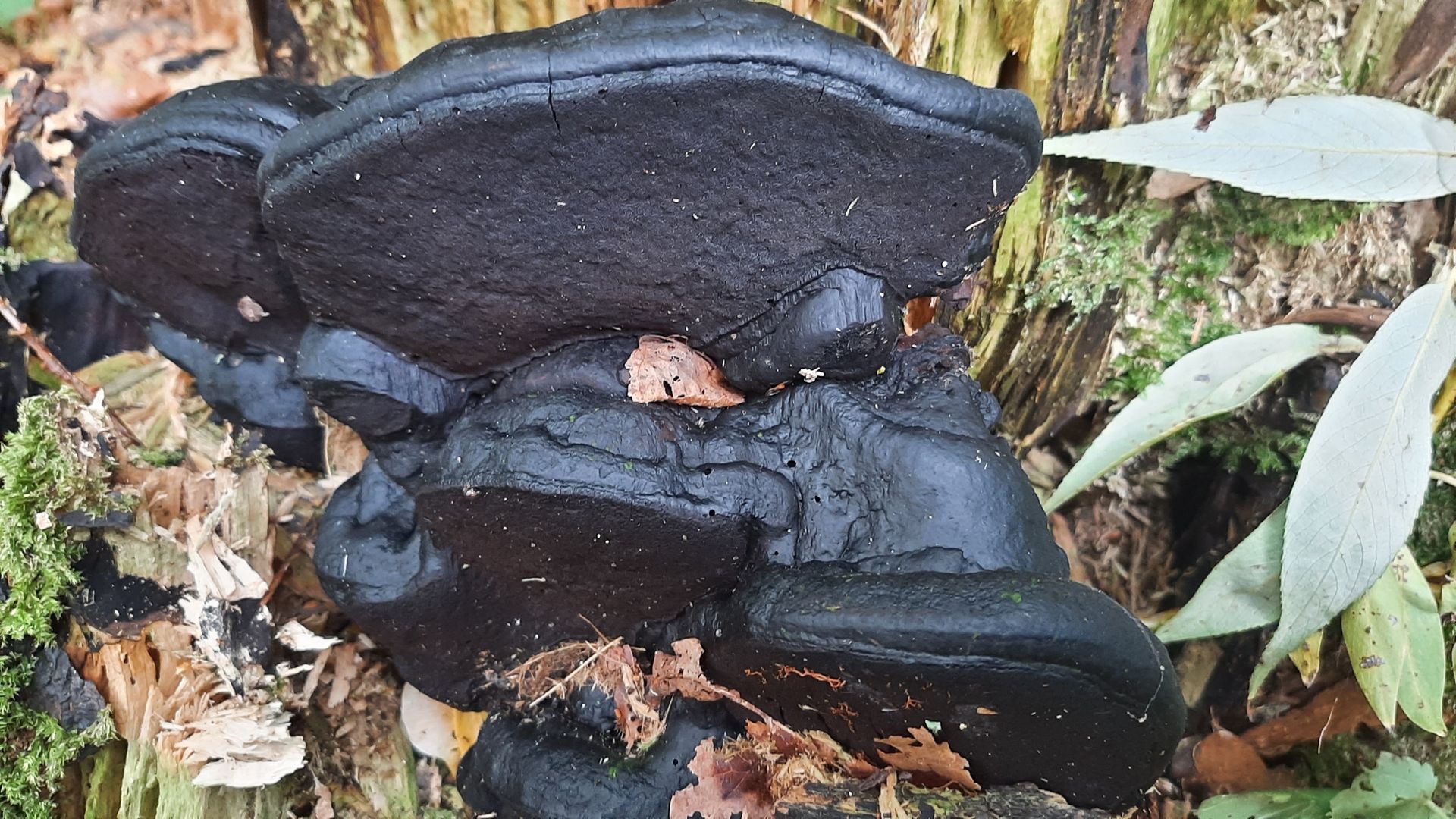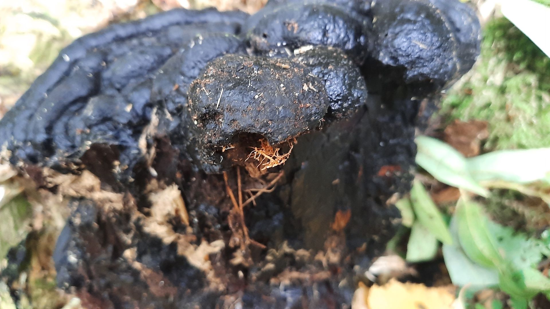 Heute habe ich diese Fruchtkörper auf einem extrem vermulmten Holzstumpf gefunden. Da ich keine so schwarzen Porlinge in meinen Pilzbüchern finden konnte, gehe ich davon aus, dass es sich lediglich um eine Pilzmumie handelt ?!