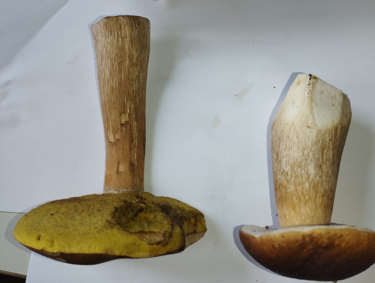 Ehrlich können die in so einem kleinen Areal innerhalb einer Art so massive Unterschiede in Farben und Stielform aufweisen? War mir so nicht bekannt. Aber Michael deutete ja schon an sie halten sich nicht gern an feste Vorschriften. Mich verwundert nur dass die oberen selbst bei recht jungen Fruchtkörpern schon so oliv-gelblich Röhren hatten und die anderen nicht. Alle wurden im selben Umkreis von 300m gefunden.