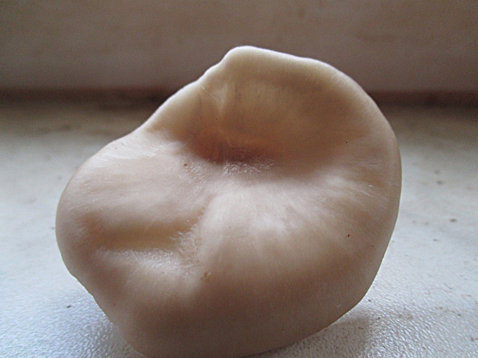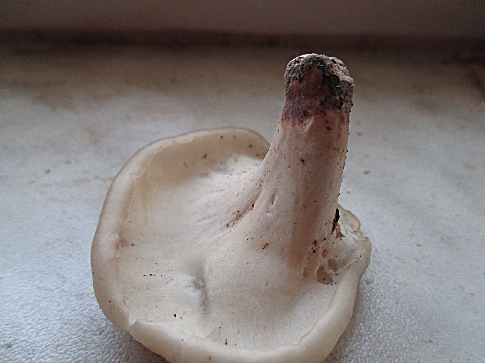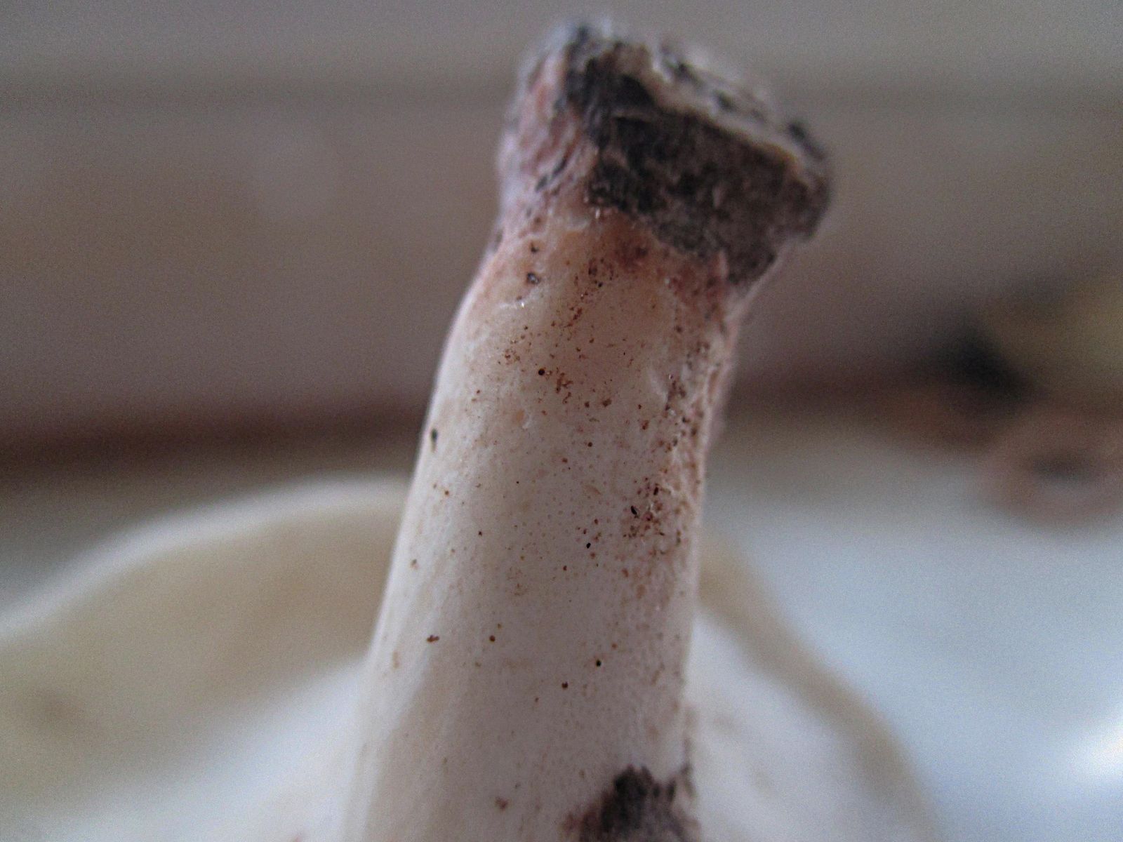 Stiel: 1,5 cm, weiß, glatt, zur Basis hin bräunlich werdend