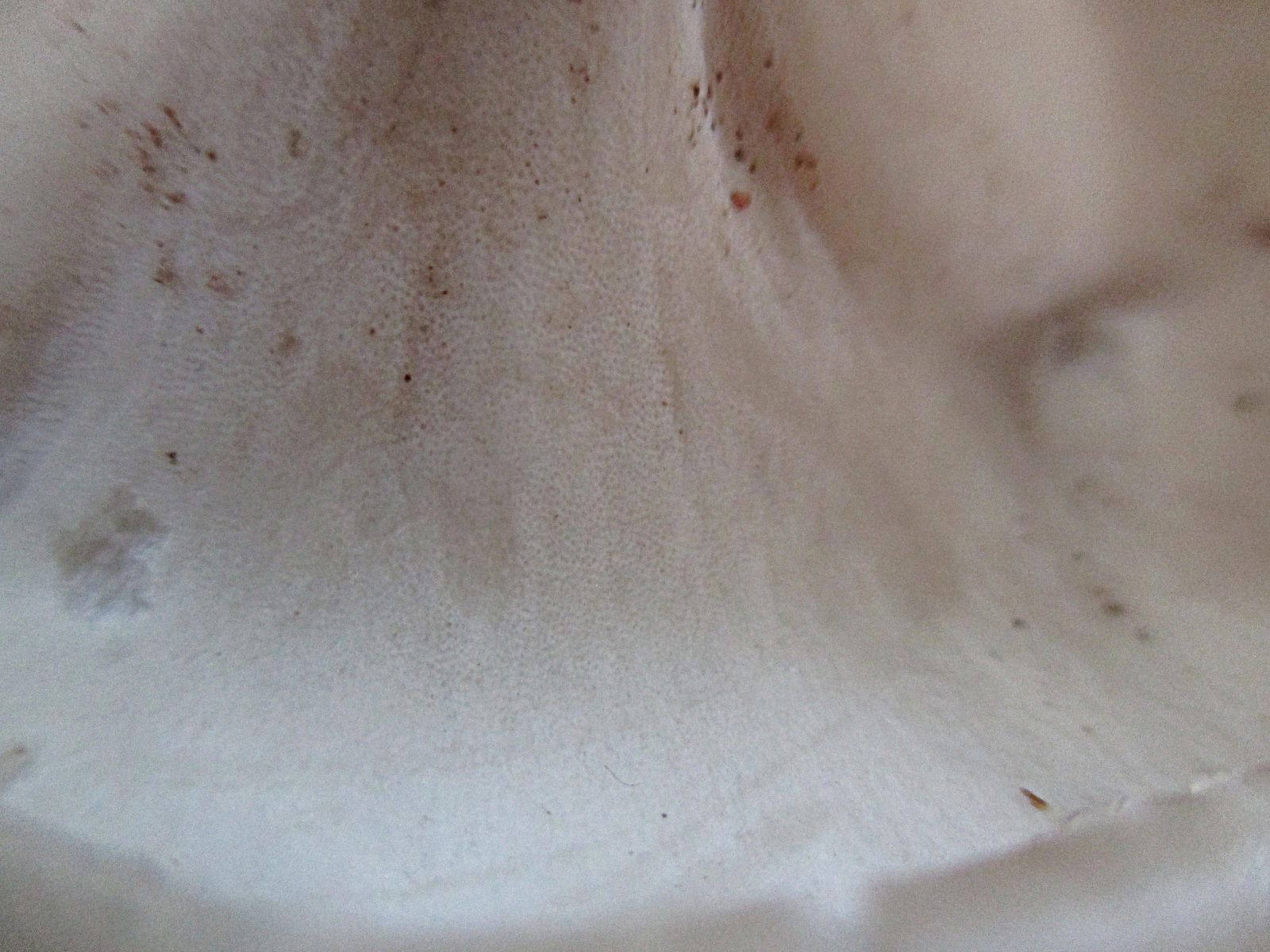 Poren: kaum zu erkennen, weiß, am Stiel herablaufend