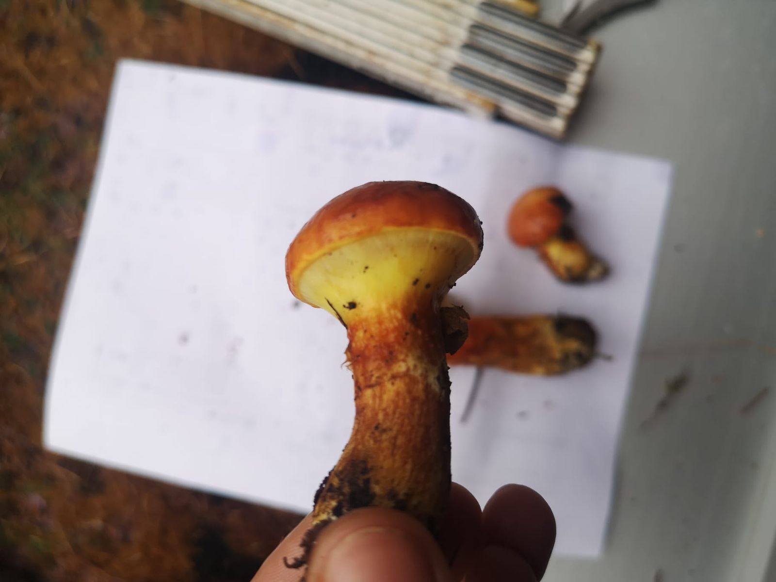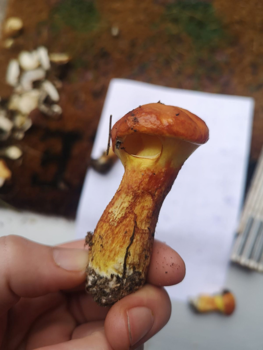 - Beschreibung Stiel: 4-5cm hoch, Durchmesser bis 2cm, Bereich kurz unterm Hut gelb und glatt, darunter braun-orange mit bräunlicher Überfaserung. Diese jungen Exemplare haben KEINEN Ring, kommt der noch im Wachstum? Bzw. bildet er sich aus dem Velum?