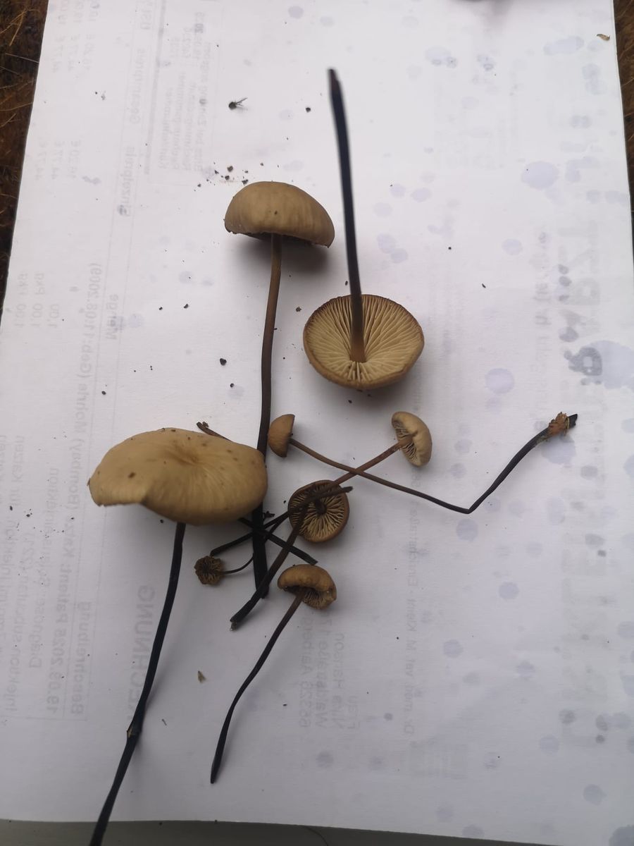 2) Knoblauchschwindlinge, ggf. verschiedene Arten und ich denke nicht der Kleine (Marasmius scorodonius)