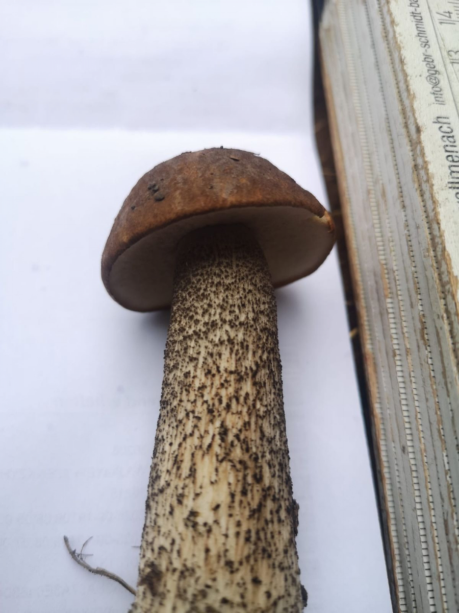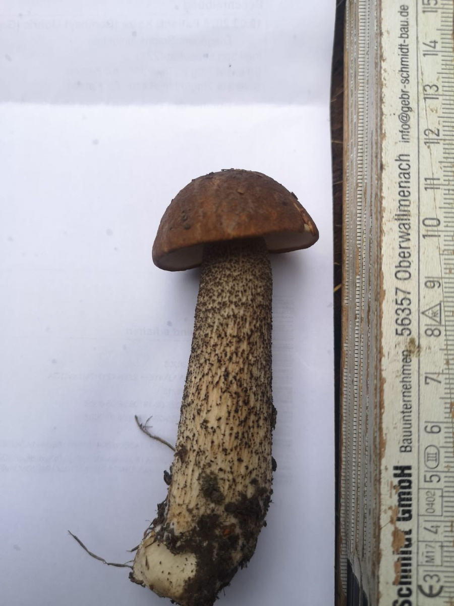 - Beschreibung Stiel: Durchmesser 2,5cm, Höhe 9cm, weißlich, mit schwarzen Schüppchen übersät