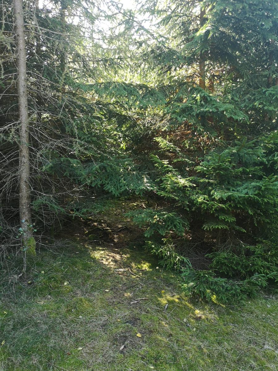 - Begleitbäume, Substrat: Wegesrand Mischwald, ich weiß leider nicht, ob der Nadelbaum in unmittelbarer Nähe eine Lärche war...