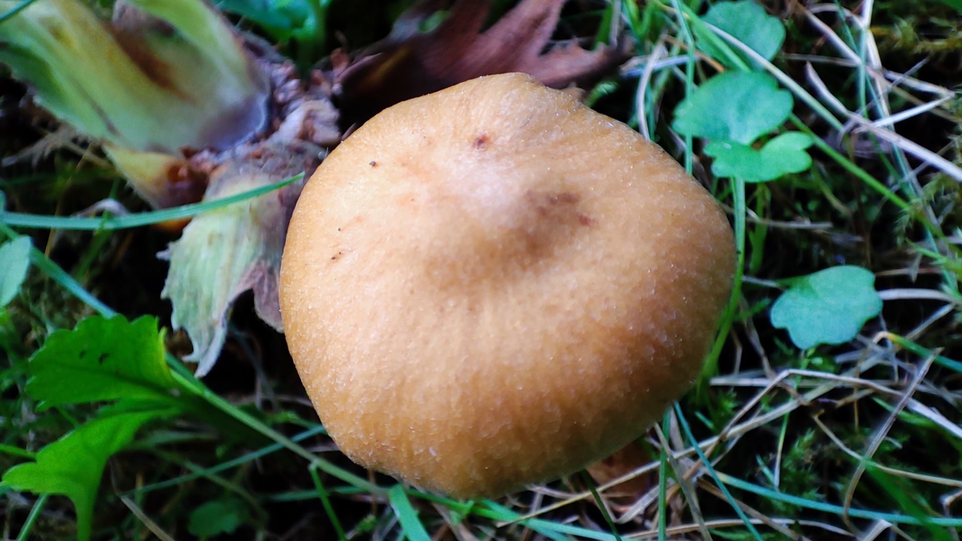 HUTFORM: Stumpf gebuckelt, Dm 2-5cm, leicht radialfaserig, leicht behaart. Am Hutrand hängen kurzfaserige rotbraune Velumreste