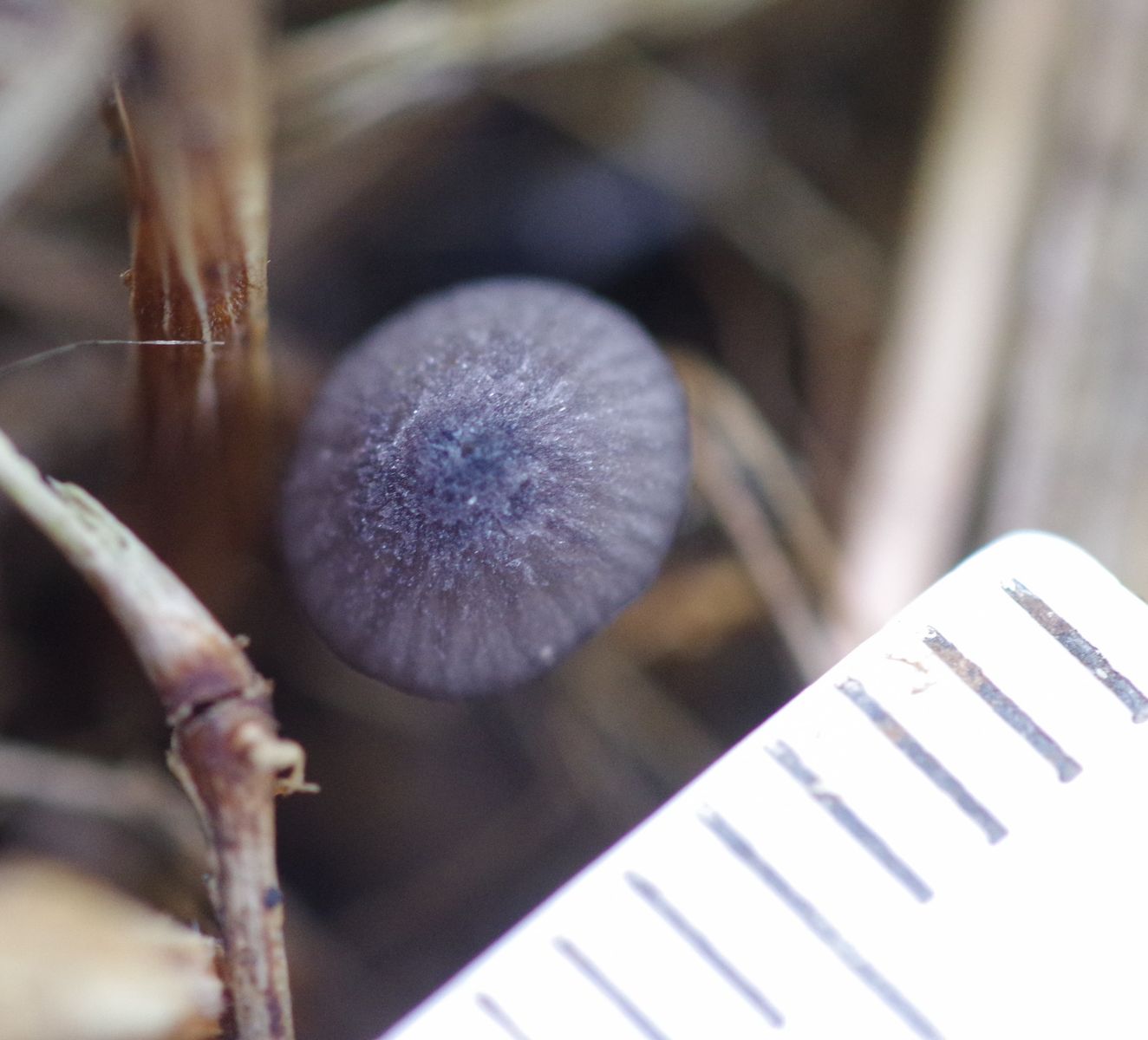 vor ein paar Tagen hab' ich auf der Wiese eine winzige blaue Entoloma gefunden, wovon ich mittlerweile geerntet habe. Das große Exemplar hat einen Hut von 6 mm.