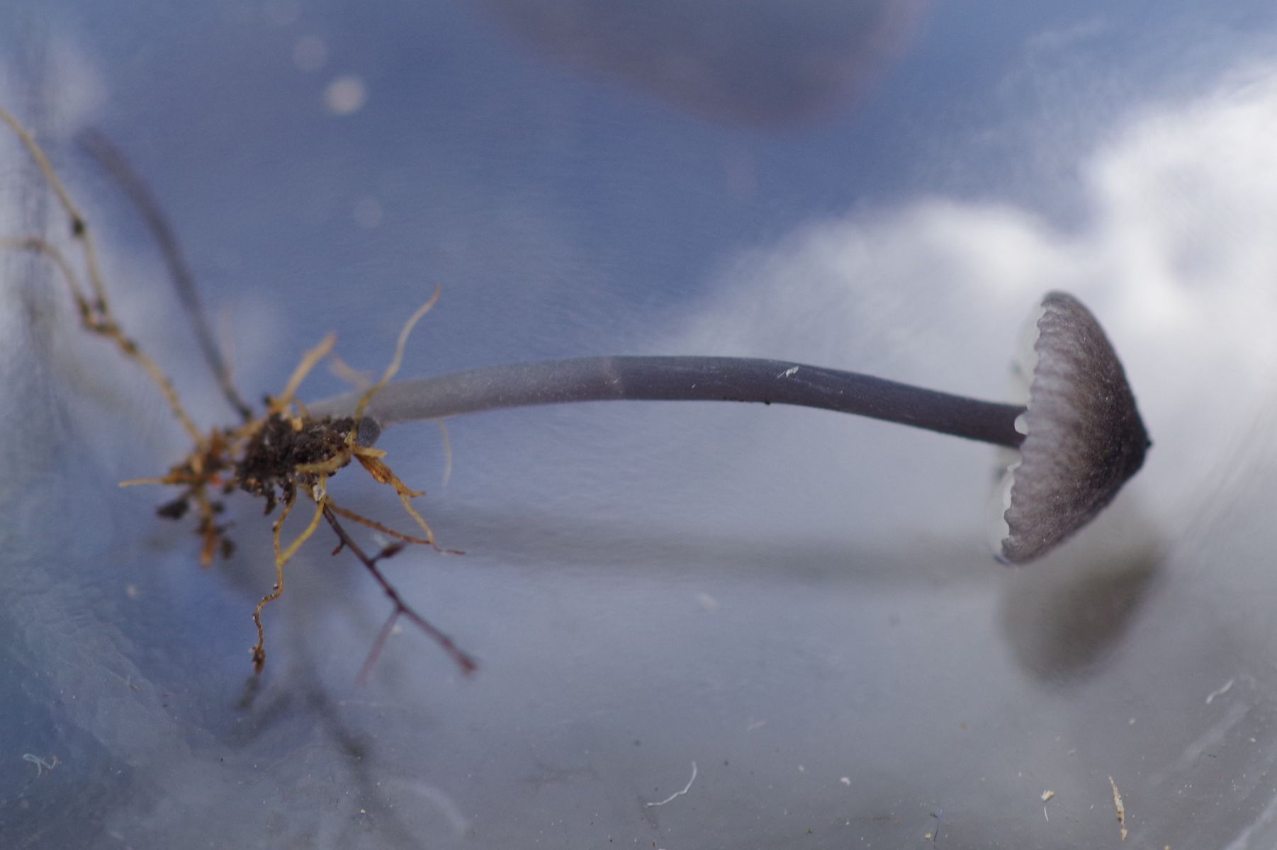 vor ein paar Tagen hab' ich auf der Wiese eine winzige blaue Entoloma gefunden, wovon ich mittlerweile geerntet habe. Das große Exemplar hat einen Hut von 6 mm.