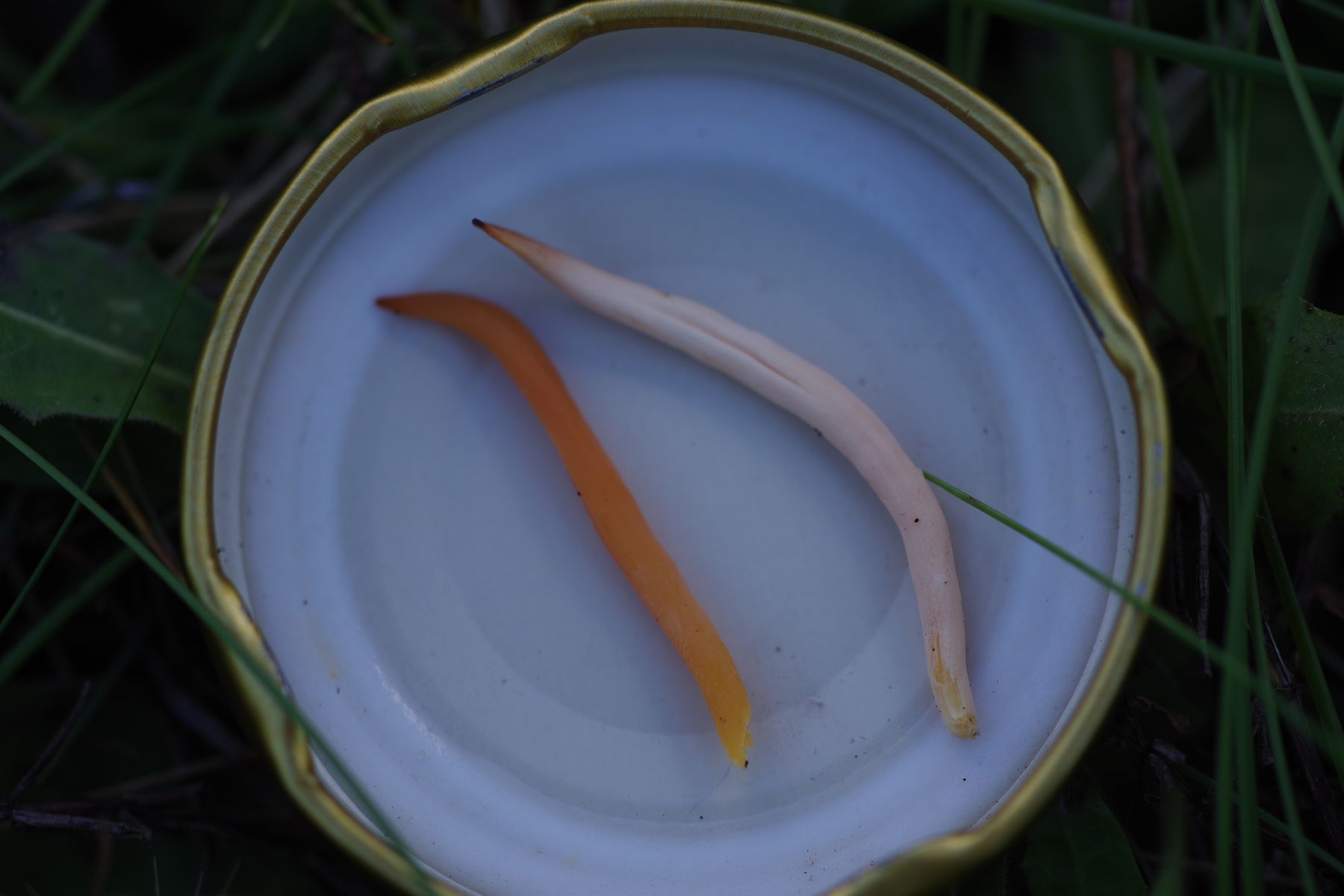2) stammt vom Wiesenrand, da wo früher mal der Hof war, unter Ahorn zwischen Giersch, neben kleineren weißen Keulchen und Geoglossum cookeanum