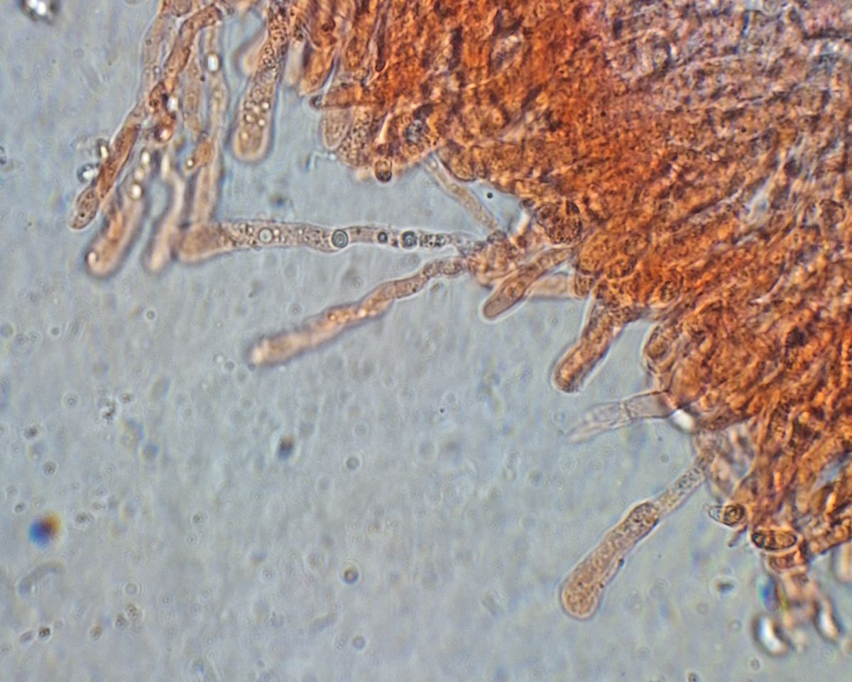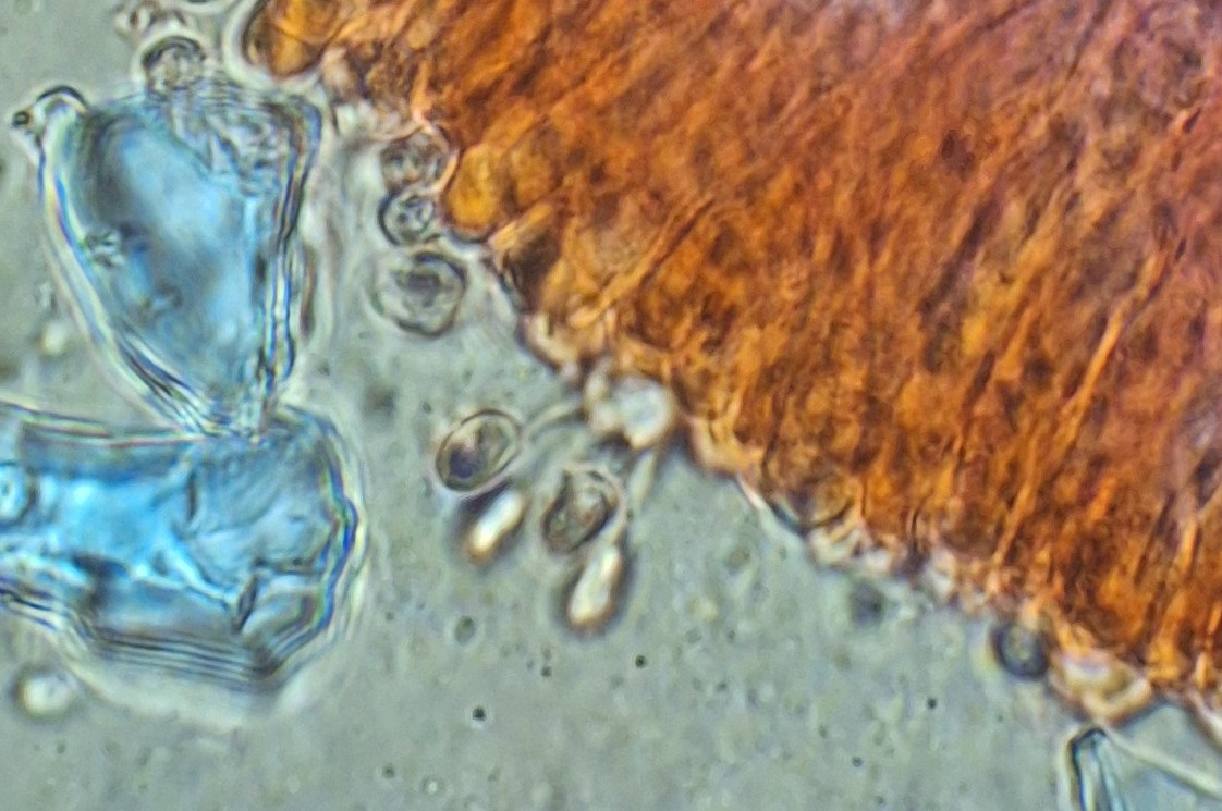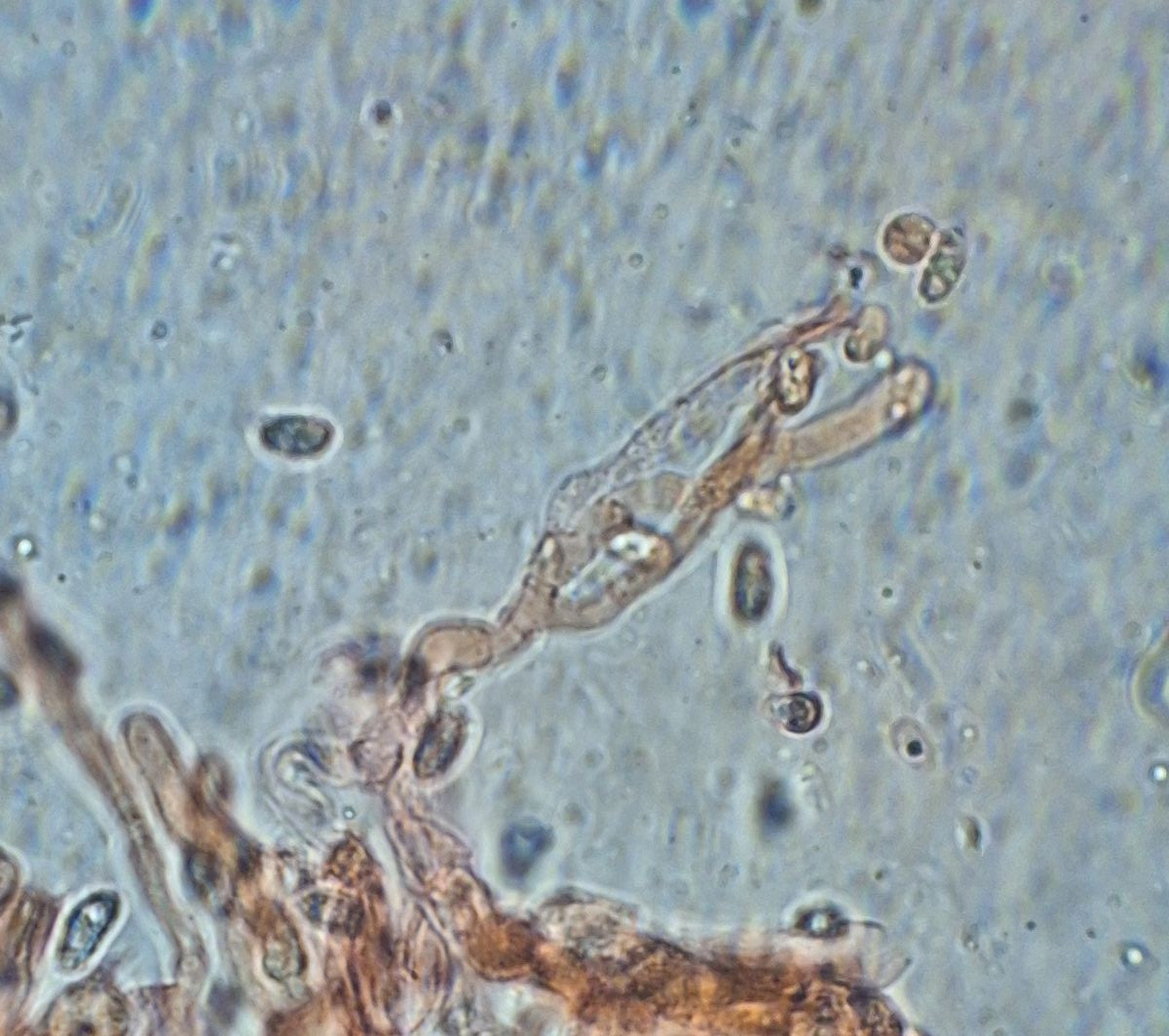 Und weil ich noch nicht zufrieden war, ob denn nun die Basidien wirklich ohne Schnalle sind, heute noch ein Versuch am getrockneten Pilz (normalerweise mikroskopiere ich nur frische).