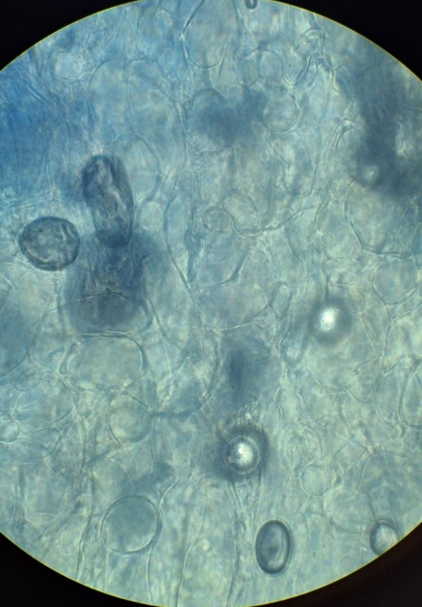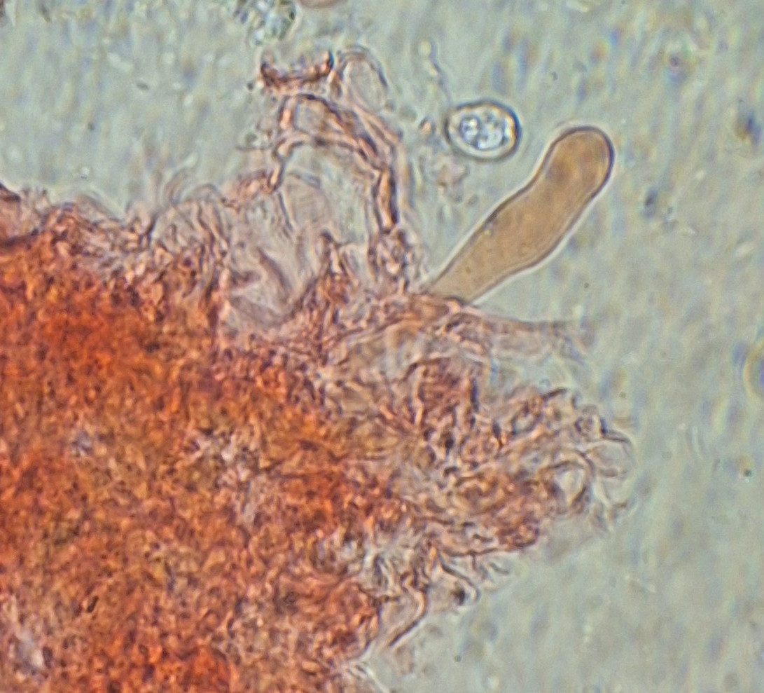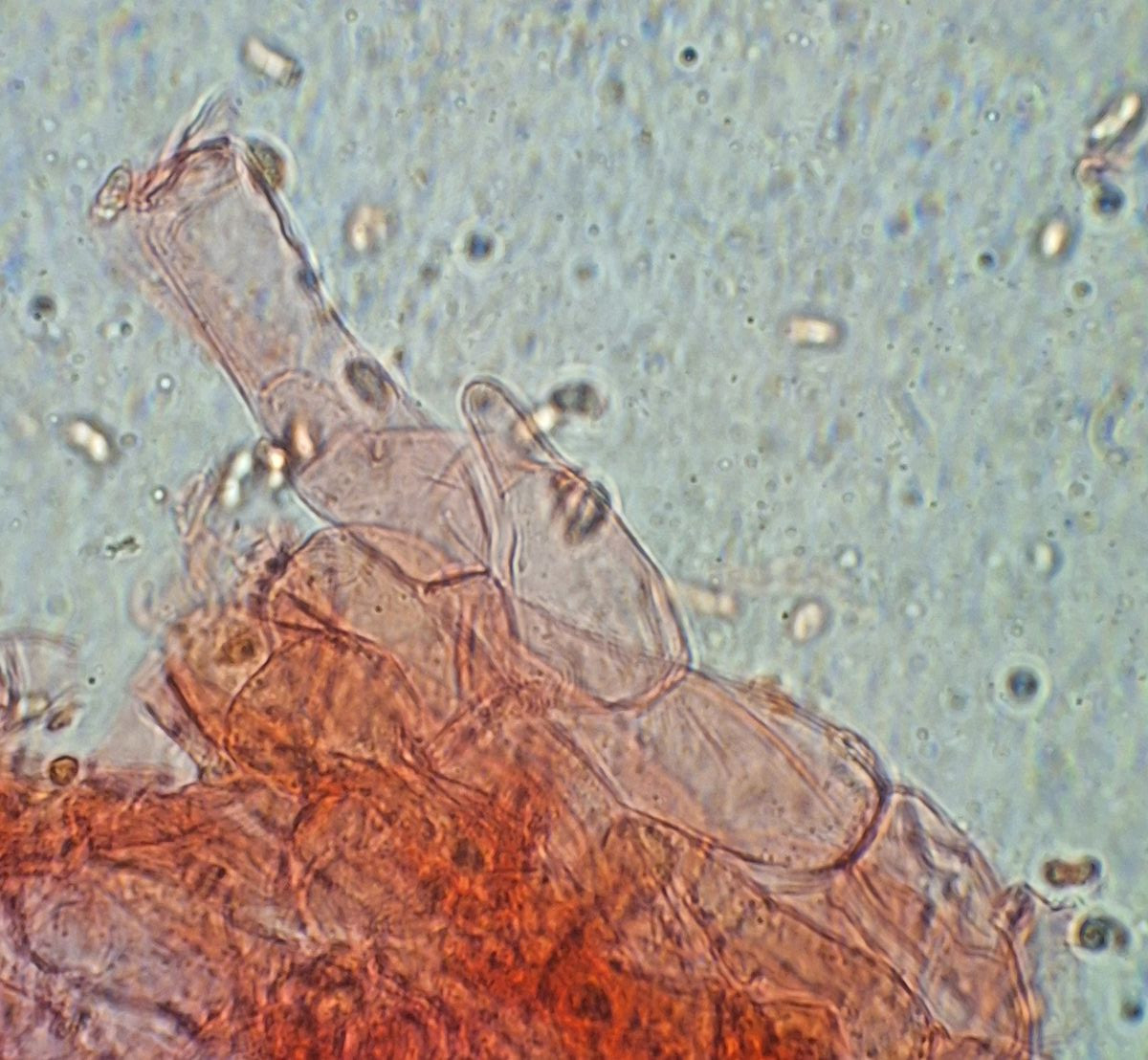 Und weil ich noch nicht zufrieden war, ob denn nun die Basidien wirklich ohne Schnalle sind, heute noch ein Versuch am getrockneten Pilz (normalerweise mikroskopiere ich nur frische).