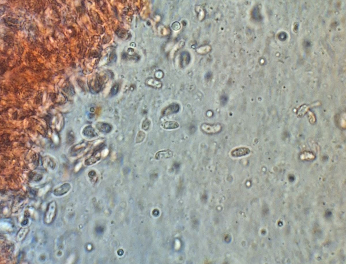 Mit den Basidien bin ich nicht weitergekommen, aber die Sporen haben mich überrascht - hielt ich erst für Fremdsporen von Entoloma - aber die sehen jetzt so aus