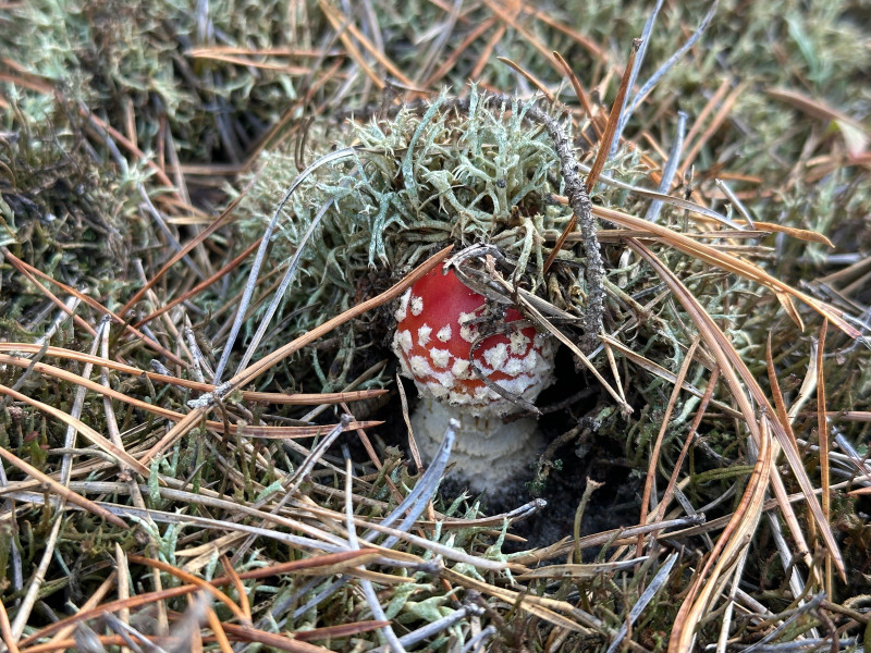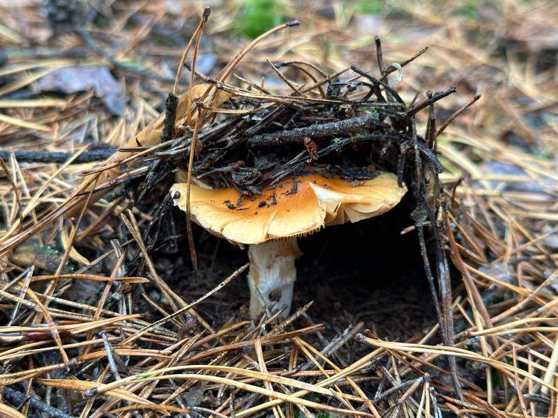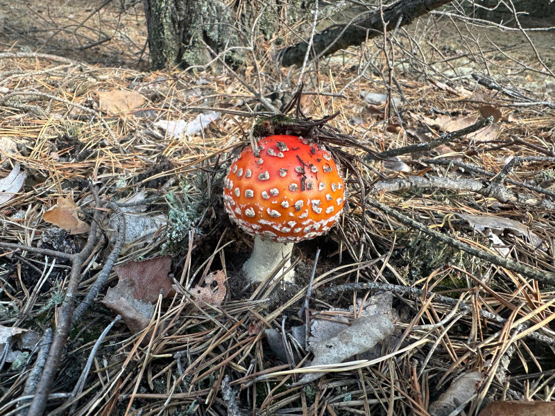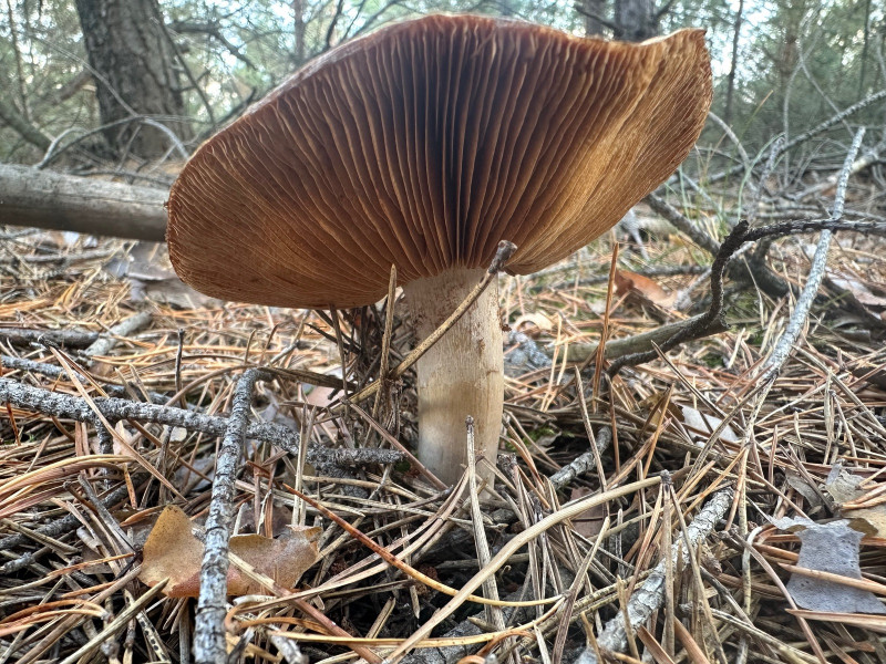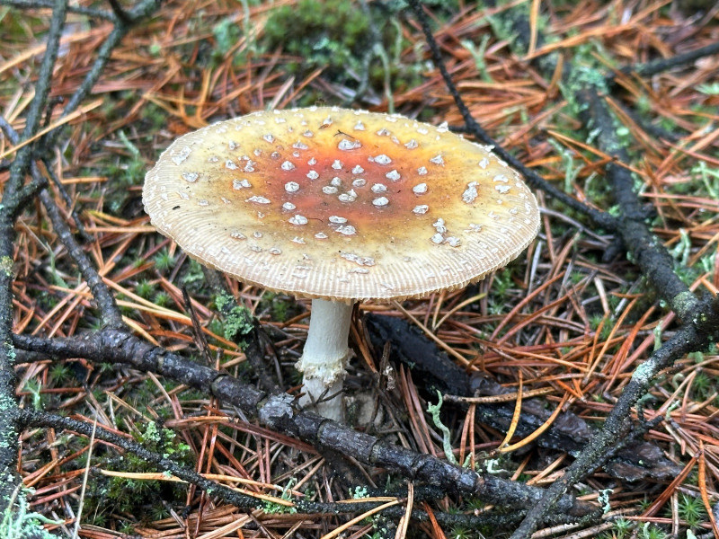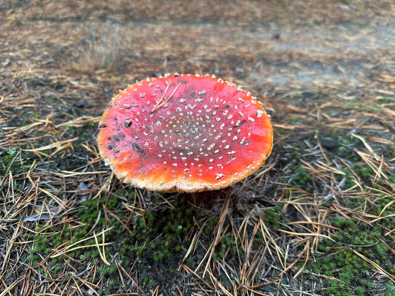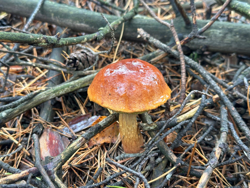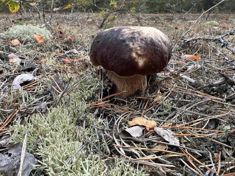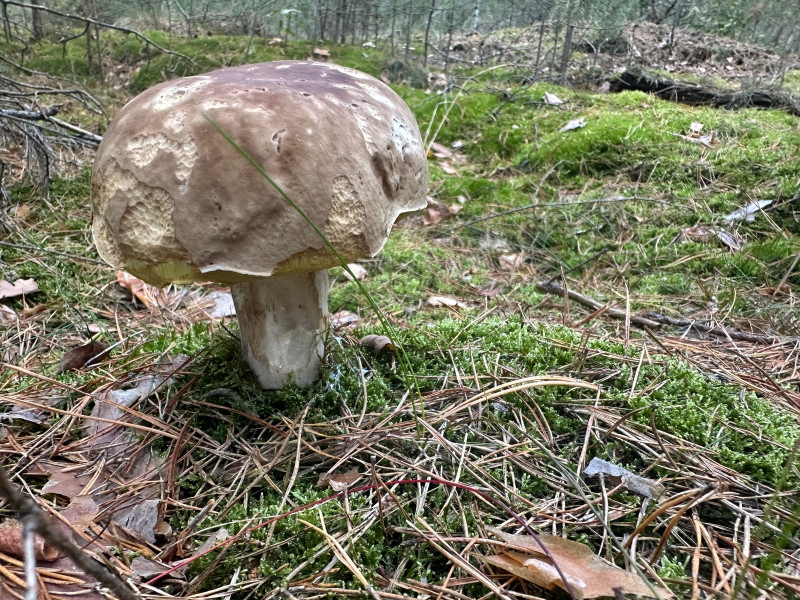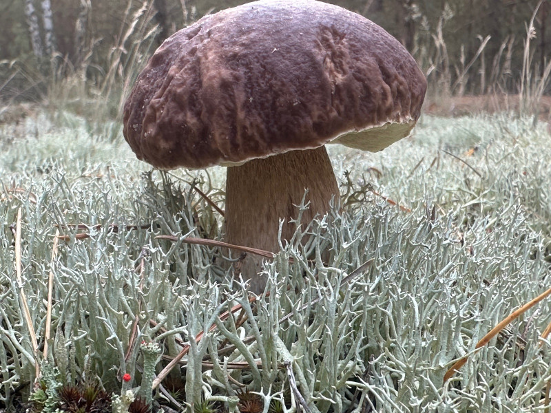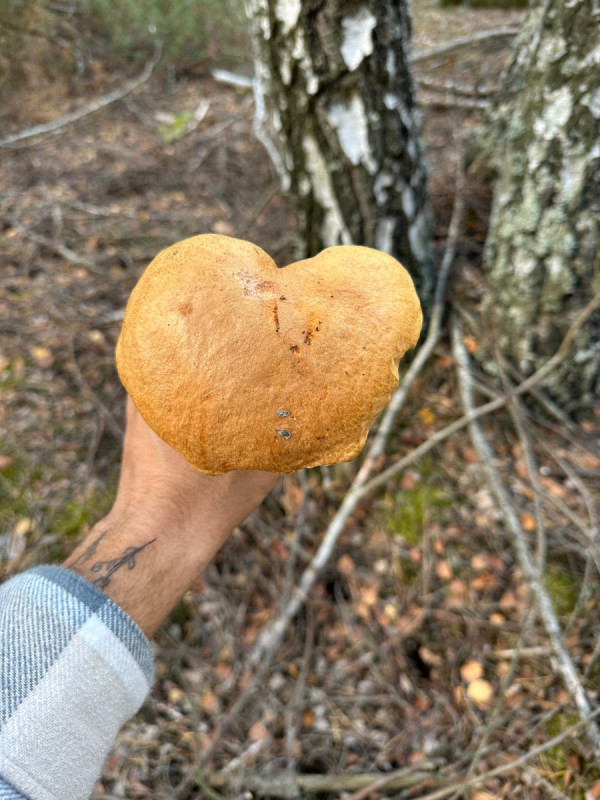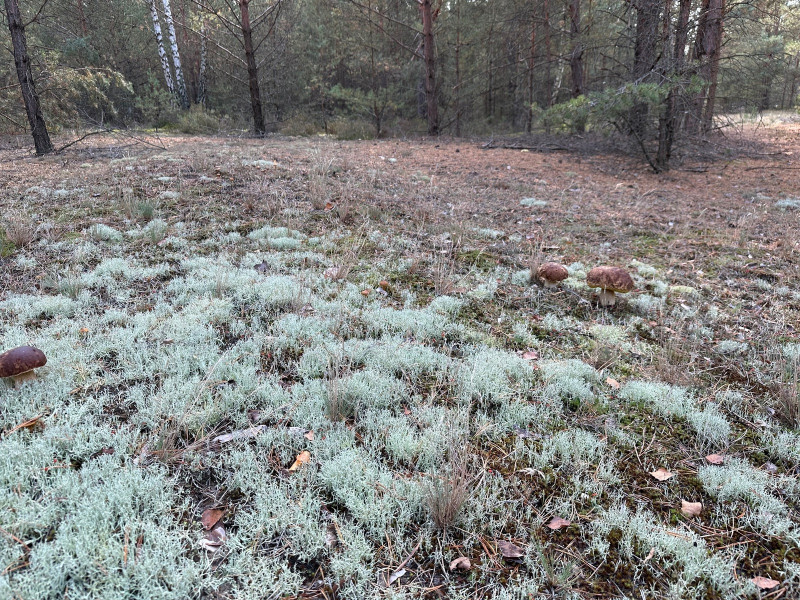 Es ist ein riesiges Gebiet von sauren bis kalkhaltigem Fichten Mischwälder wo viele Birken stehen und am Rande eine Riesige Heide mit Sandigen kalkboden im Wechsel mit normalen bis sauren Erdboden das sind auch die Stellen wo dann extrem viele Birken stehen und sehr viel Moos, dort ist alles voll mit Pfifferlingen,Kuhröhrlinge,Sandröhrlinge,Pinienröhrlinge,Heide (Birkenrotkappen) Ziegenlippen, Starkbläuenden Rotfußröhrlinge ,Perlpilze,Gelbe Knollenblätterpilze,Panterpilze,Flaschenstäublinge,Graustieltäublinge,Frauentäublinge,Apfeltäublinge, Weißviolette Dickfüße,Dachpilze, Lacktrichterlinge und Unmengen an Steinpilzen die da überall zu finden sind. Fliegenpilze,Mehlräslinge auch was einen ja nicht wundert😅 in diesem Falle (allerdings nicht einen Pfefferröhling bisher gesehen🥲)
