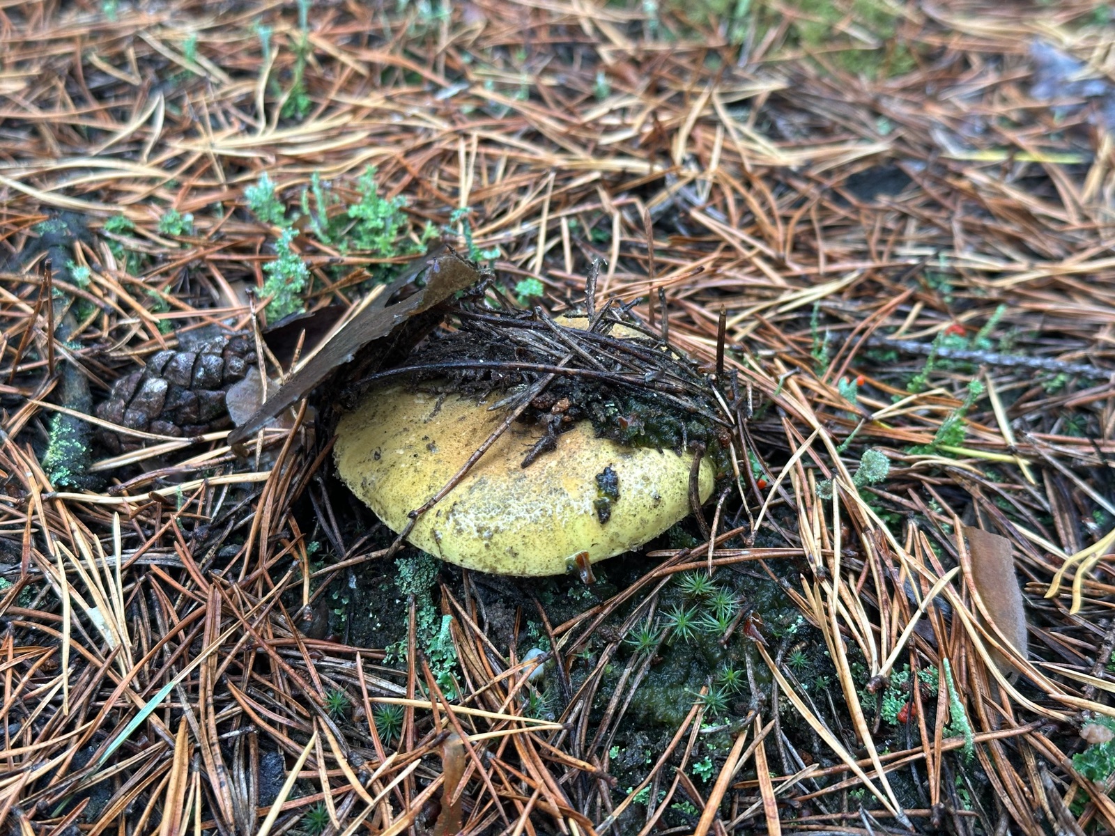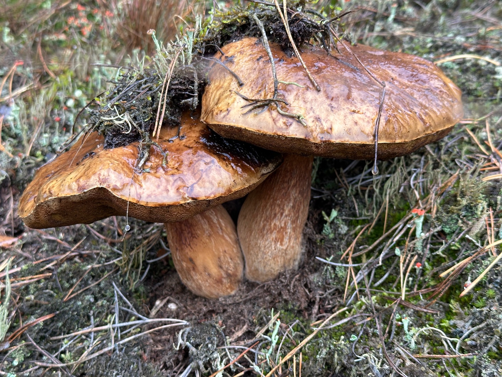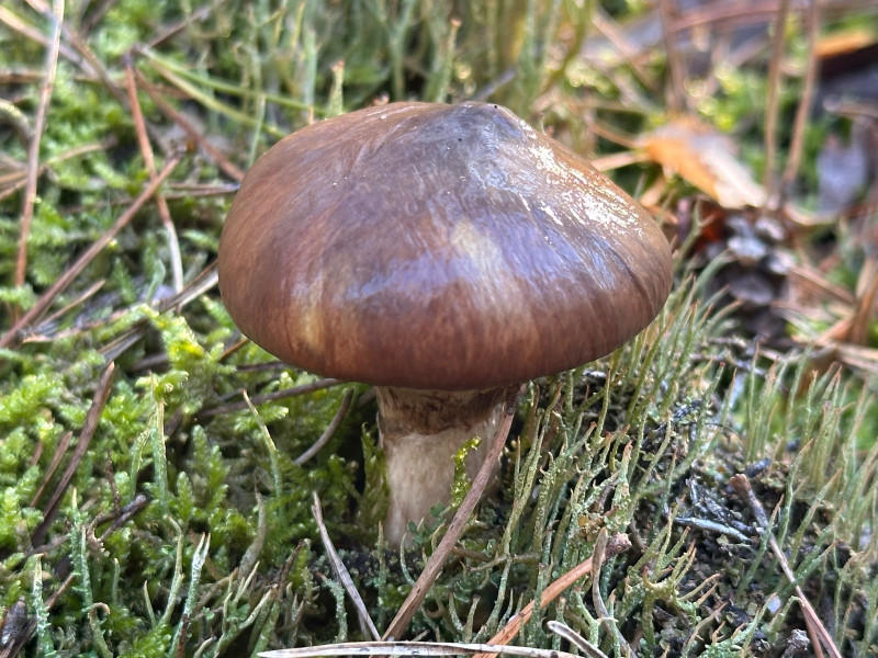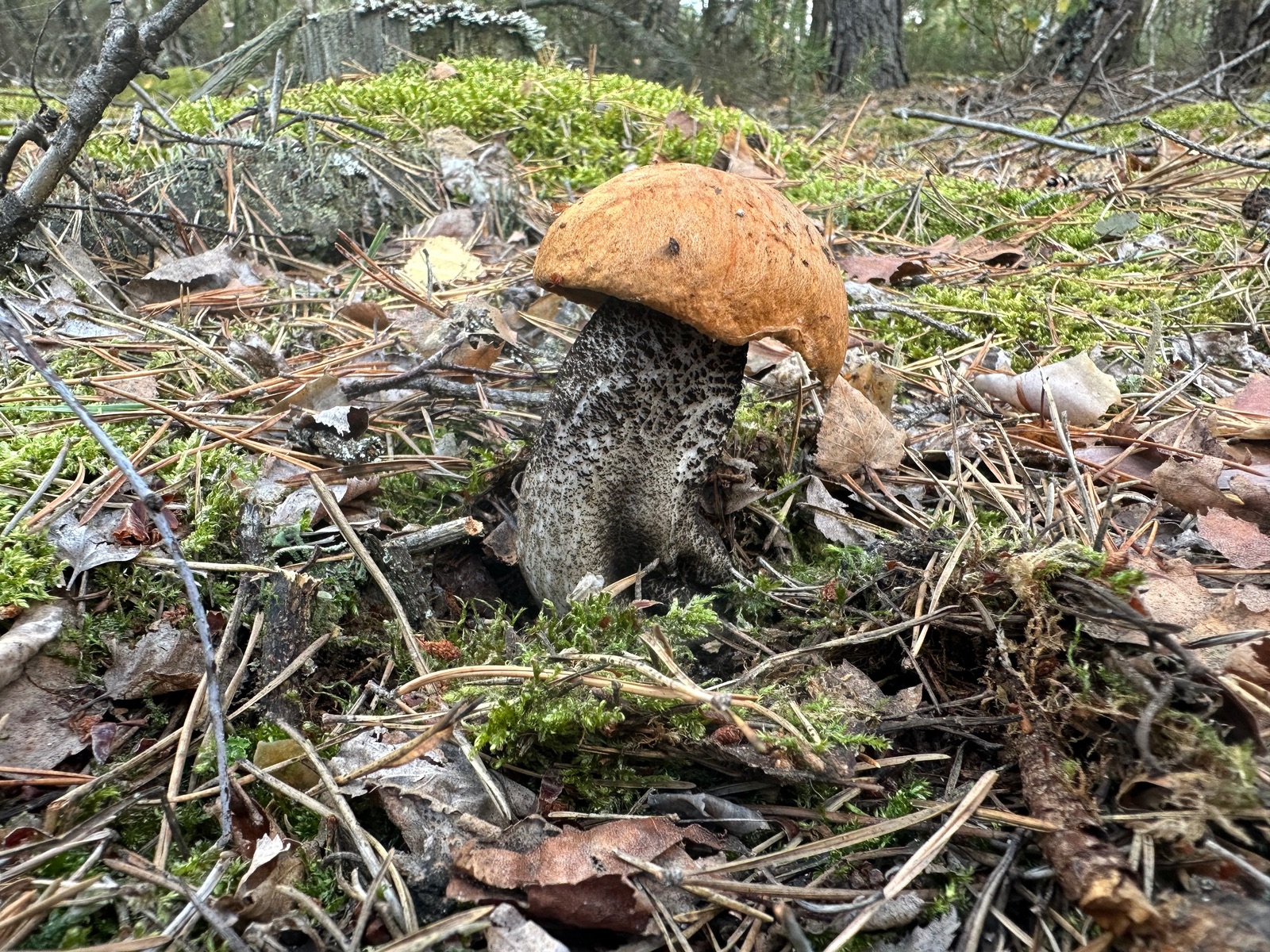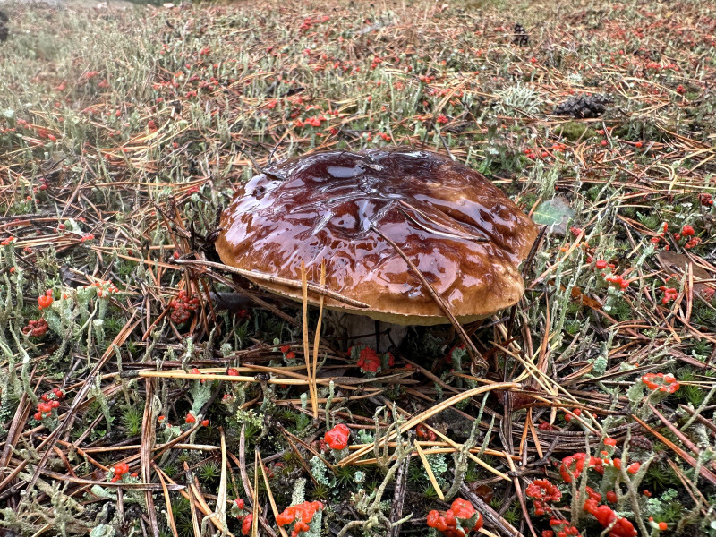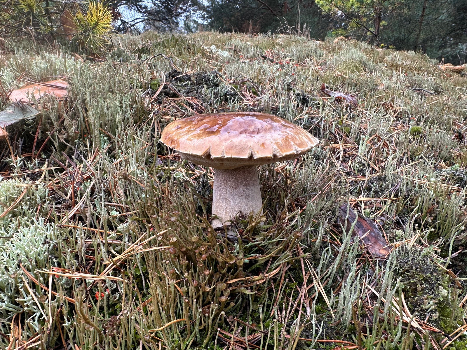 Speziell an der Stelle wo die Kornblumenröhrlinge Stehen . Ist es weniger Moos bedenkt sind eher mehr Flechten , sandiger Kalkboden vereinzelnd Fichten und Birken Pilze die direkt nebenbei standen waren