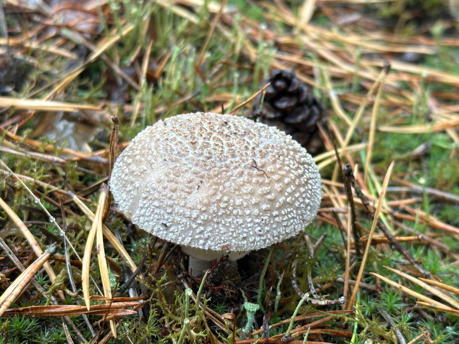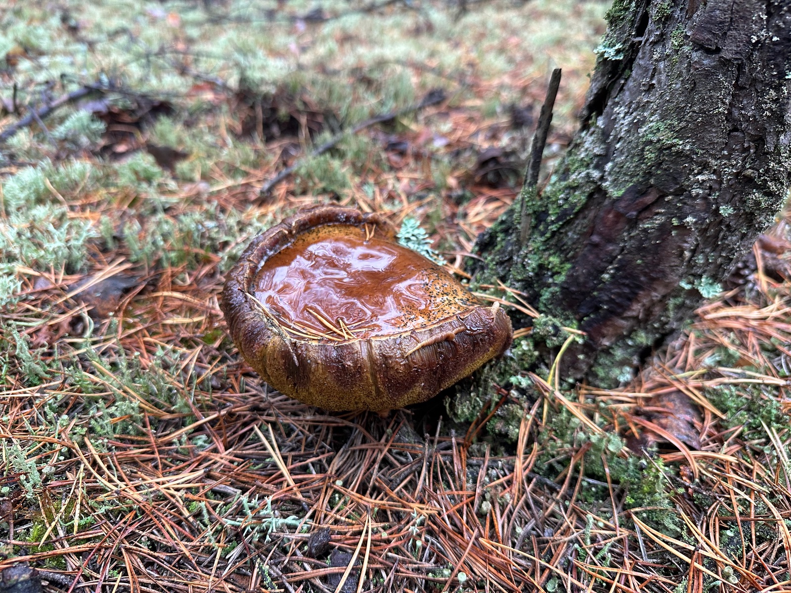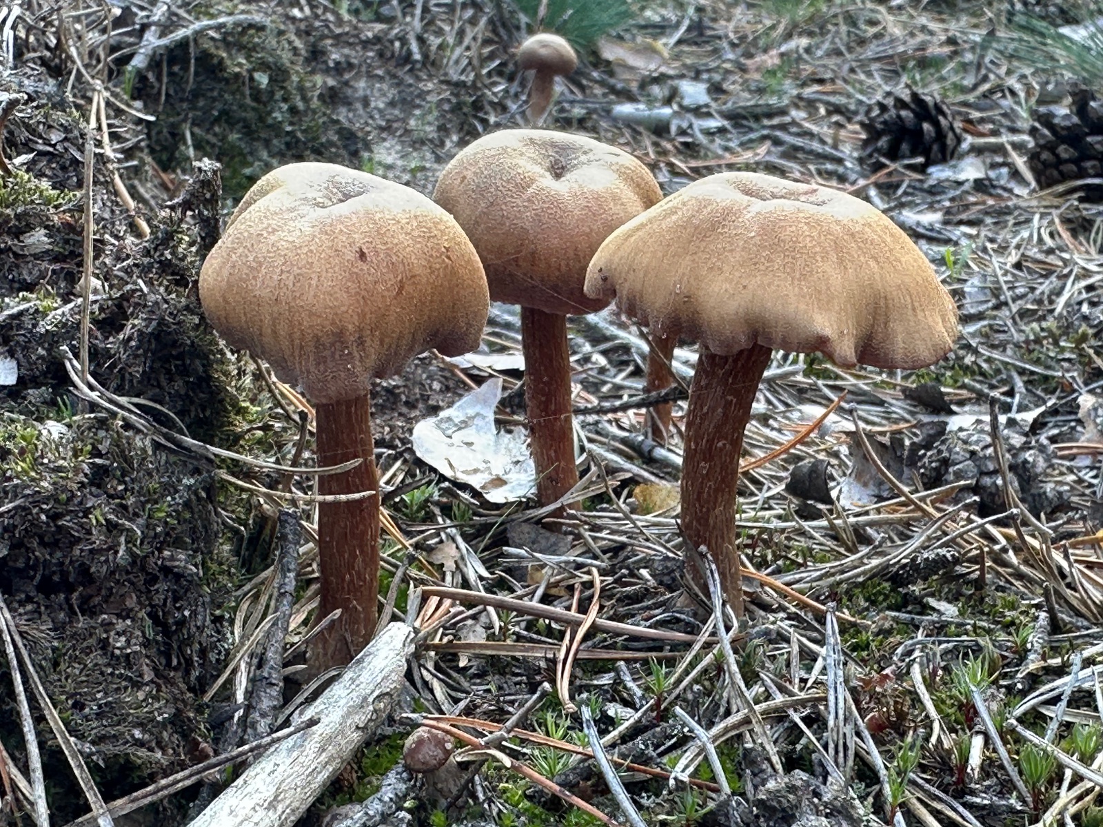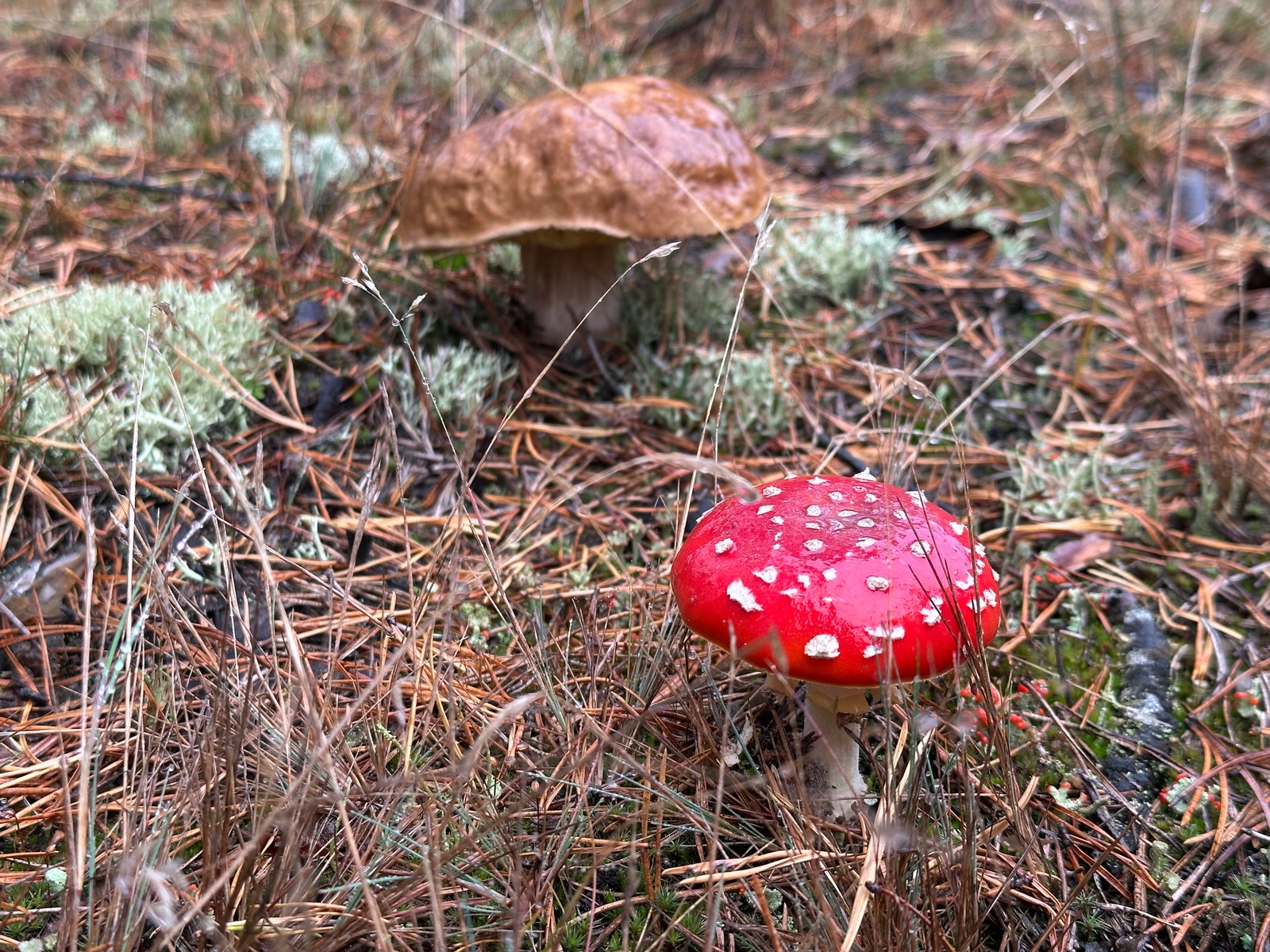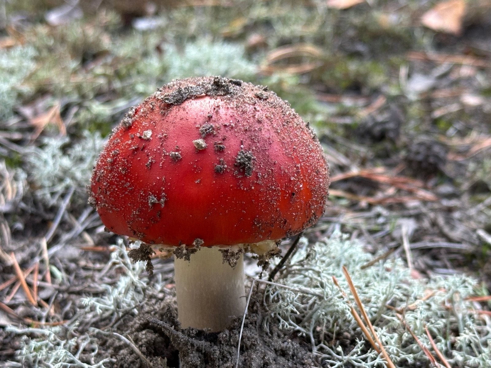 Speziell an der Stelle wo die Kornblumenröhrlinge Stehen . Ist es weniger Moos bedenkt sind eher mehr Flechten , sandiger Kalkboden vereinzelnd Fichten und Birken Pilze die direkt nebenbei standen waren