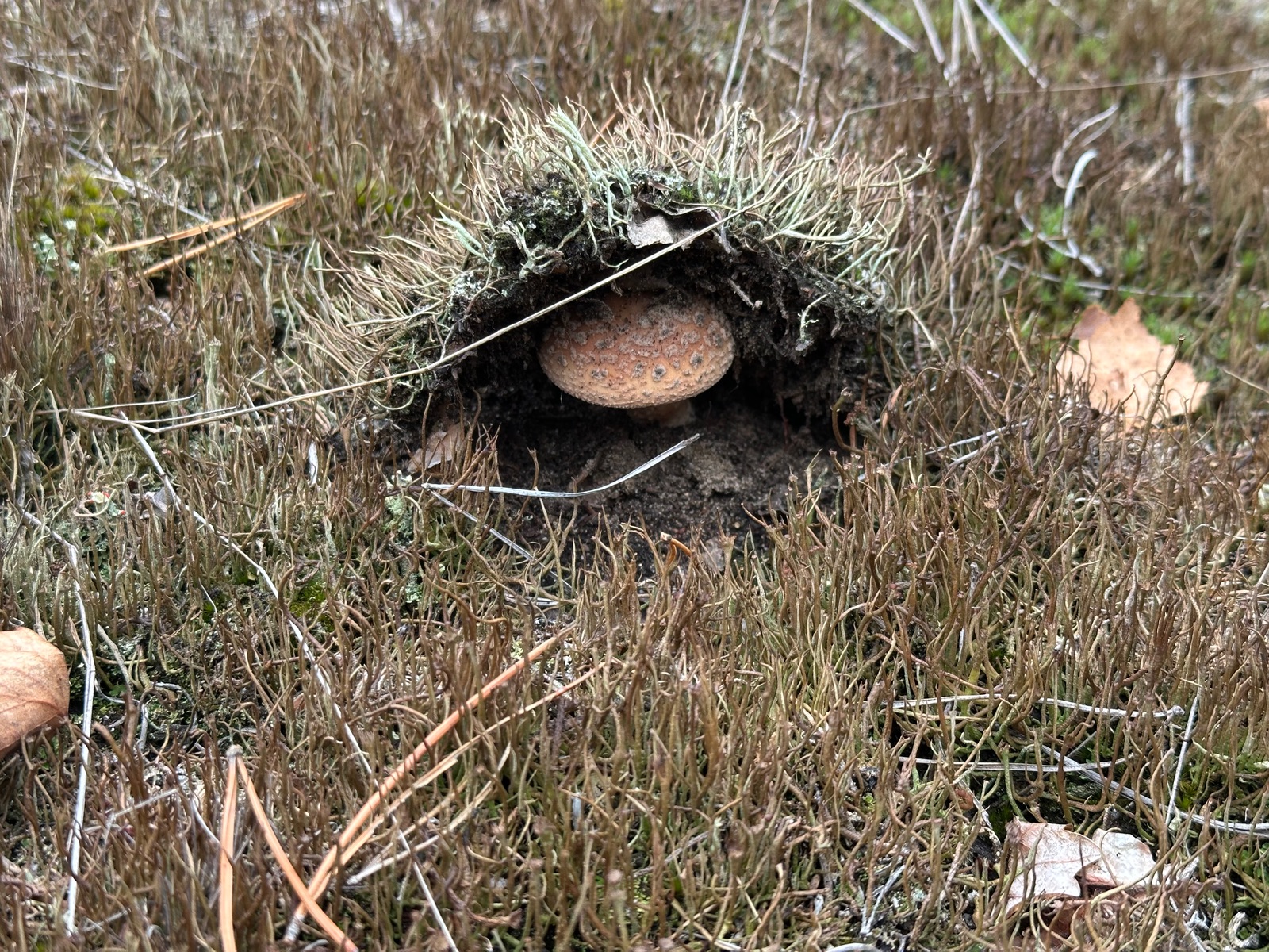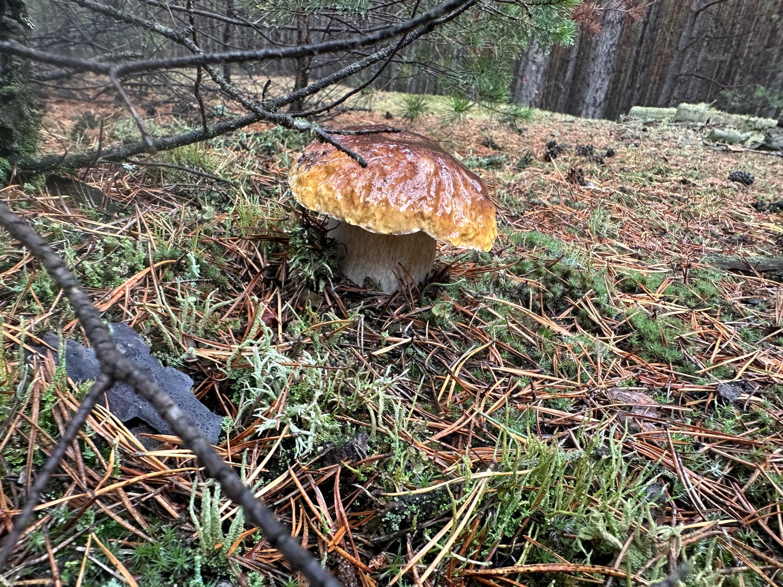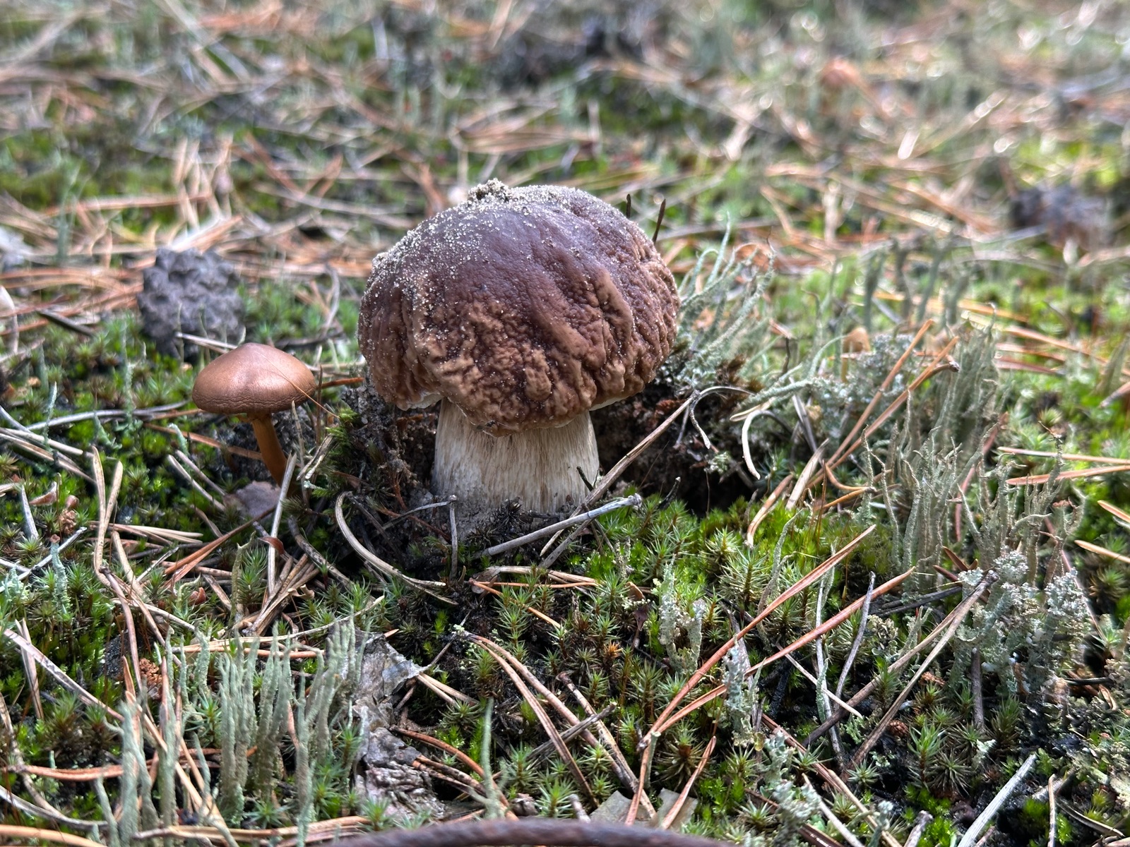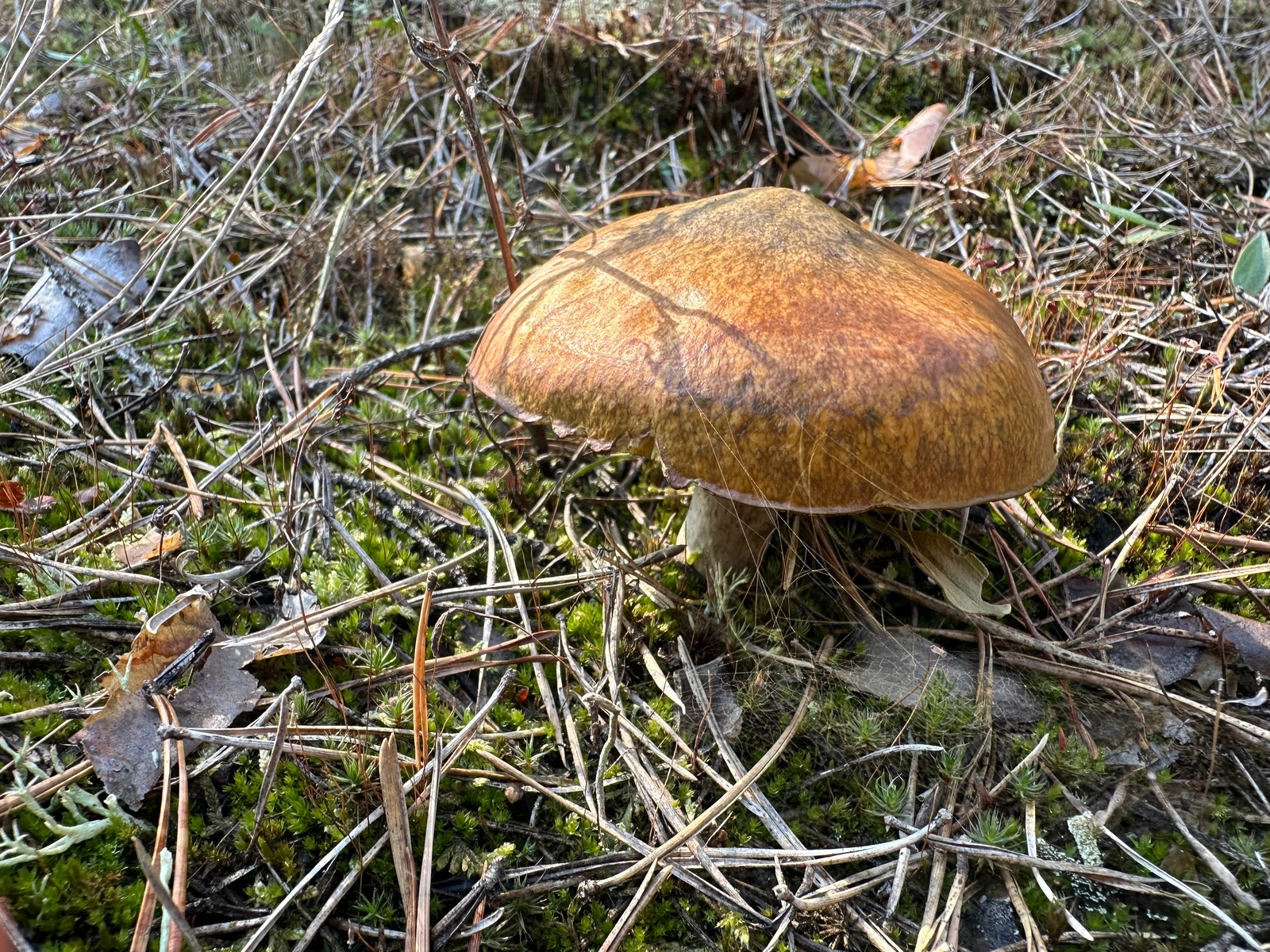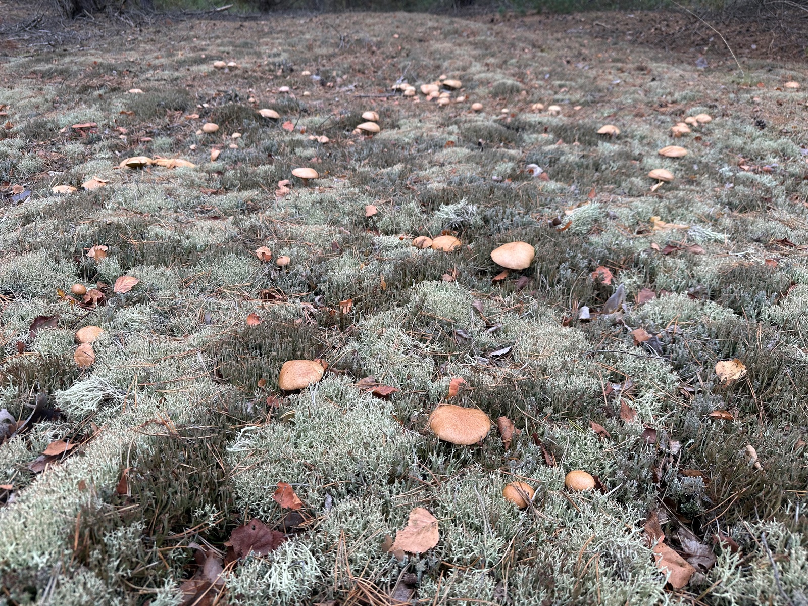 Speziell an der Stelle wo die Kornblumenröhrlinge Stehen . Ist es weniger Moos bedenkt sind eher mehr Flechten , sandiger Kalkboden vereinzelnd Fichten und Birken Pilze die direkt nebenbei standen waren