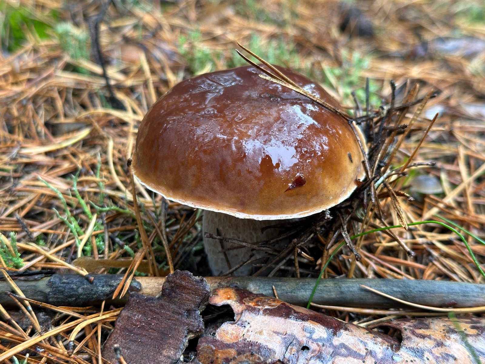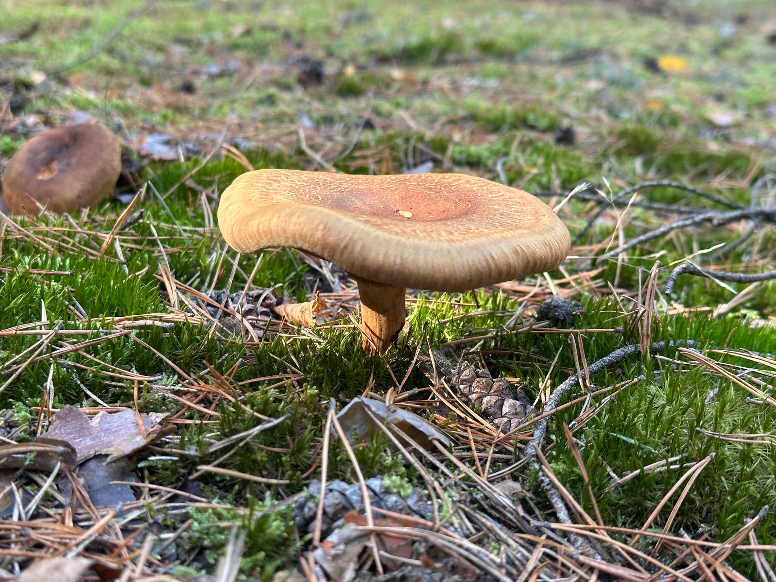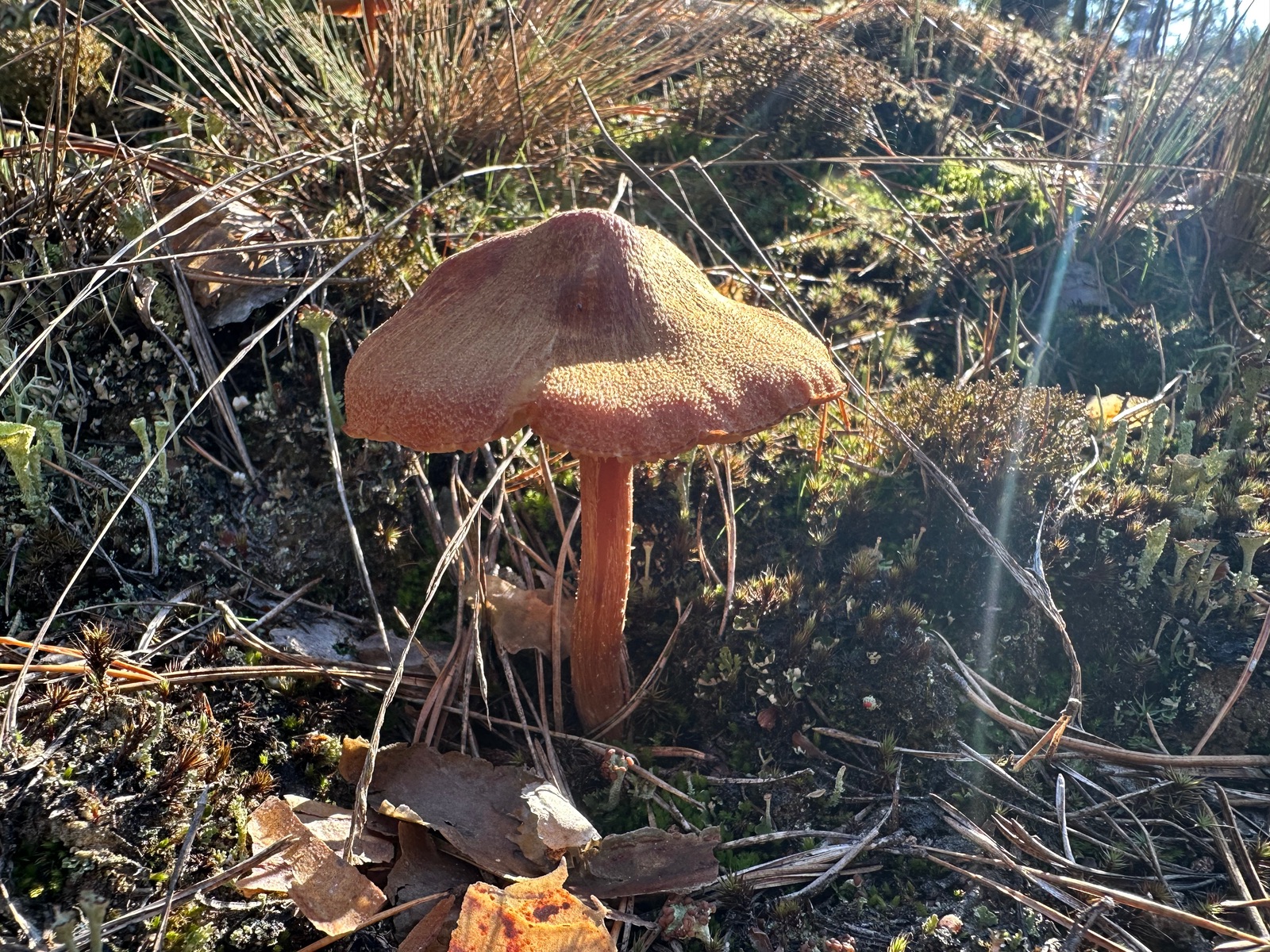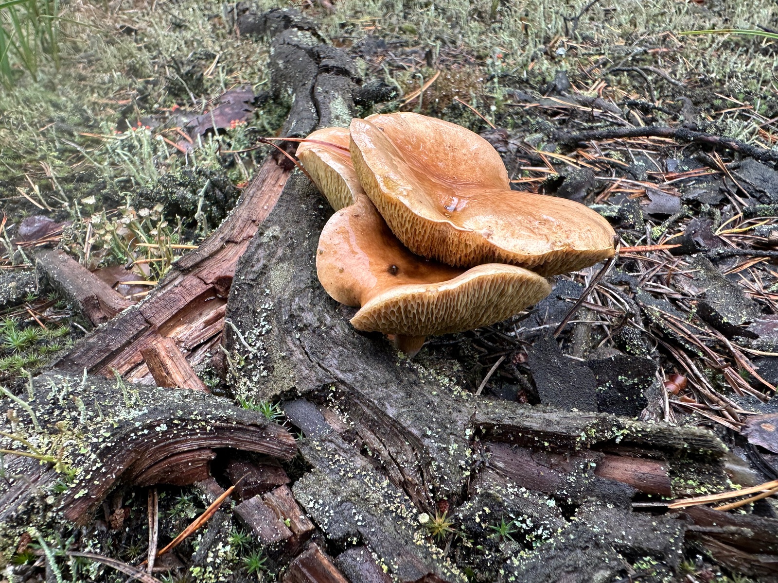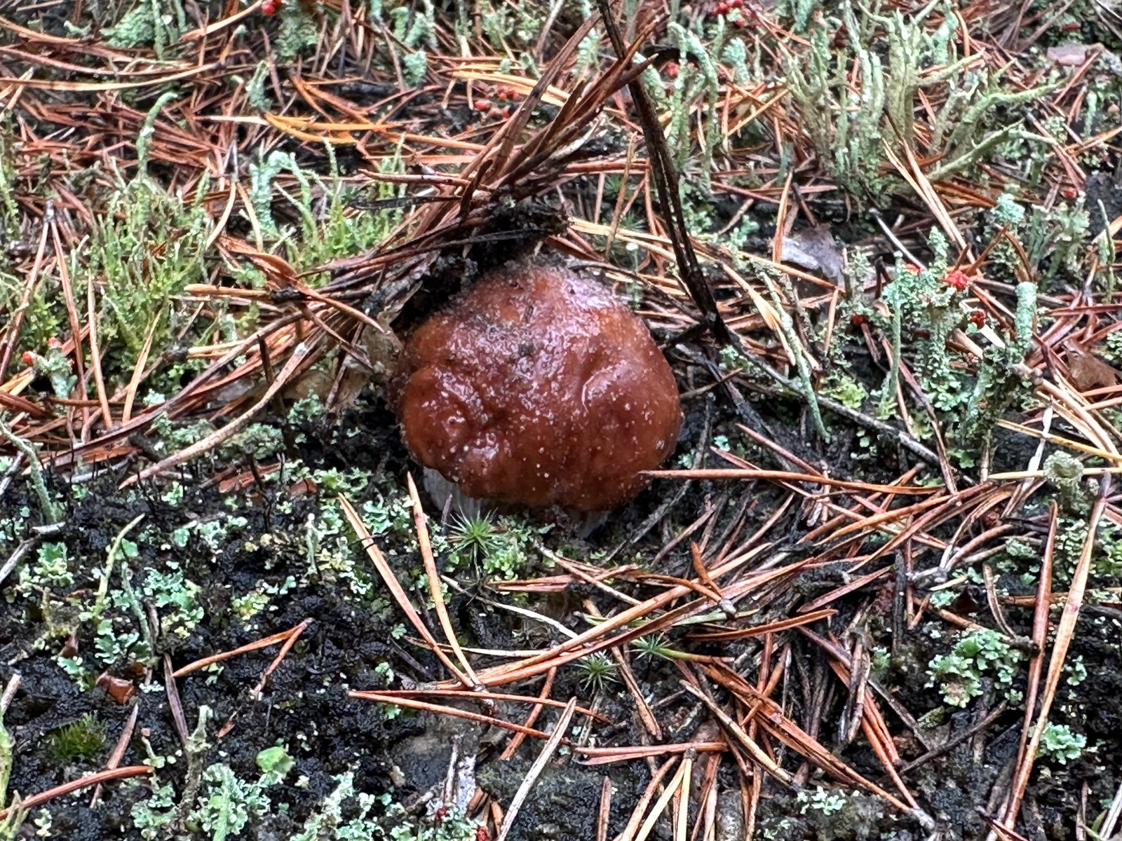 Speziell an der Stelle wo die Kornblumenröhrlinge Stehen . Ist es weniger Moos bedenkt sind eher mehr Flechten , sandiger Kalkboden vereinzelnd Fichten und Birken Pilze die direkt nebenbei standen waren