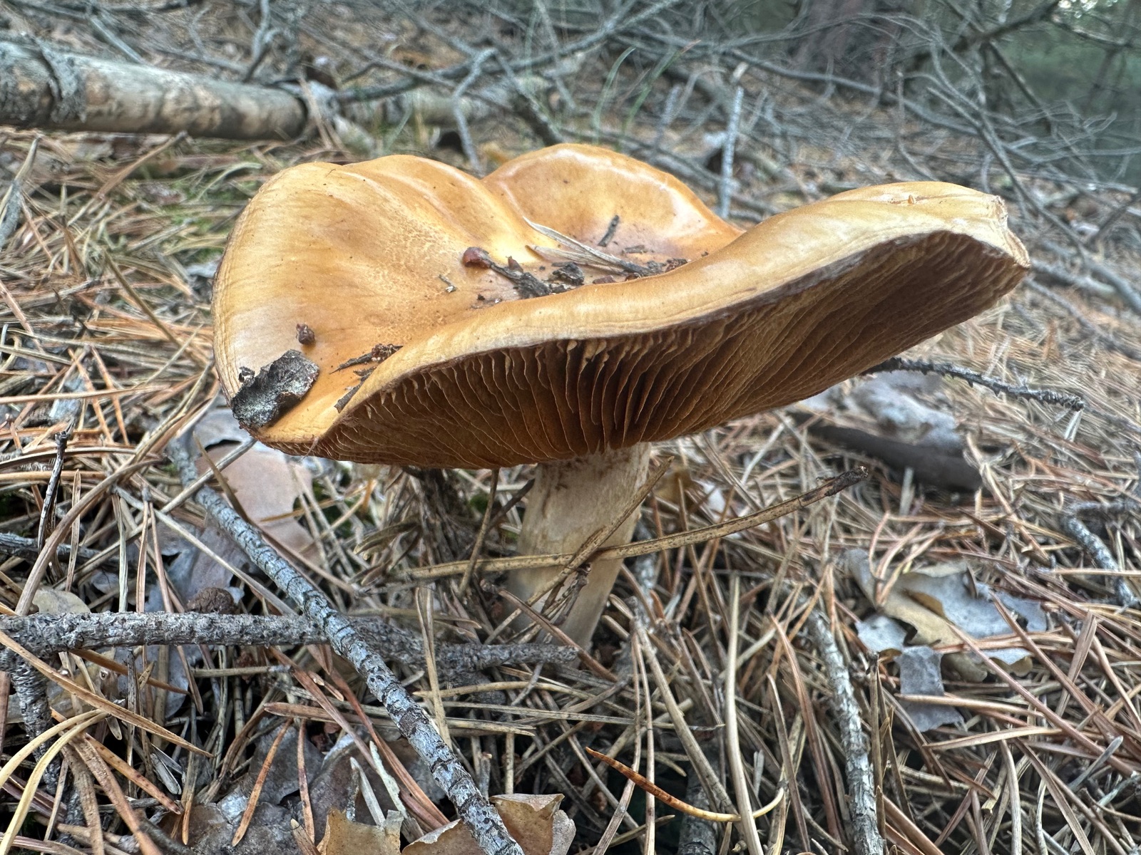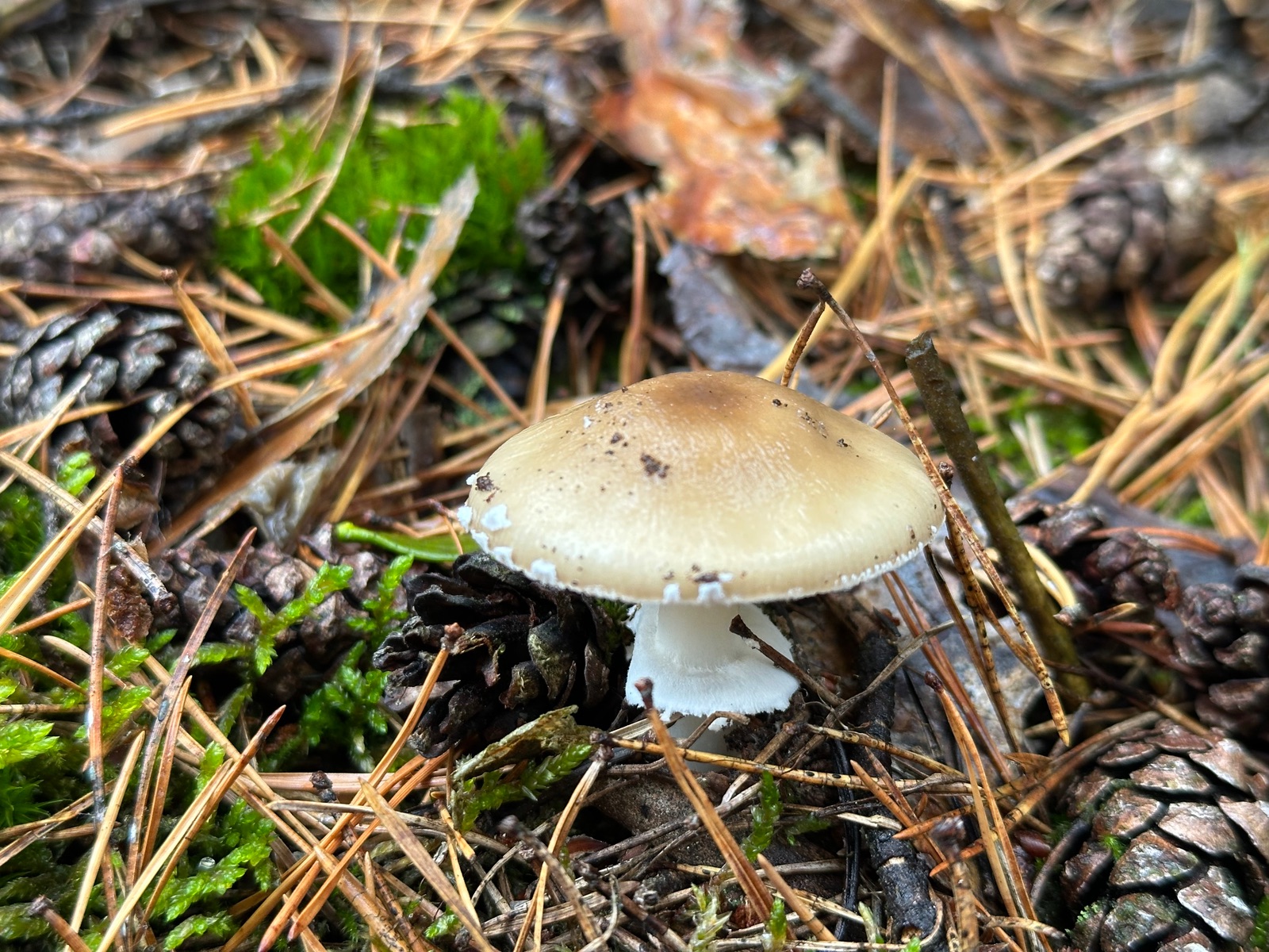 Es ist ein riesiges Gebiet von sauren bis kalkhaltigem Fichten Mischwälder wo viele Birken stehen und am Rande eine Riesige Heide mit Sandigen kalkboden im Wechsel mit normalen bis sauren Erdboden das sind auch die Stellen wo dann extrem viele Birken stehen und sehr viel Moos, dort ist alles voll mit Pfifferlingen,Kuhröhrlinge,Sandröhrlinge,Pinienröhrlinge,Heide (Birkenrotkappen) Ziegenlippen, Starkbläuenden Rotfußröhrlinge ,Perlpilze,Gelbe Knollenblätterpilze,Panterpilze,Flaschenstäublinge,Graustieltäublinge,Frauentäublinge,Apfeltäublinge, Weißviolette Dickfüße,Dachpilze, Lacktrichterlinge und Unmengen an Steinpilzen die da überall zu finden sind. Fliegenpilze,Mehlräslinge auch was einen ja nicht wundert😅 in diesem Falle (allerdings nicht einen Pfefferröhling bisher gesehen🥲)