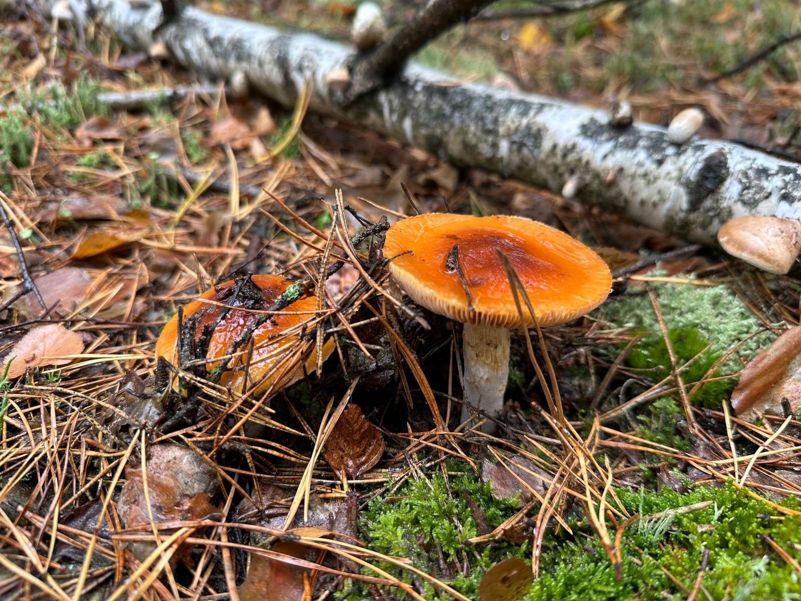Orange-Rot farbende Graustieltäublinge,Steinpilze,Frauentäublinge,Rosarote Lacktrichterlinge, gelbe Knollenblätterpilze, Perlpilze Reizker (vereinzelnd) und jede Menge Butterpilze und Kuhröhrlinge.