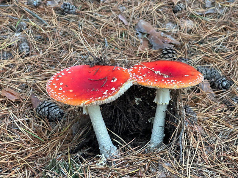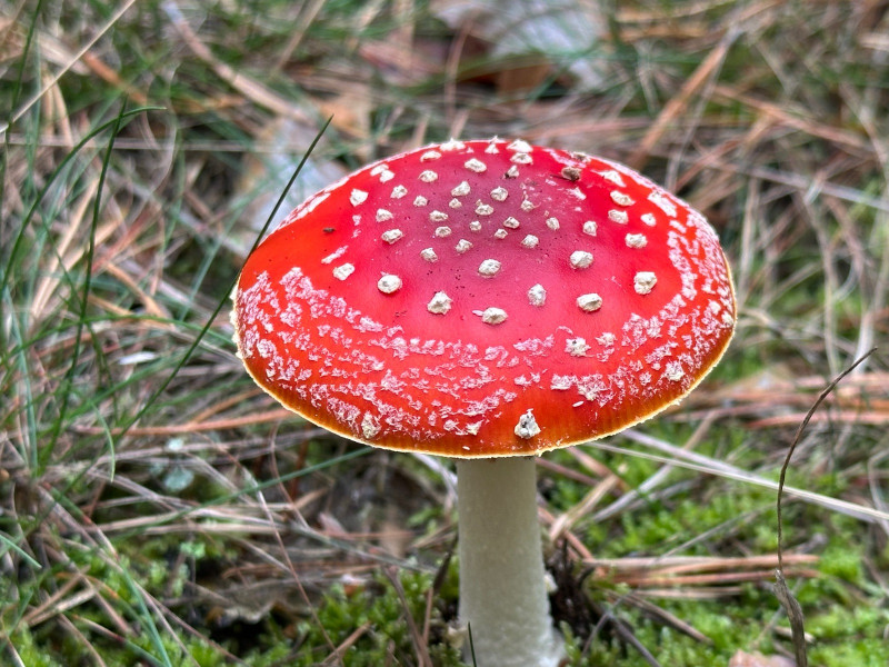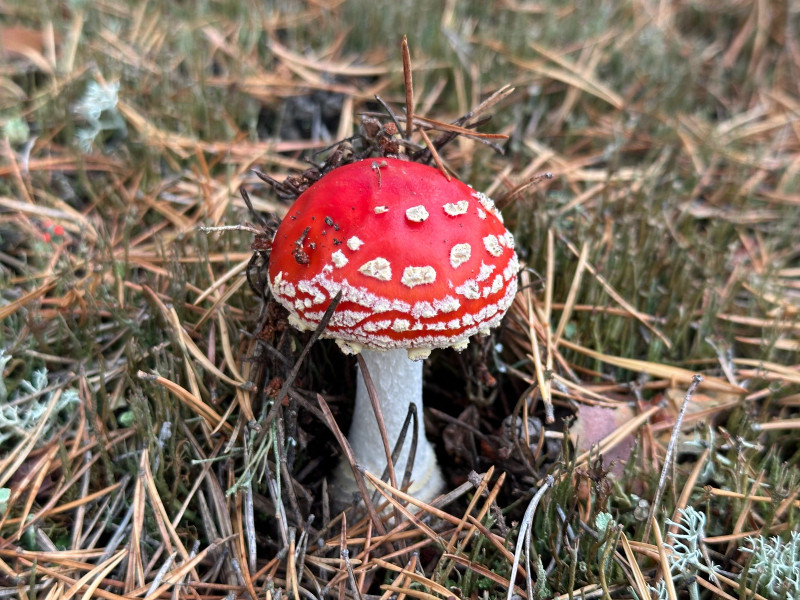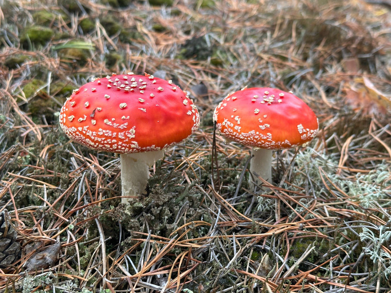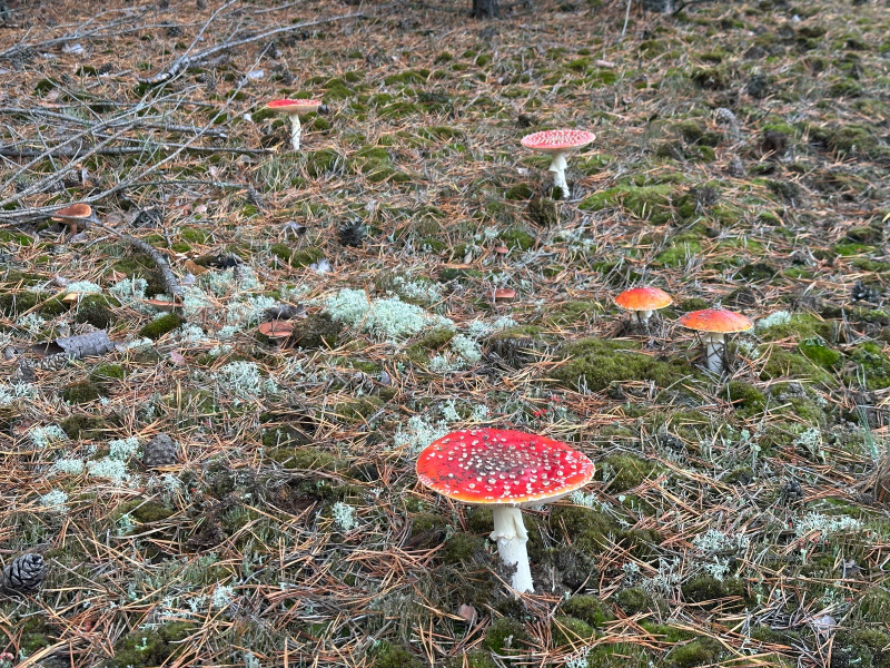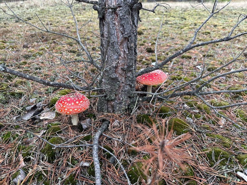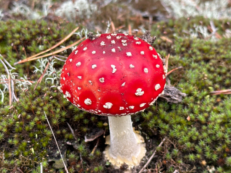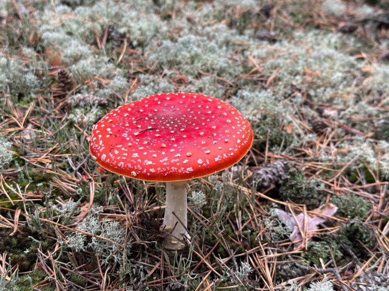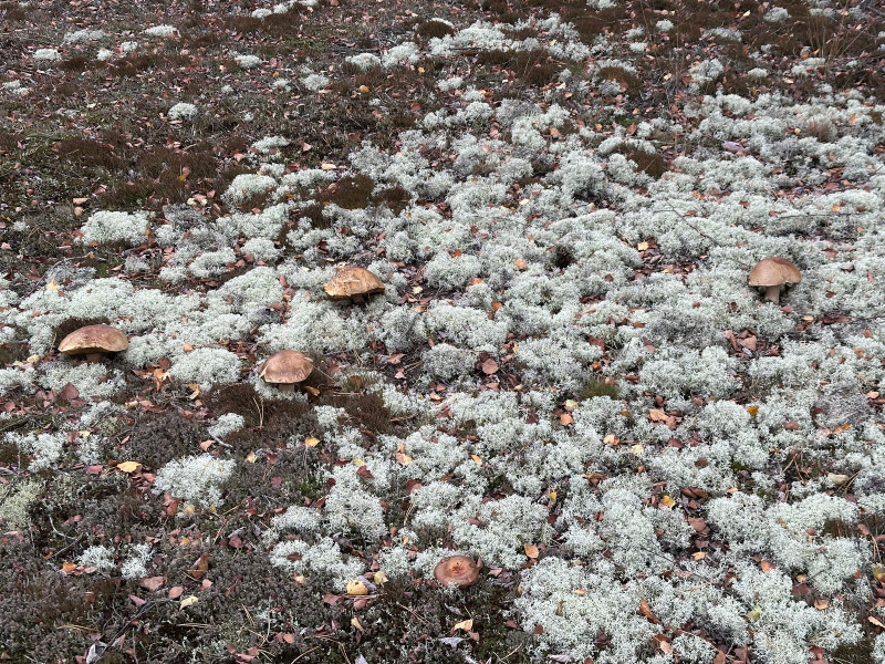 Flechten als wechselfeuchte Pilzwesen sind Jahrzehnte alt, während die Fliegenpilze lediglich ein paar Tage darin "blühen".